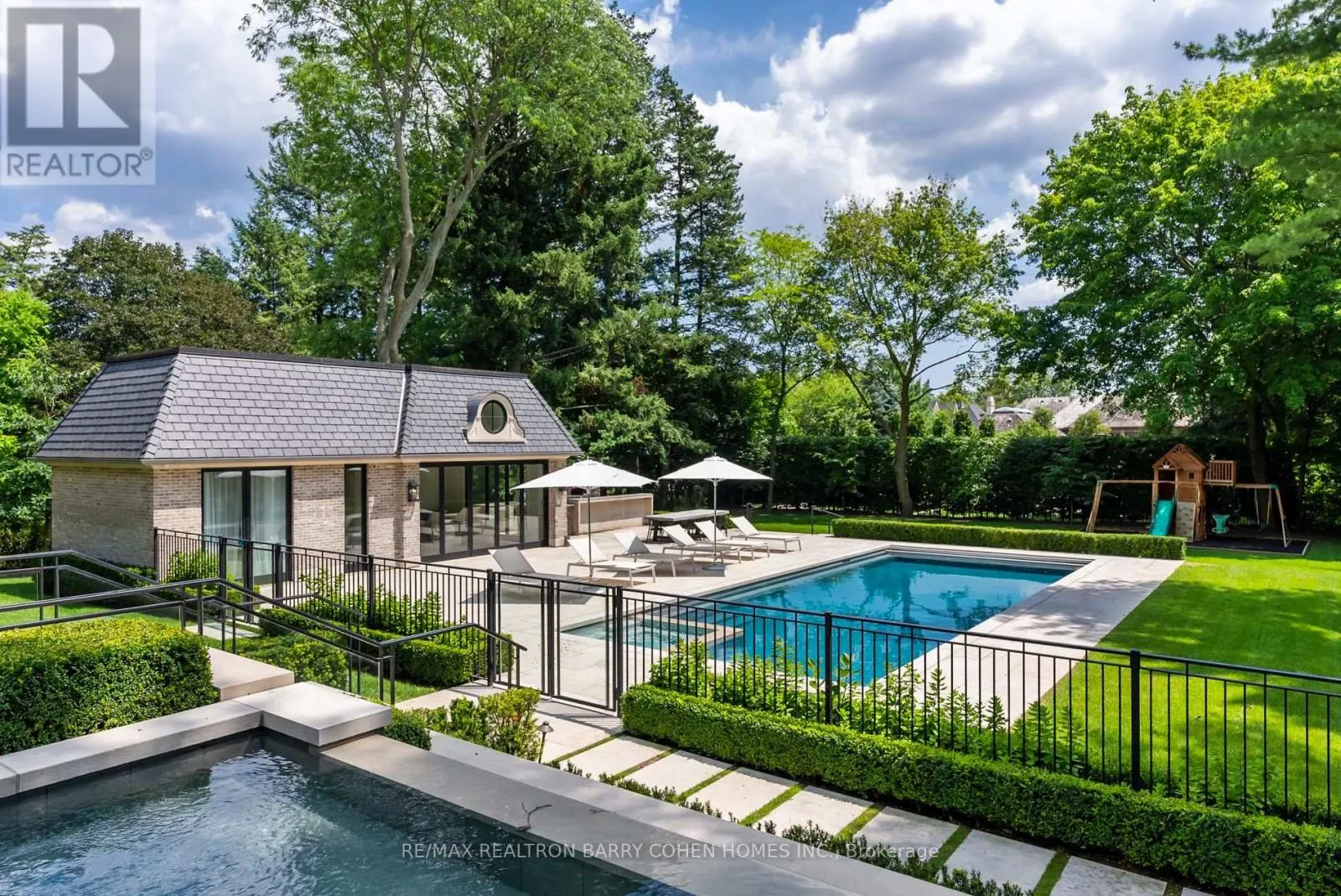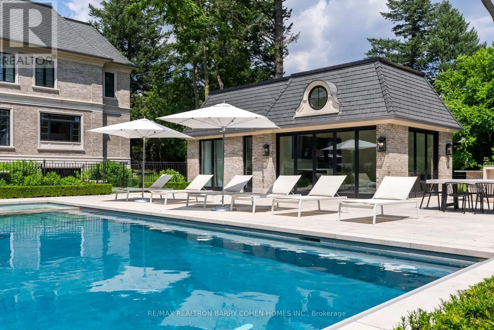 Cross Streets: Post Rd & Bayview. ** Directions: East of Bayview Ave. Grand Palatial Custom Residence On A Sun-Rich South-Facing Gated Cul-De-Sac Lot In The Prestigious Bridle Path. This Extraordinary Estate Built By Renowned SKR Homes Represents The Pinnacle Of Luxury Living With Over 15,500 Sq Ft Of Exquisite Living Space Featuring An Upper Level Theatre, Resort Style Rear Gardens With Pool, Cabana, And Unique Guest House. Soaring Cathedral Skylights Illuminate The Interior With Rich Herringbone Hardwood And Italian Statuario Marble Floors. The Gourmet Chef's Kitchen Flows Seamlessly To The Family Room And A Covered Outdoor Living Pavilion, Blending Indoor And Outdoor Elegance. The Palatial Primary Suite Is A Private Sanctuary With Sitting Room, Double-Sided Fireplace, And Terrace Overlooking Meticulously Landscaped Grounds. Spa-Inspired Ensuite Features A Cast Iron Soaking Tub And Oversized Steam Shower. Upper Levels Include A Media Room And Versatile Third-Floor Loft. The Walk-Out Lower Level Rivals A Private Members' Club With Temperature-Controlled Wine Cellar, Games Room, Cigar Lounge, Fitness Center, Massage Room, Sauna, Salon, And Private Nanny Quarters. Outdoors, Enjoy A Spectacular Concrete Pool And Spa, Expansive Entertaining Areas, And A Fully Equipped Outdoor Kitchen With Built-In Gas Bbq And Wood-Burning Pizza Oven. A Detached Guest House Completes The Estate With Wall-To-Wall Bi-Folding Doors, Heated Floors, Vaulted Ceilings, Full Kitchen, Bathroom, And Living Space, Ideal For Guests Or Extended Family. Truly One-Of-A-Kind In One Of Toronto's Most Coveted Neighborhoods, Designed To Surpass The Expectations Of The Most Discerning Clientele. (id:27476)