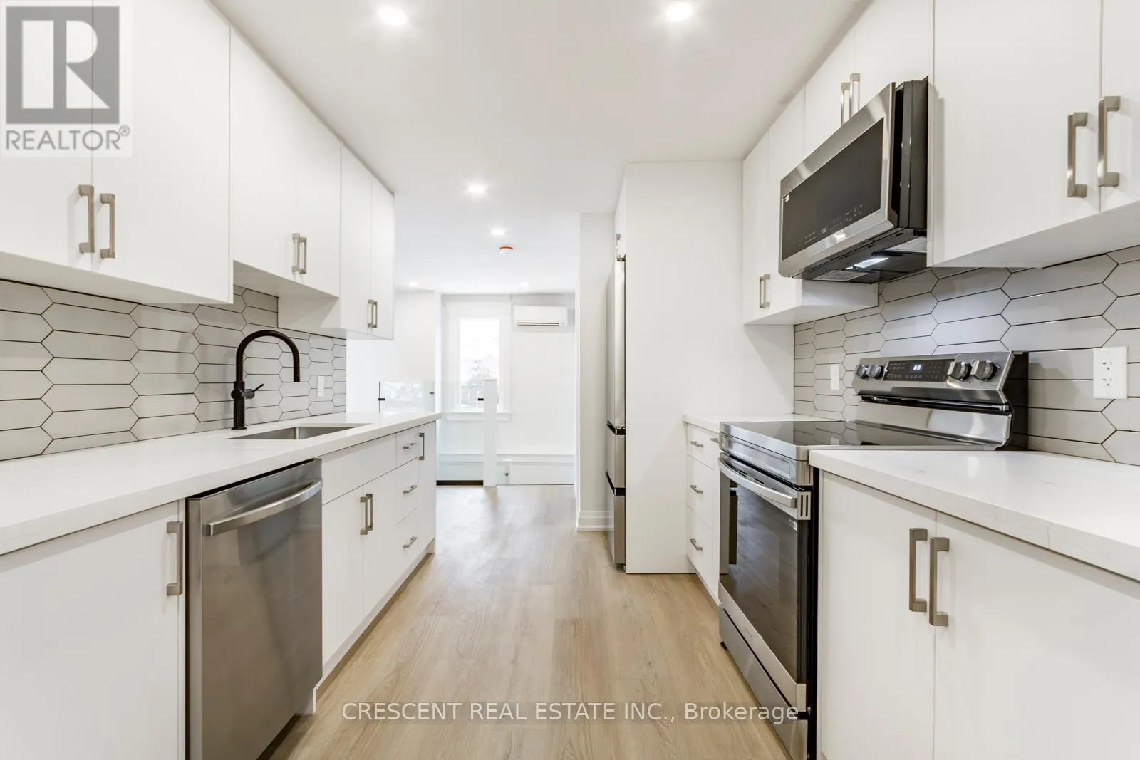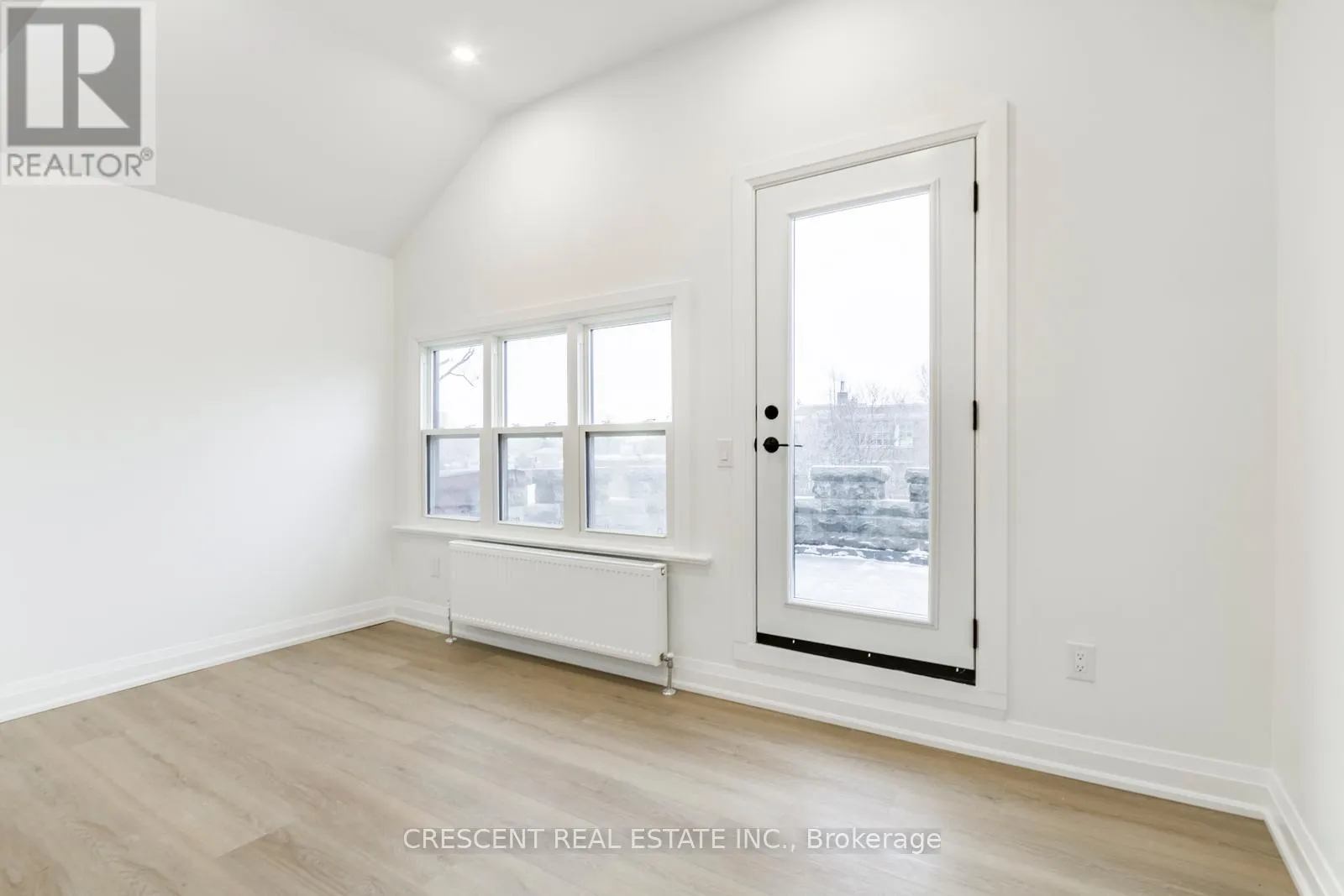 Cross Streets: S of 401; W of Jane St. ** Directions: From Hwy 401 take Black Creek Exit, turn right travelling S on Jane St, turn right onto Queens Dr, property on right (parking on Pine St). Welcome to this beautiful top floor 4 bedroom, 2 bathroom unit, ideally located just West of Jane St & South of Hwy 401, offering an exceptional combination of space & convenience perfect for a young family, group of friends, or young professionals seeking a well connected home in Toronto. This bright & spacious unit features 8ft ceilings throughout most of the home, w/a 10ft vaulted ceiling in the main living area & one of the bedrooms, enhancing the airy atmosphere. The flexible +1 room provides versatility for a home office, playroom, study space, fitness area, or creative studio depending on your lifestyle needs. Two bedrooms feature custom closets providing excellent storage options, while additional storage throughout ensures plenty of room for everyday living. Both bathrooms have heated floors, creating warm & comfortable mornings, while the stylish 4pc bath showcases vibrant colorful tile adding a designer touch. The modern kitchen w/contemporary appliances includes a dishwasher to make cooking & cleanup simple. A full size stacked in-unit laundry is conveniently tucked into its own closet, keeping living space functional & organized. Enjoy year round comfort w/a dedicated HVAC system allowing you to easily control your heating & cooling settings. The spacious layout makes it easy to relax, entertain friends, or enjoy quiet evenings at home while still having room for work, study, or play. The unit also offers 2 car parking which can be negotiated, a valuable feature for households w/multiple vehicles or visiting guests. Located directly across from Western Memorial Jr Public School & just minutes from Hwy 401, learning & commuting across the city is quick & convenient while everyday essentials, parks, shops & dining options are easily accessible nearby. This thoughtfully designed home offers the perfect setting to enjoy a connected urban lifestyle in a welcoming neighbourhood. Don't miss this fantastic opportunity! Note: Photos are from 2025. (id:27476)