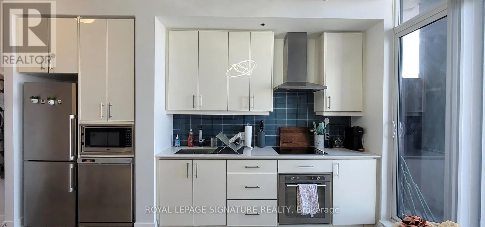Don Mills/Lawrence Conveniently Located, Modern, Well Maintained Building! Close to Eglinton LRT Station! Sparkling Clean And Bright Unit with Unobstructed North View! 12 Ft Exposed Concrete Ceilings, Floor To Ceiling Large Windows. Grey Oak Laminate Floor Throughout. Open Concept Kitchen, Granite Countertop. B/I Stainless Steel Appliances. Glass Tile Backsplash. Underground Visitor Parking. Security Guard. Modern Amenities. Parking And Locker Included. Photos are from before current tenant. (id:27476)