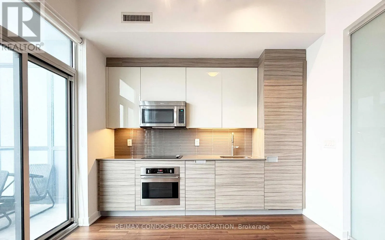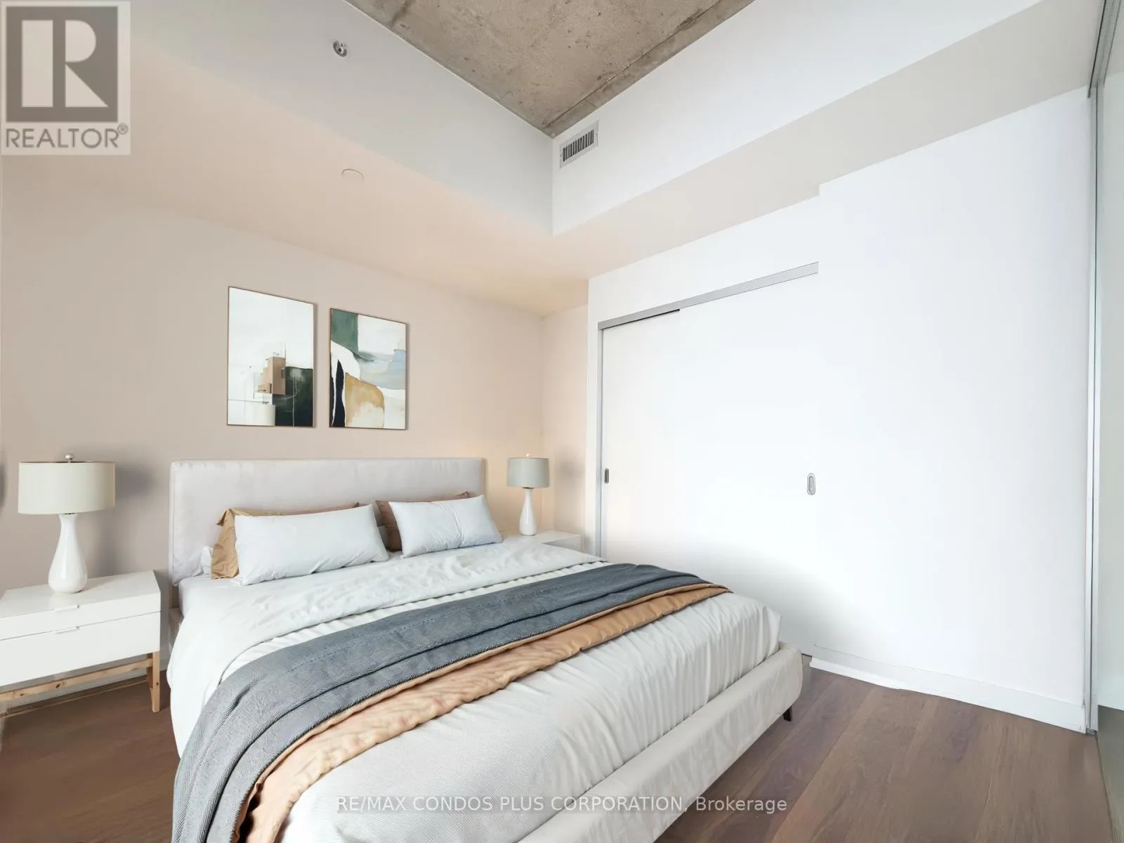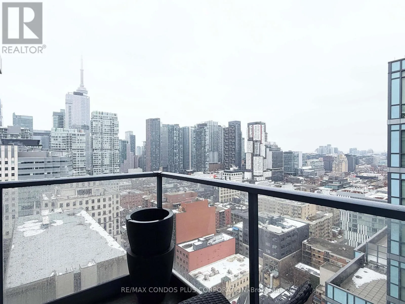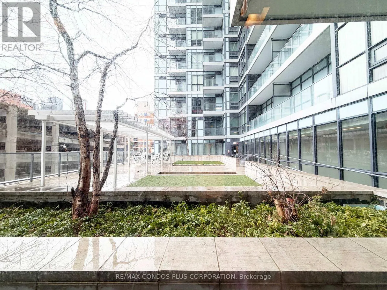 Cross Streets: Queen / University. ** Directions: St Patrick/Michael Sweet. Located in the heart of downtown Toronto, 210 Simcoe offers exceptional convenience steps to TTC, St. Patrick subway station, U of T, OCAD, major hospitals, the Financial District, shopping, dining, and cultural destinations. Set on a quieter street while still steps to everything downtown has to offer. Well-maintained 1-bedroom, 1-bath suite with a balcony, 1 wider parking lot beside elevator & 1 locker included. Freshly painted. Bright open-concept layout with high ceilings and large windows bringing in plenty of natural light. Functional kitchen with modern finishes and integrated stainless steel appliances. Residents enjoy premium amenities including 24-hour concierge, fitness centre, party room, sauna, bicycle rack and rooftop terrace with BBQs and skyline views. (id:27476)