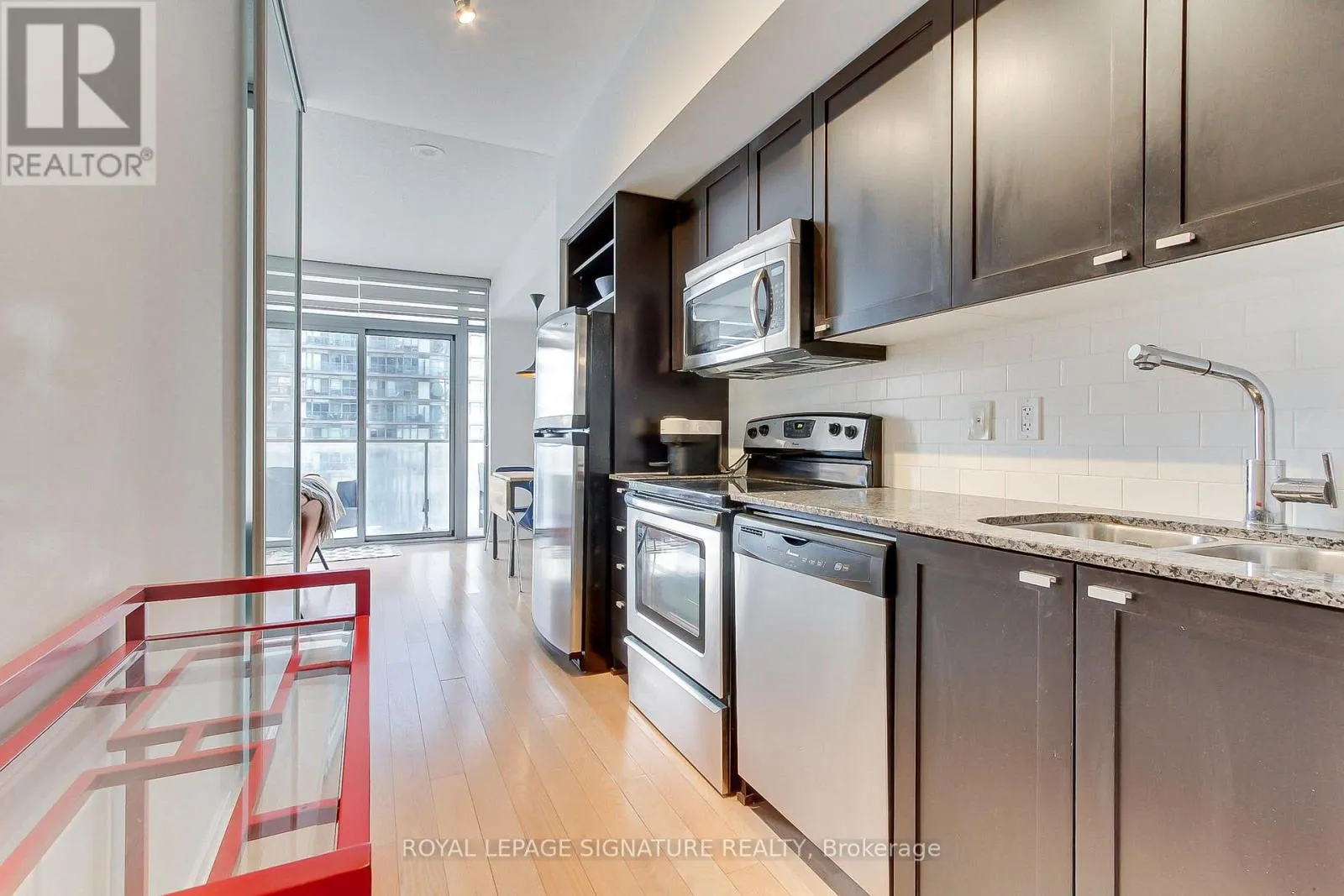 The Queens Way Ave / Windermere Ave Experience the perfect harmony of nature and urban sophistication. With a prime Southwest exposure, this modern suite is flooded with natural light through floor-to-ceiling windows and features soaring 9 ft ceilings with upgraded flooring throughout and custom blinds. The functional, open-concept design is anchored by a contemporary kitchen boasting stainless steel appliances and a convenient breakfast bar. The spacious living and dining area flows effortlessly out to a private balcony where you have a fantastic view of Lake Ontario. This unit includes one dedicated parking space. Located in a vibrant west-end community, you are just steps from the waterfront boardwalk, The Boulevard Club, CNE grounds, Sunnyside Beach, Liberty Village, and the lush trails of High Park, with the TTC Humber Loop and Gardiner Expressway providing easy access to the downtown core. This premium building offers world-class amenities including a 24-hour concierge, indoor and outdoor pools, a sauna, a fully equipped fitness centre, a rare tennis court, on-site daycare, a convenience store, theatre and party rooms, and guest suites. Whether you are enjoying the sunrise over the Humber Bay Bridge or the convenience of nature in the city, this exceptional suite offers a coveted. opportunity for a refined waterfront lifestyle. (id:27476)