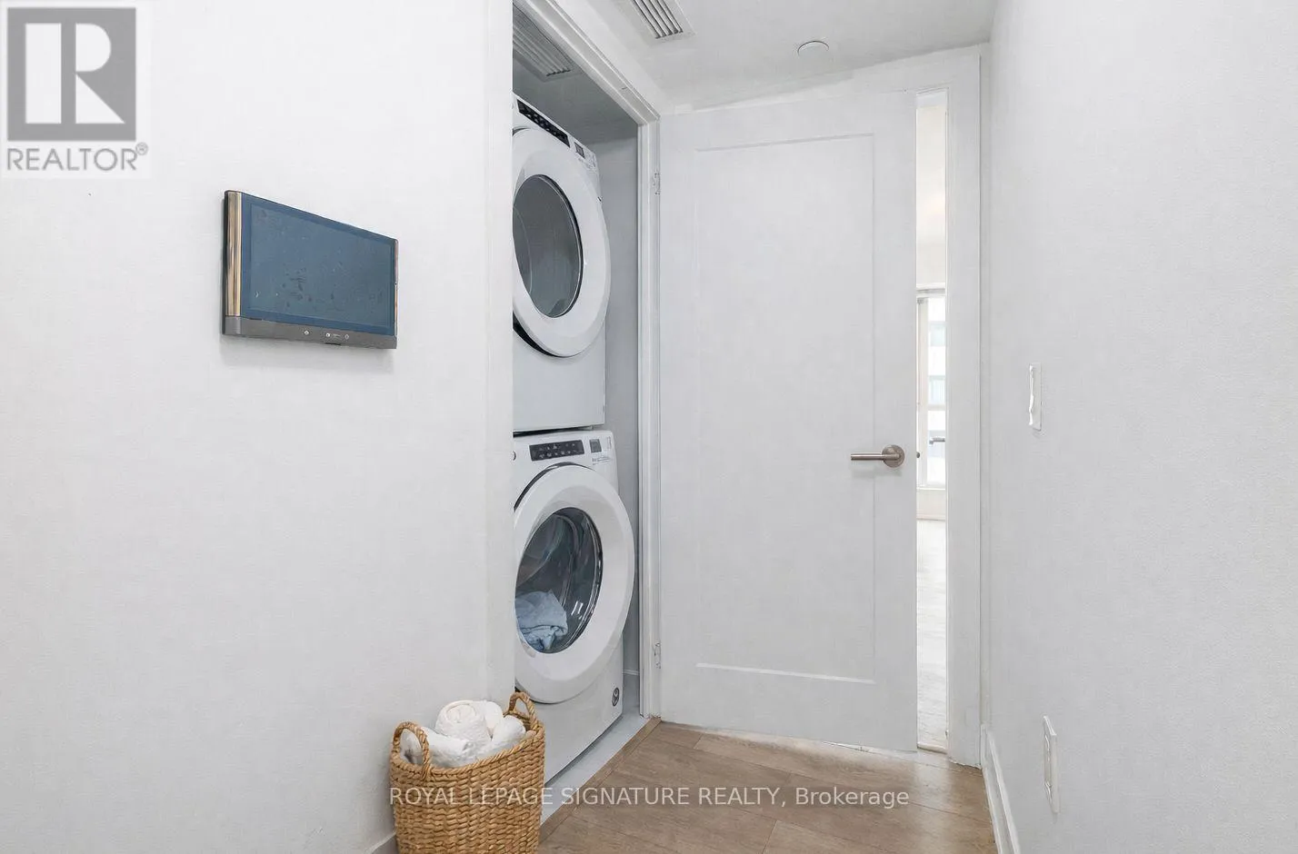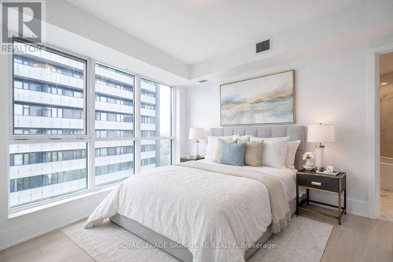 BLOOR /PARLIAMENT Experience elevated city living in this luxury southwest corner suite at Via Bloor. Thisspacious 2-bedroom, 2-bathroom residence offers 846 square feet of thoughtfully designed livingspace, featuring 9-foot ceilings, floor-to-ceiling windows, and an open-concept layout filledwith natural light. Step out onto your private balcony and enjoy beautiful southwest views withglimpses of the lake and the iconic CN Tower. The modern kitchen is designed for both style andfunction, featuring quartz countertops, integrated appliances including a dishwasher,contemporary soft-close cabinetry, and an energy-efficient 5-star design. The suite alsoincludes keyless entry, smart home technology that can be controlled through your phone orsmart panel, convenient ensuite laundry, and custom window treatments. Enjoy resort-styleamenities: rooftop pool with BBQ area, gym, yoga studio, sauna, and entertainment lounge.Perfectly located with the subway right at your doorstep and the Don Valley Parkway justminutes away, this home offers the ultimate blend of luxury, comfort, and convenience in one ofToronto's most connected neighbourhoods. (id:27476)