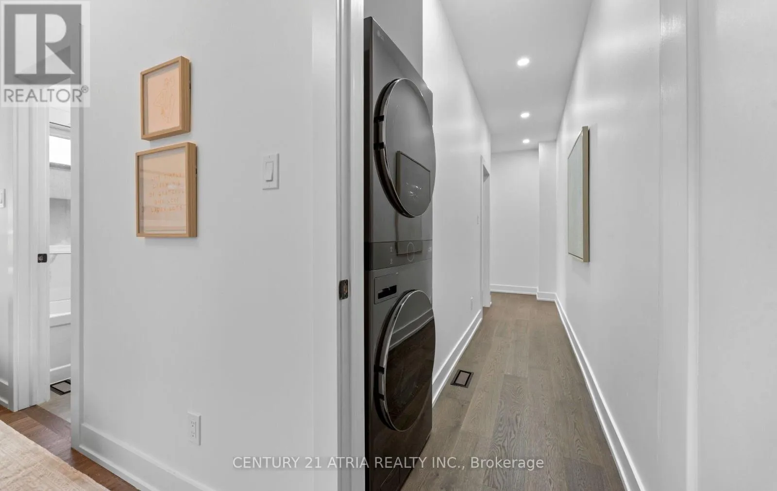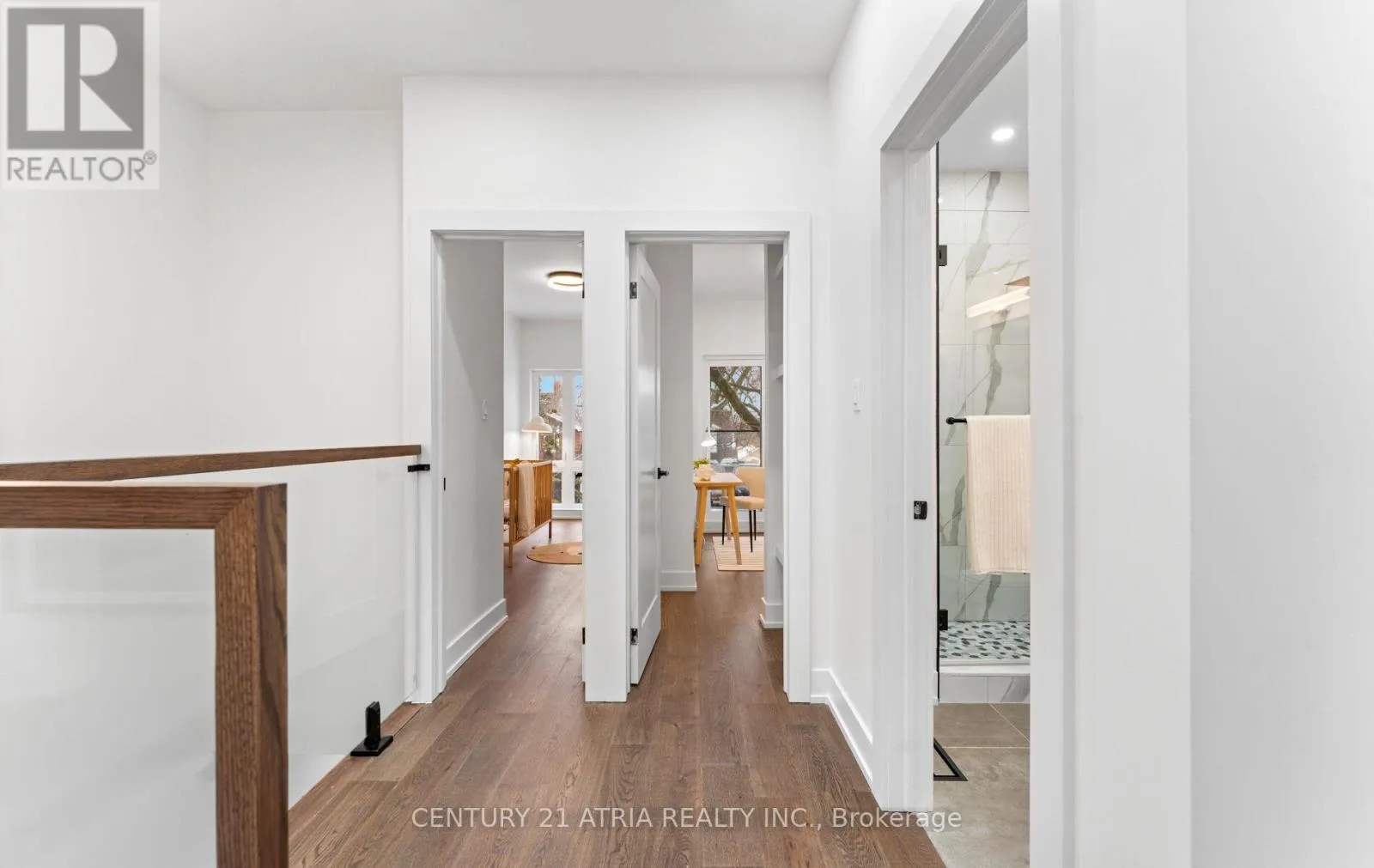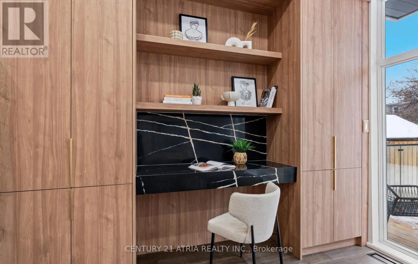 Cross Streets: Woodbine / Danforth. ** Directions: Hey Google, take me to 65 Crewe Ave. Prime East York new build in one of the city's most desirable neighbourhoods. Stunning modern detached home with a legal 1-bedroom lower-level suite. Over 3,000 sq ft (including basement), 4+1 bedrooms, 4.5 baths, and parking for two, offering exceptional comfort and versatile living. Main level features soaring 10 ft ceilings, an inviting living area with a statement feature wall and sleek glass railing, flowing seamlessly into a chef-inspired kitchen with top-tier built-in appliances, display cabinetry, extensive drawer storage, and a stylish coffee/wine bar with integrated workspace. A large waterfall island anchors the space, with a bright family room by the patio doors - currently used as a breakfast table area, easily reimagined as an office, playroom, or additional living space - opening to the deck for effortless entertaining. Chic powder room completes the main floor. Upstairs: sun-filled interiors continue with a hallway skylight, four bedrooms, including a serene primary retreat complete with a private balcony overlooking the backyard and a spa-like ensuite. Two adjacent bedrooms offer the flexibility to be combined into one larger room, if desired. Finished lower level offers a flexible space for a private office, gym, or children's playroom with a full bathroom for the main home, along with a fully self-contained 1-bedroom suite. The suite has a separate walk-up entrance, full kitchen, full bathroom, separate laundry, and bright living space. Income potential or multigenerational living. Exceptional value and move-in ready! Steps to TTC, Main & Woodbine subway stations, GO, parks, trails and minutes to the Beaches and downtown. (id:27476)