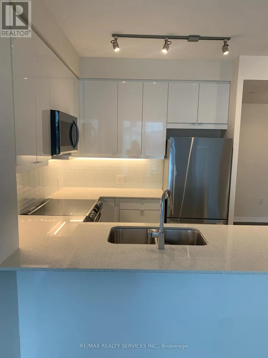 Dundas & Kipling Welcome to Cypress at 50 Thomas Riley Rd! Available from May 1st! This stunning and spacious 1-bedroom suite offers 621 sq. ft. of interior living space plus a 43 sq. ft. balcony. The unit features premium neutral plank laminate flooring and a bright open-concept living and dining area with walk-out to the balcony. The modern kitchen includes designer cabinetry, ceramic backsplash, under-cabinet lighting, and stainless-steel appliances. The primary bedroom offers a large mirrored closet for ample storage. Residents enjoy excellent amenities including 24-hour concierge, a fully equipped fitness center, yoga room, party room with kitchenette, outdoor terrace with BBQ area, and a children's play space. Includes 1 parking space and 1 locker, with Rogers internet included. Conveniently located steps to Kipling TTC Subway, bus routes, major highways, shopping, restaurants, and more (id:27476)