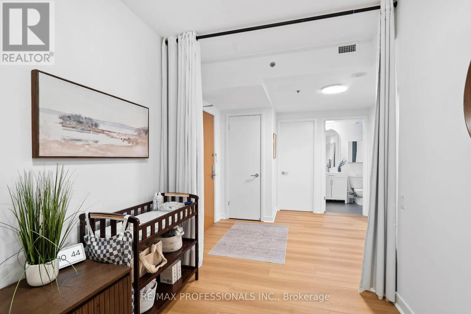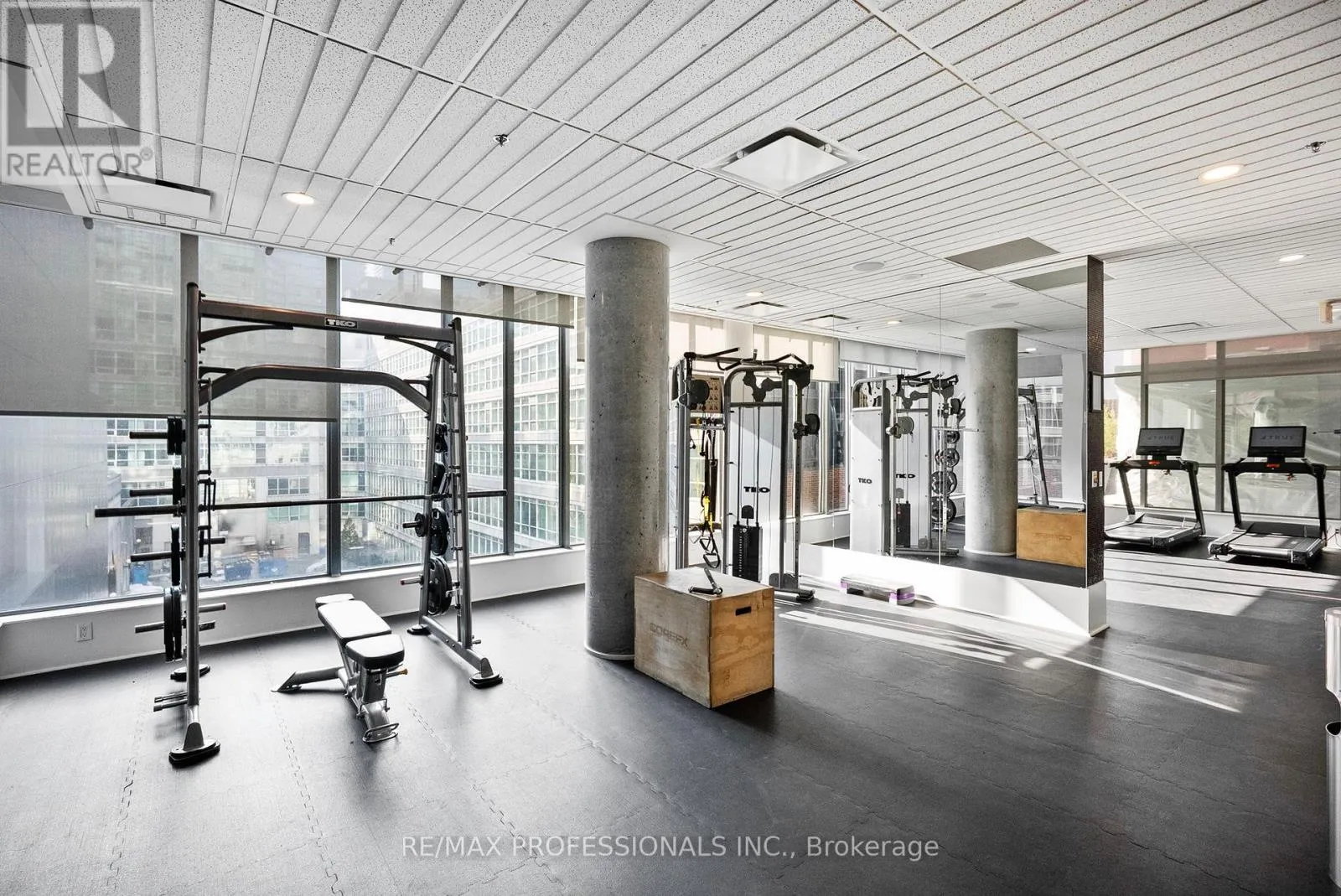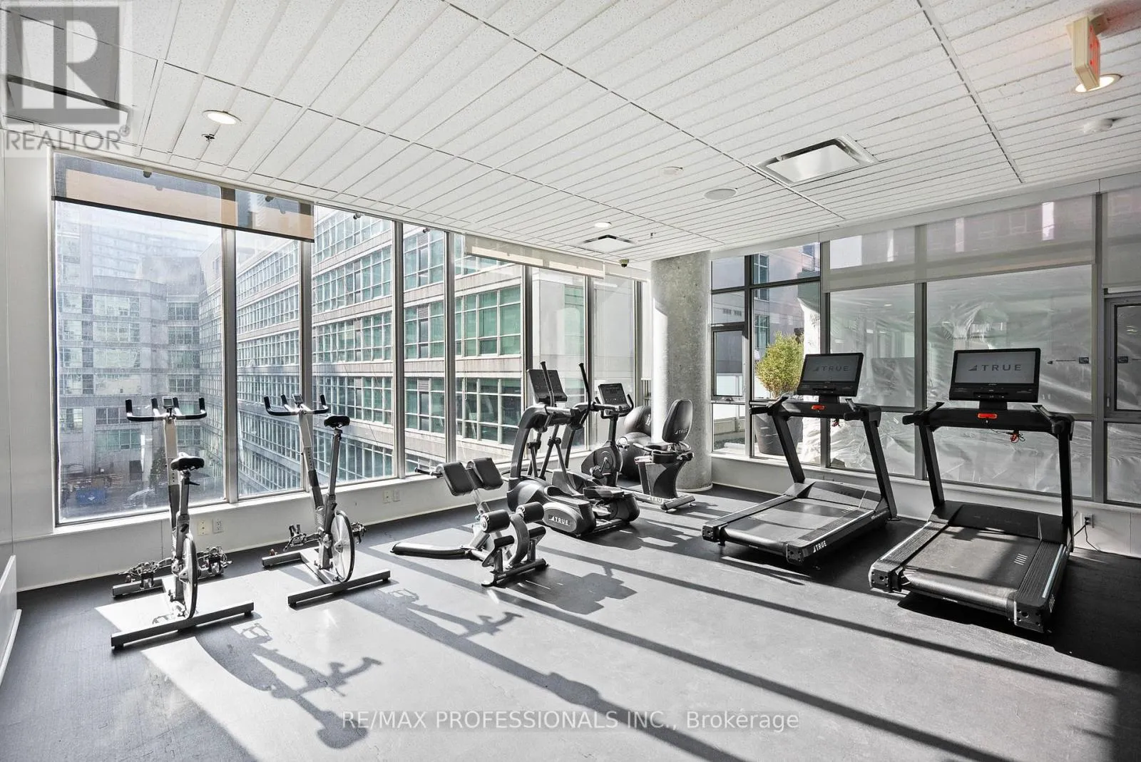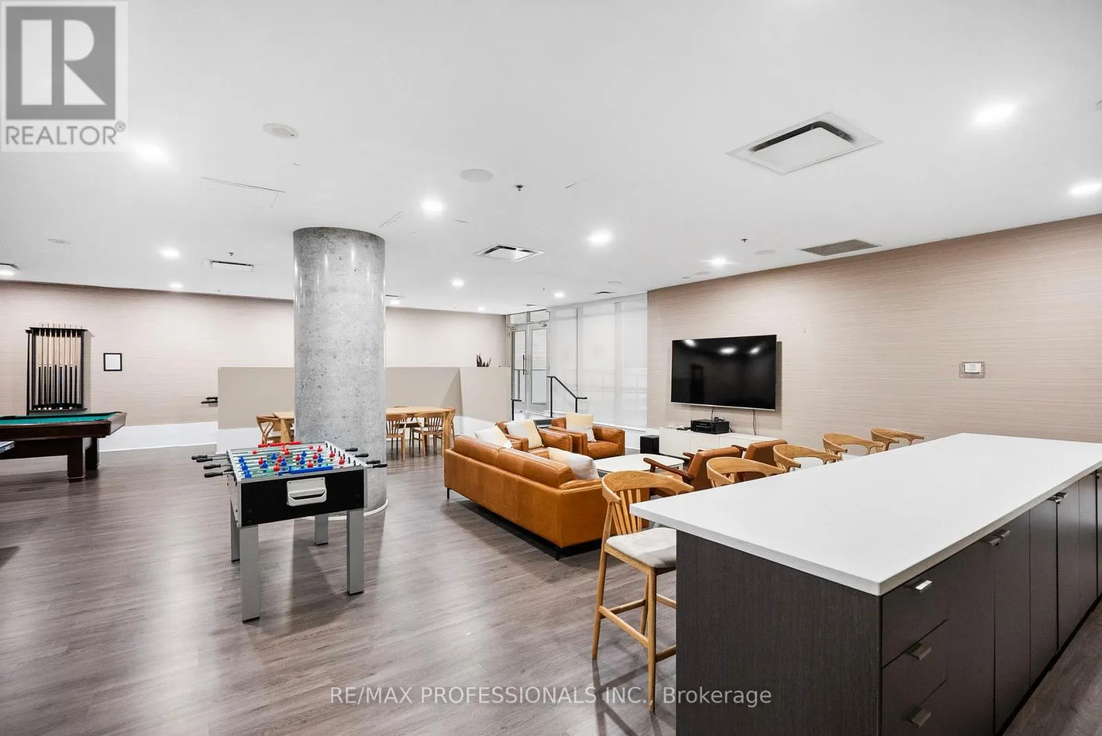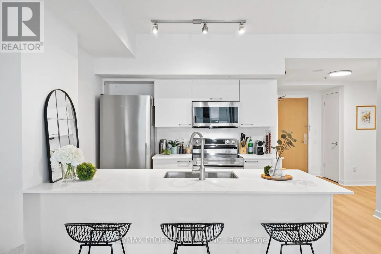 King St W & Spadina Ave Welcome to M5V Condominiums in the heart of Toronto's vibrant Entertainment District! This beautifully NEWLY RENOVATED and freshly painted 1 bedroom + large den, 1 bath suite offers 721 sqft. of thoughtfully designed living space and floor-to-ceiling windows. Featuring a chef's kitchen with quartz countertops and backsplash, stainless steel appliances and breakfast bar, complemented by new flooring and modern finishes throughout. The primary bedroom includes a walk-in closet, while the oversized den can function as a true second bedroom, spacious home office, or additional living area. A separate laundry room provides new LG Smart washer and dryer (2025) and rare in-suite storage for added convenience. Relax on your large private balcony which offers 159 sqft of outdoor living space. Enjoy premium amenities including a gym with free weights and cardio, Peloton bike studio, guest suite, rooftop terrace and games/party room, 24-hour concierge and free visitor parking. Steps to Rogers Centre, CN Tower, and transit in a prime King West location. Parking and locker included. (id:27476)
