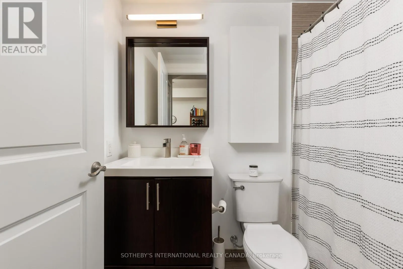 Cross Streets: Front St W & Bathurst St. ** Directions: North on Bathurst St, East on Front St W. KING WEST. TRIDEL. TURNKEY. PARKING + LOCKER INCLUDED. Rêve Condos, 560 Front Street West. A smartly upgraded 1-bedroom courtyard suite in one of downtown Toronto's most respected buildings. Built by Tridel, managed by Goldview, and maintained to the high standard you'd expect. Owned underground parking and an oversized cage-style storage locker are included, a combination genuinely rare in King West. Every square foot works. The open-concept layout flows from a contemporary kitchen with quartz counters, S/S appliances, and LED under-cabinet lighting to a bright living area with 9ft smooth ceilings and floor-to-ceiling windows. The breakfast bar seats four, perfect for dinners or catching up with friends. The bedroom fits a queen comfortably with oversized custom closets and blackout blinds. A 4-piece bath, in-suite laundry, and west-facing tiled balcony overlooking the quiet interior courtyard complete the suite. Nothing needs to be done. Designer lighting. Custom built-ins. Brand new full-size Samsung washer/dryer and LG refrigerator. This is a home two owners poured real care into; not a flip or rental turnover. Move in. Unpack. Live. The building matches the unit: 24-hour concierge, commercial-grade gym with rack and spin bikes, cedar sauna, steam room, yoga studio, and a rooftop terrace with BBQs and skyline views. Includes a screening room, billiards lounge, and professional meeting room. Step outside: Farm Boy and Dollarama are next door. Fresh groceries without crossing a street. The Well is a 2-minute walk with Sweat & Tonic, shops, and dining. F45 and the new Equinox are steps away. Waterworks Food Hall, Stackt Market, and King West's best patios are within a 10-min walk. Victoria Memorial Square is across the street. The 504 King, Bathurst and Spadina streetcars are a block away. Easy Gardiner access. Walk Score: 99. Transit: 95. Short-term rentals permitted - a rare feature for owners who want to travel, want income flexibility, or as an investment. (id:27476)