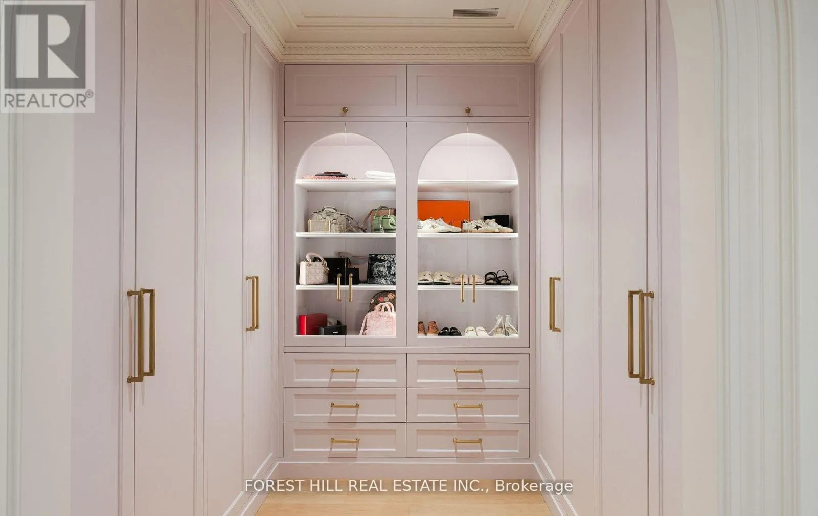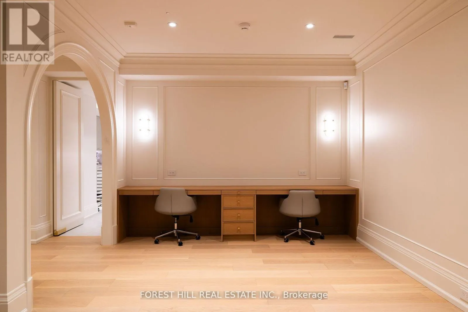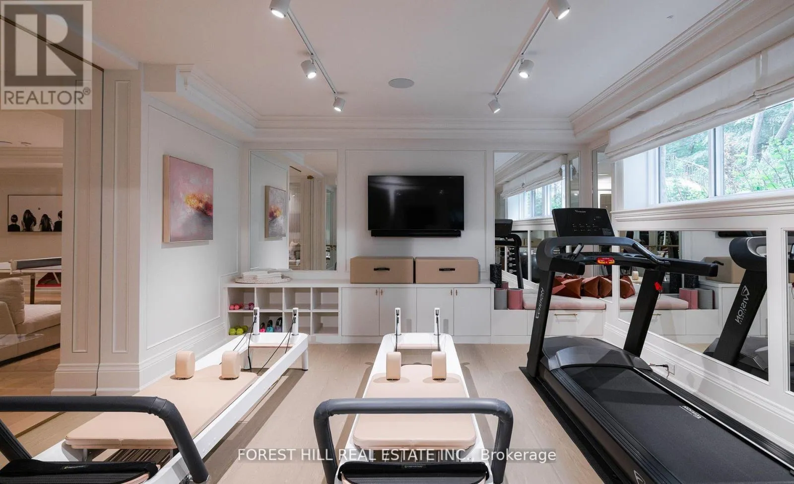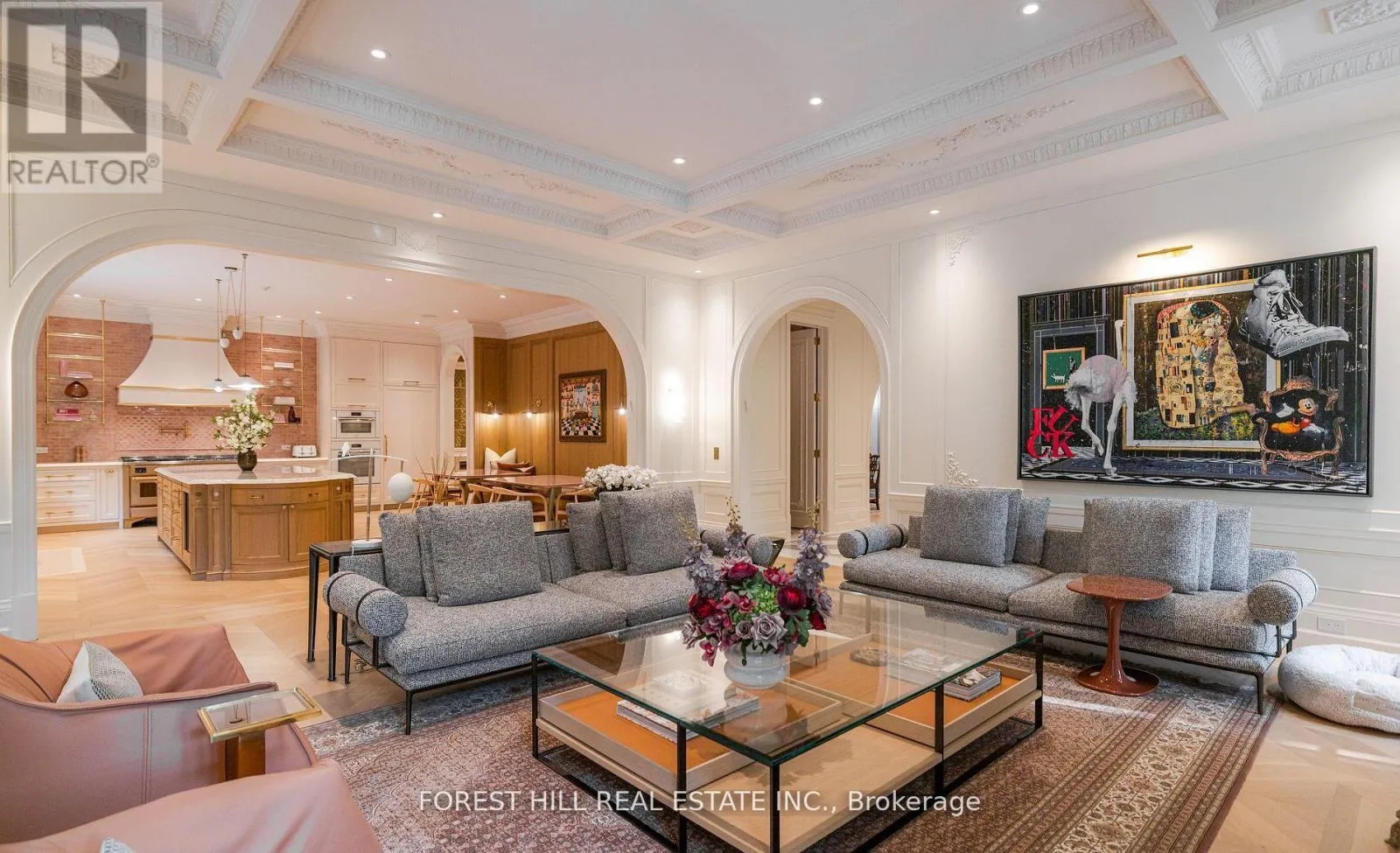 Forest Hill Rd/Larratt St Welcome to 221 Forest Hill Road, an architectural triumph with nearly 13,000 sq ft of living space on a private 17,000 sq ft lot, nestled along the Beltline Trail in the heart of one of Toronto's most exclusive enclaves. This estate represents the pinnacle of bespoke luxury, meticulously brought to life by the city's finest: JTF Homes, Lorne Rose Architect, and Dvira Interiors. Clad in hand-selected limestone and inspired by the romance of the French countryside, the residence evokes the timeless elegance of a Provencal chateau. Arched windows with weathered-blue shutters, a stately turret, and a gracefully symmetrical facade create a striking first impression. A dramatic arcaded loggia opens onto manicured grounds and landscaping imagined by Fitzgerald and Roderick, featuring a lap pool, sports court, and lavish gardens that offer privacy and tranquility. The interiors are nothing short of breathtaking curated blend of old-world grandeur and modern refinement. The main level features soaring ceilings and a dramatic spiral staircase. Chevron-patterned white oak floors, arched passages, imported wallpaper, and tailored lighting reflect impeccable attention to detail. The formal dining room (seating 20) flows effortlessly into a statement kitchen adorned with hand-painted Portuguese tiles and custom cabinetry by Emanuele Furniture Design. The sunlit family room is anchored by a hand-carved fireplace and opens onto the gardens through elegant French doors. The crown jewel is the primary suite, a true sanctuary with vaulted ceilings, whimsical wallpaper, arched detailing, and a fireside lounge that creates a retreat-like atmosphere. The piece de resistance: a couture-inspired, two-storey dressing room with a spiral staircase and chandelier, paired with a spa-like ensuite clad in expansive stone and Shirley Wagner fixtures. The lower level features a sprawling rec room, games lounge, prep kitchen, gym, cedar sauna, and a home theatre for the ultimate cinematic escape. (id:27476)