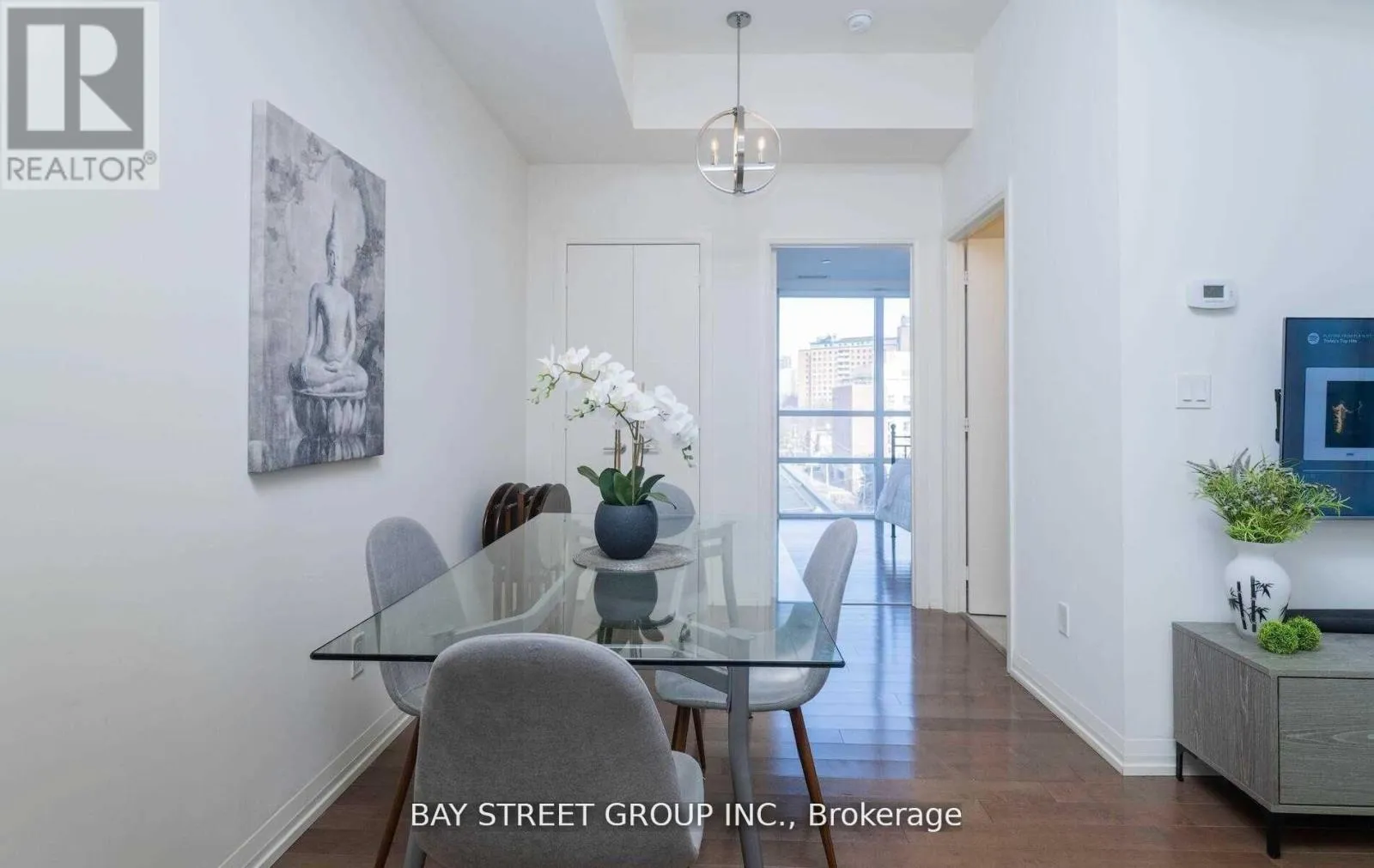 Adelaide St E & Sherbourne St Features an oversized balcony, 9-foot ceilings, and floor-to-ceiling glass windows in the bedroom. Functional 1+1 layout with separate living and dining areas. Located in a highly convenient downtown location with easy access to transit, the DVP, Distillery District, future Ontario Line, St. Lawrence Market, Sugar Beach, Don River Park, Toronto Metropolitan University (Ryerson), George Brown College, and nearby schools. Ideal for downtown living, first-time buyers, or investors. Extras: Existing stove, fridge, dishwasher, washer and dryer, window blinds, and all existing electrical light fixtures. Gourmet kitchen with quartz countertops. 659 sq. ft. as per builder's floor plan. Photos were taken when staged. (id:27476)