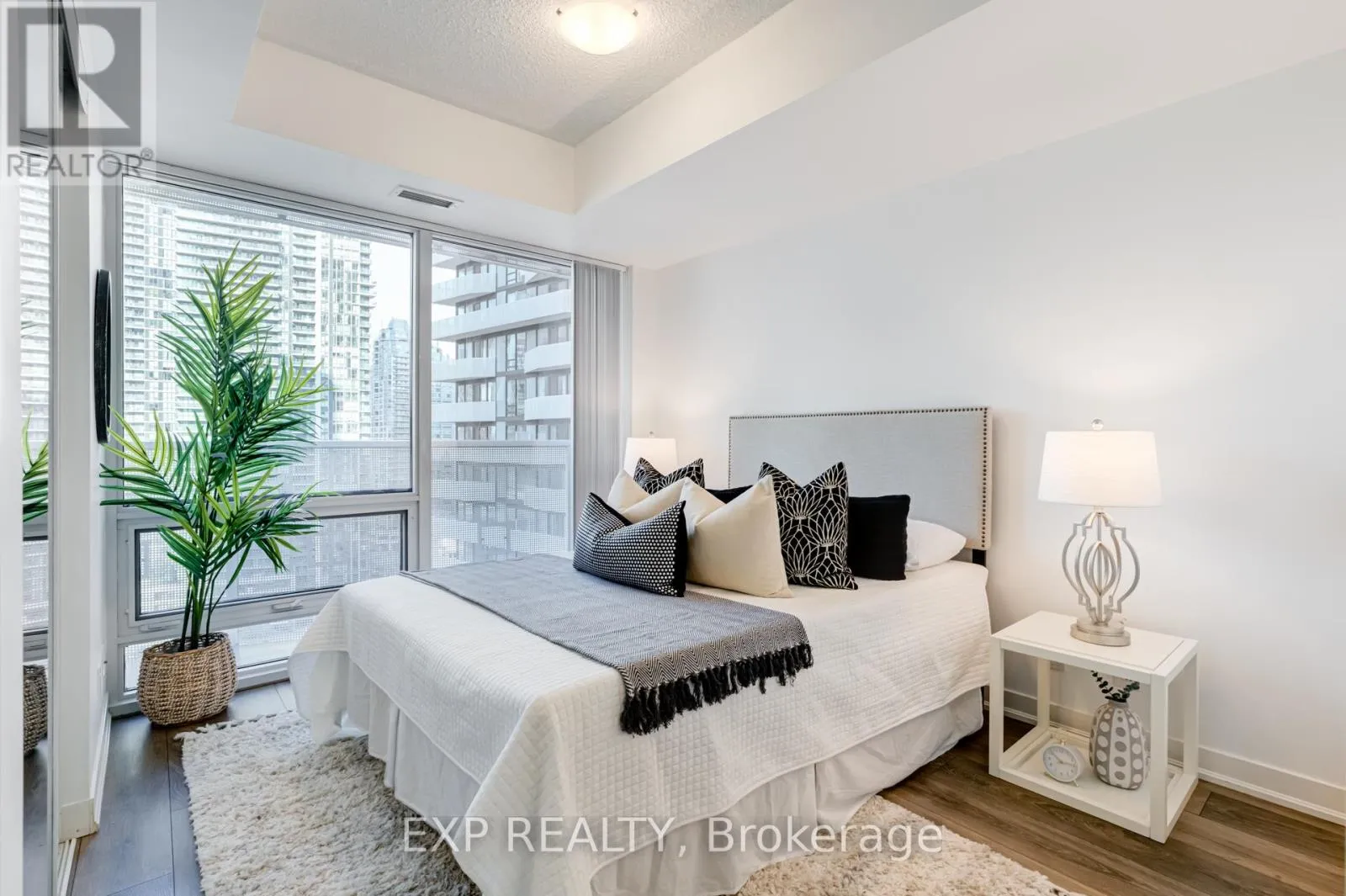 Cross Streets: York St/Harbour St. ** Directions: -. Set high above the waterfront on the 16th floor, this corner residence at Harbour Plaza offers a refined expression of downtown living in the heart of Toronto. Framed by floor-to-ceiling glass, the home captures sweeping city views while natural light moves effortlessly through a thoughtfully designed split two-bedroom, two-bathroom layout - balancing openness with privacy. The interiors reflect a modern, understated elegance. A sleek kitchen anchored by quartz surfaces and integrated appliances flows seamlessly into the living and dining space, creating a setting equally suited to quiet evenings at home or hosting above the skyline. Every detail is designed for comfort without excess - a home that feels both elevated and effortless. Daily life here unfolds with remarkable convenience. Residents enjoy direct access to the underground PATH network, placing the Financial District, shopping, and dining within reach year-round. Union Station, Scotiabank Arena, and the waterfront at Harbourfront Centre are all moments away, connecting you to the very best of the city. Within the building, a full suite of amenities supports a well-rounded lifestyle - including 24-hour concierge service, a state-of-the-art fitness centre with Pure Fitness memberships, an indoor pool, steam rooms, and a landscaped outdoor terrace with BBQ areas overlooking the skyline. Beyond the tower, the surrounding waterfront community offers an uncommon balance of urban energy and open space. Nearby parks, waterfront trails, and respected schools such as Jean Lumb Public School contribute to a neighbourhood that is both vibrant and livable.For those seeking a residence that pairs thoughtful design with the connectivity of downtown Toronto, Harbour Plaza presents a home - and a lifestyle - that moves with the rhythm of the city. Parking is available for $250 extra per month. (id:27476)