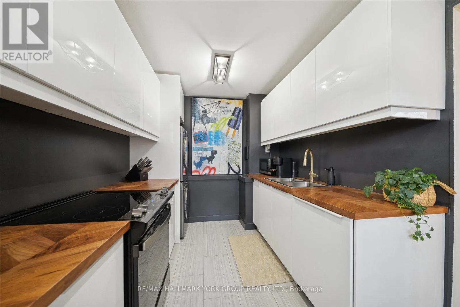 Don Mills/Eglinton Step Into Homeownership With This Completely Remodelled, Bright & Stylish 770SqFt Corner Suite at Glen Valley Condos. This 2-Bedroom Home Delivers Rare Space, Sunlight With Both South and West Exposure. Fully Updated Top to Bottom, It Offers Modern Design, Premium Finishes, and a True Move-In Ready Lifestyle.The Open-Concept Living Area Features Luxury Vinyl Plank Flooring, Sound-Absorbing Panels, Updated Trim, New Doors, Modern Fixtures, and a Striking Accent Wall. The All-New Kitchen Impresses With Push-Open Cabinetry, Herringbone Wood Countertops, Integrated Fridge/Freezer and Dishwasher, Plus Ample Storage and Counter Space. Appliances Include a Stainless Steel Stack Washer/Dryer (2023) and Black Stove, with Integrated Fridge and Dishwasher (All 2024!). Step Into The Spa Like Bathroom That Has Been Thoughtfully Rebuilt With a Modern Vanity, Quartz Countertop, Luxury Vinyl Tile, Limewash Paint, Heated/Defogging Mirror, Elegant Bowl Sink, and New Fixtures Throughout. Premium Top-Down/Bottom-Up Roller Blinds Offer Ideal Light and Privacy Control. Parking and Locker Are Also Included, and the Monthly Fee Covers Everything! - Hydro, Heat, Water, Cable TV, and Second Parking Spot Available For $50/month, Ample Visitor Parking Available.. Amenities Are a Major Highlight: Dive Into the Massive Indoor Pool, Unwind in the Saunas, Work Out in the Full Gym, or Host in the Stylish Party/Games Room. An Unbeatable Location in One of Toronto's Fastest-Growing Pockets. Located Minutes to the Shops at DonMills, DVP, TTC, Parks, and Schools, This Is a Lifestyle Upgrade From Every Angle. Move-in Ready, Extensively Renovated, and Offering Exceptional Value for the Area. This is The One You've Been Waiting For! (id:27476)