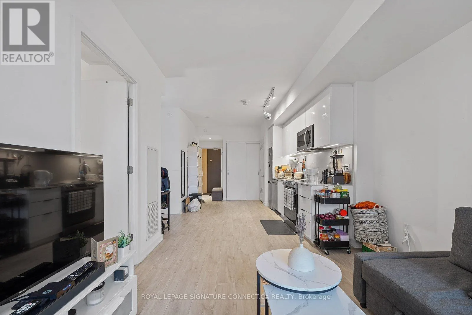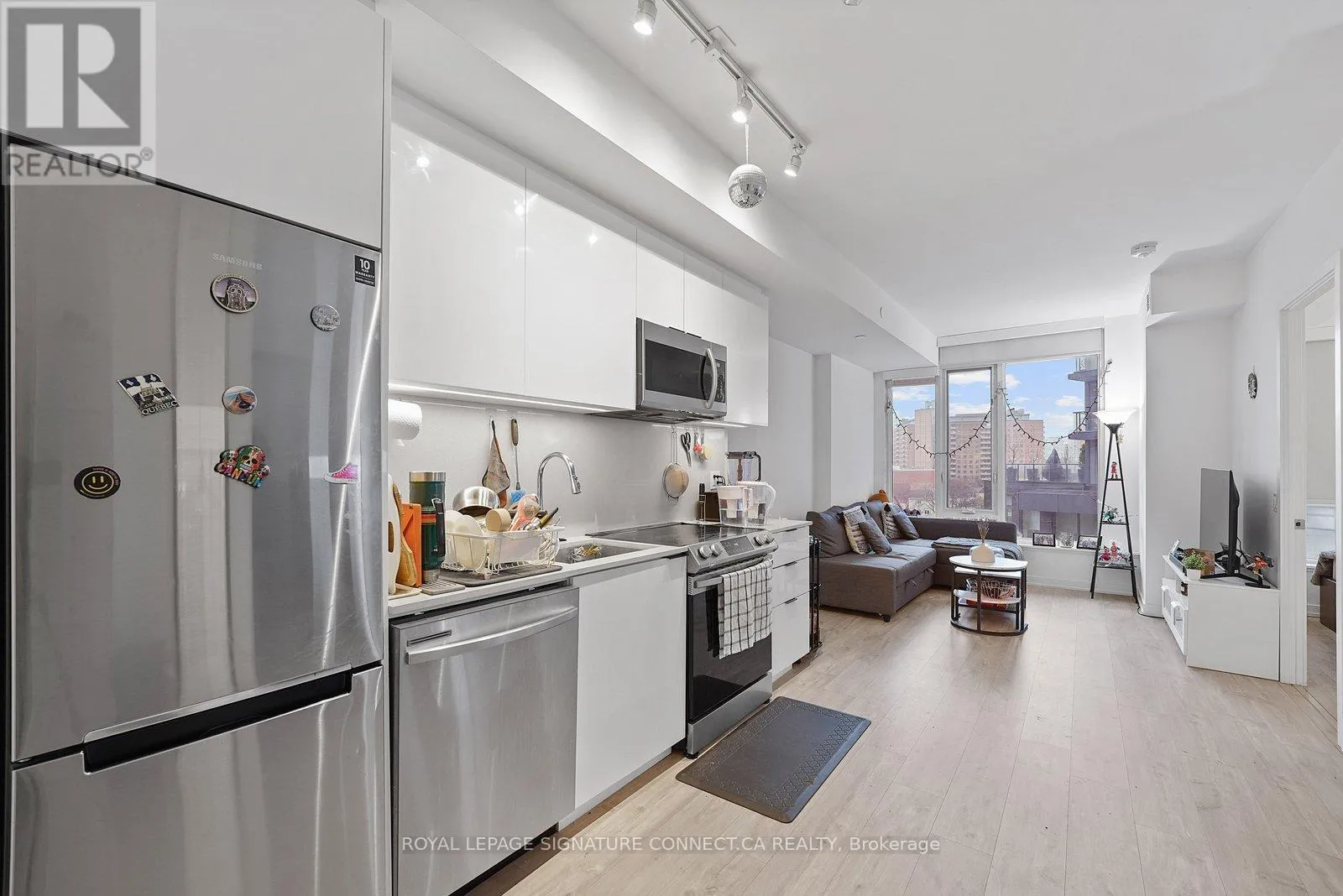 Power & Adelaide Street Spectacular 1-bedroom plus den suite in the newly completed Home Condos, perfectly situated at 50 Power Street in the vibrant Moss Park community. This spacious, unfurnished 609-square-foot unit features a modern, open-concept layout designed for comfort and entertaining. The interior features laminate flooring throughout and a versatile den ideal for a home office or work-from-home setup. The modern kitchen is equipped with built-in stainless steel appliances and combines with a bright dining and living area featuring large windows. Residents enjoy many high-end building amenities, including a 24-hour concierge, fitness and yoga studios, steam rooms, an indoor pool, a games lounge, and a rooftop deck with barbecue grills. The property includes one exclusive locker for additional storage. Experience the convenience of urban living with easy access to public transit and the Financial District, as well as the unique dining and shopping of nearby Leslieville and St. Lawrence Market. (id:27476)