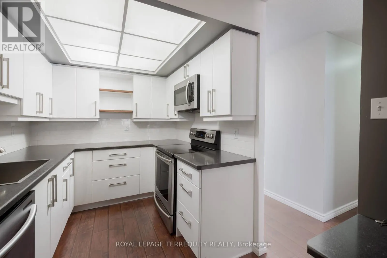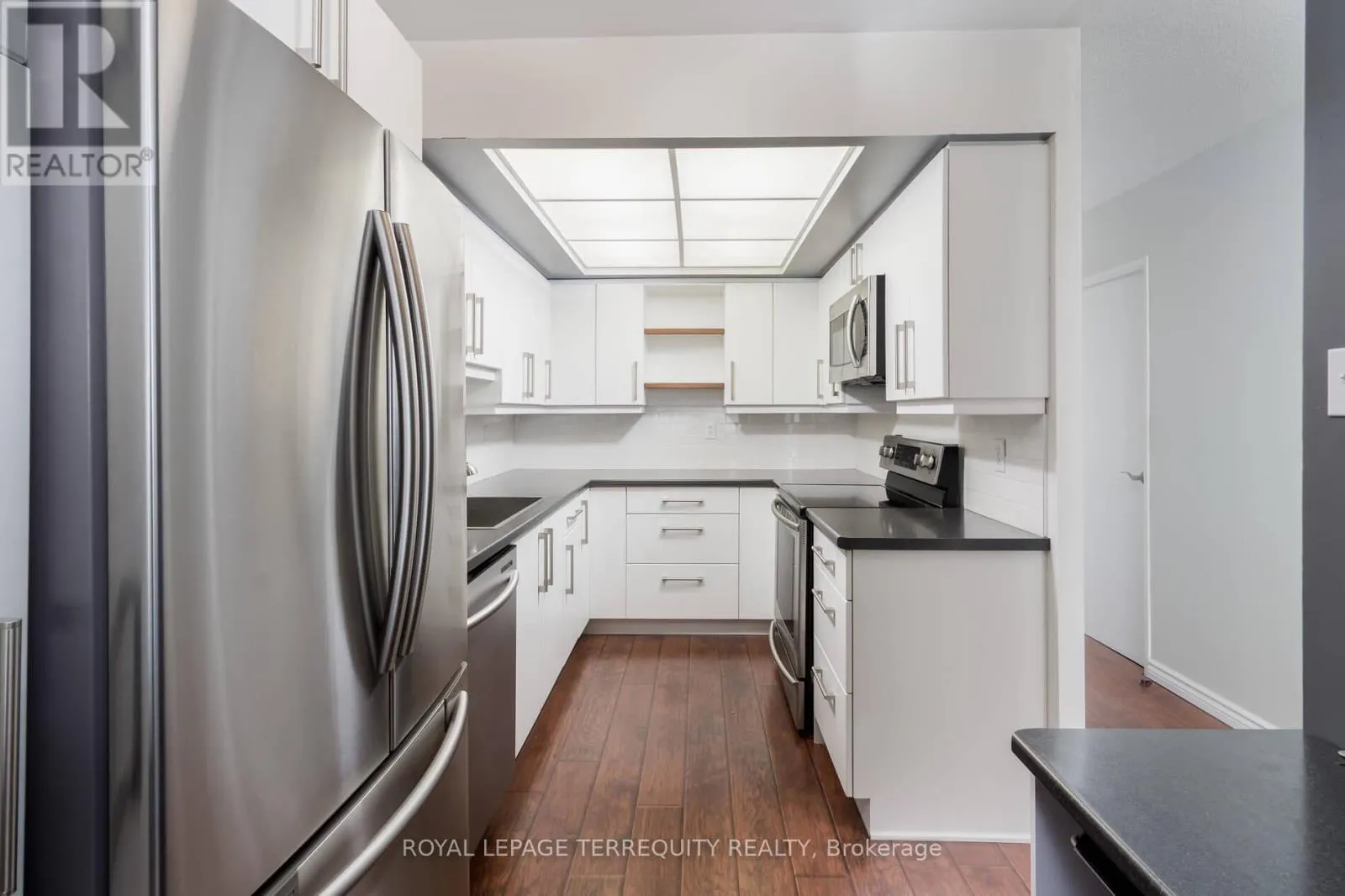 Cross Streets: Lawrence East and Ling. ** Directions: Lawrence East to Ling. Welcome to Scarborough Wood. This well-maintained and thoughtfully cared-for 2-bedroom, 2- bathroom suite is filled with natural light thanks to its west-facing exposure. Step onto the private balcony and enjoy beautiful sunset views while overlooking the surrounding area. Inside, the unit features dark wood-tone laminate flooring throughout, a spacious primary bedroom with its own ensuite bathroom, and the convenience of a full-sized laundry room. Residents enjoy excellent building amenities including an outdoor pool, fitness centre with sauna, visitor parking, and 24-hour concierge and security. The building also includes unlimited gigabit internet and cable TV. Ideally located with transit, a pharmacy, and grocery shopping just across the street, this home offers both comfort and convenience in a great community. (id:27476)