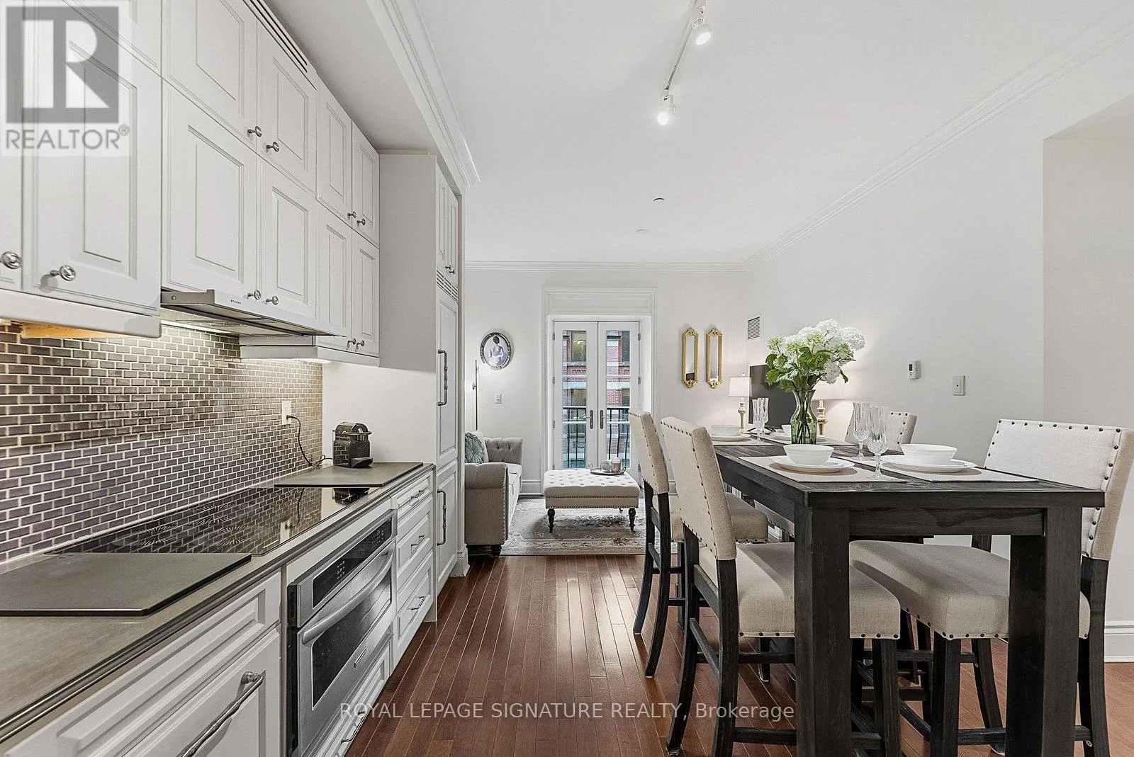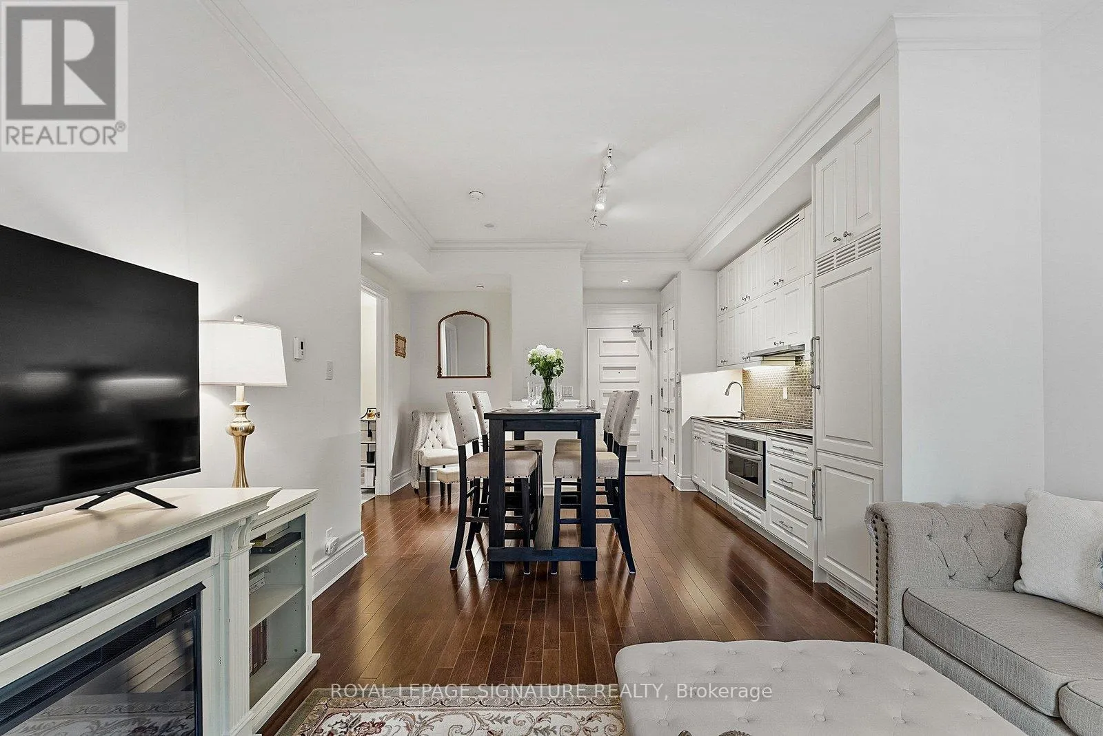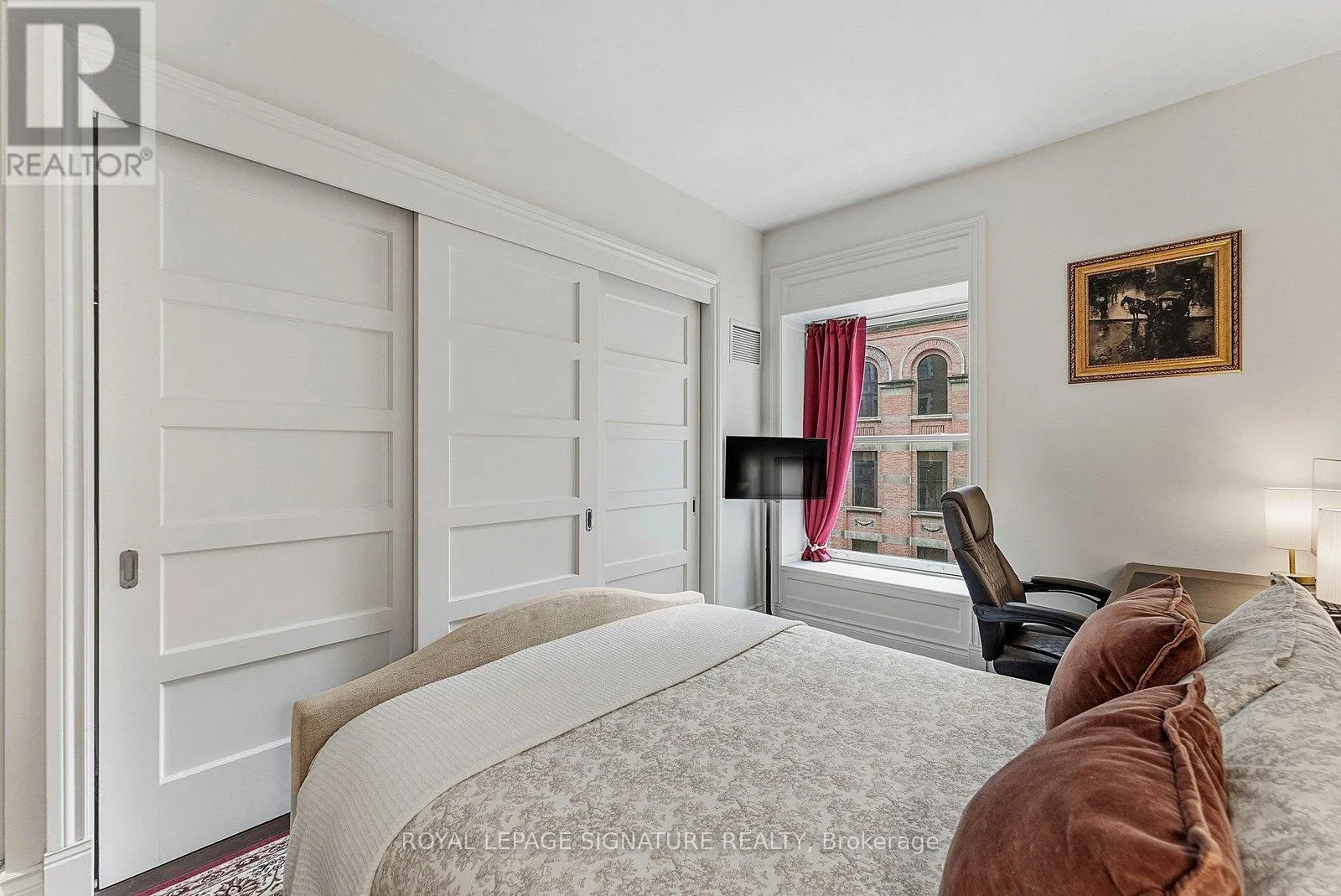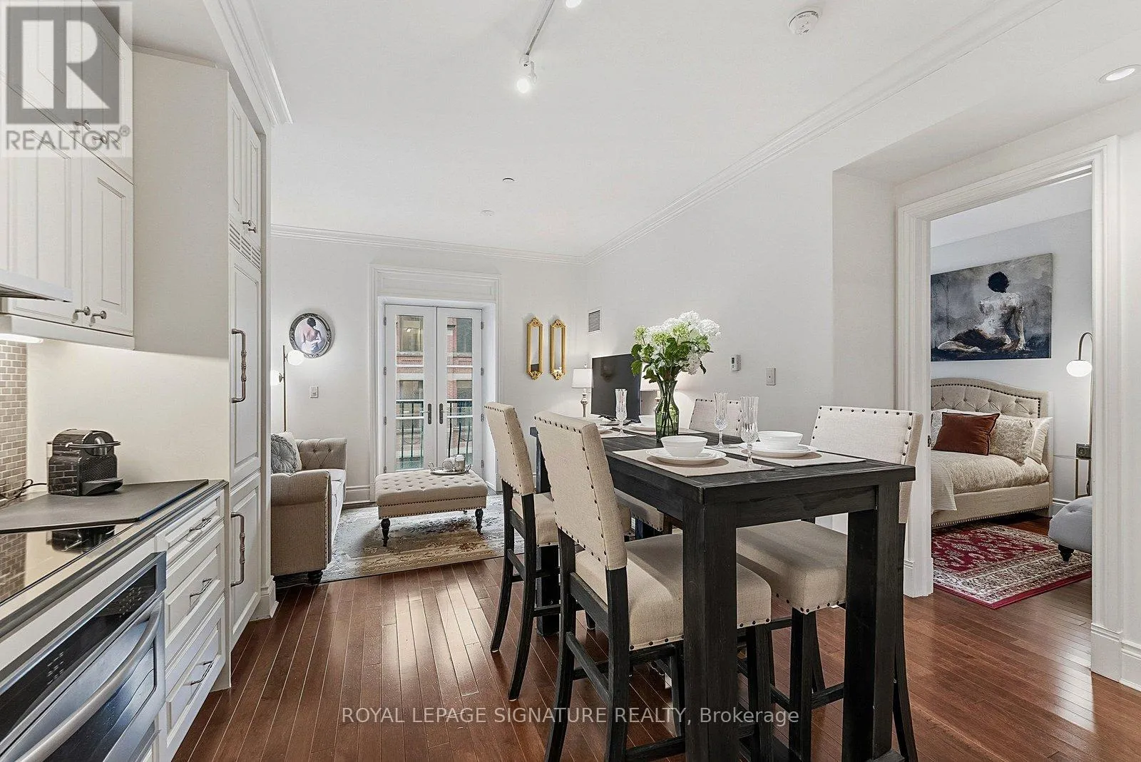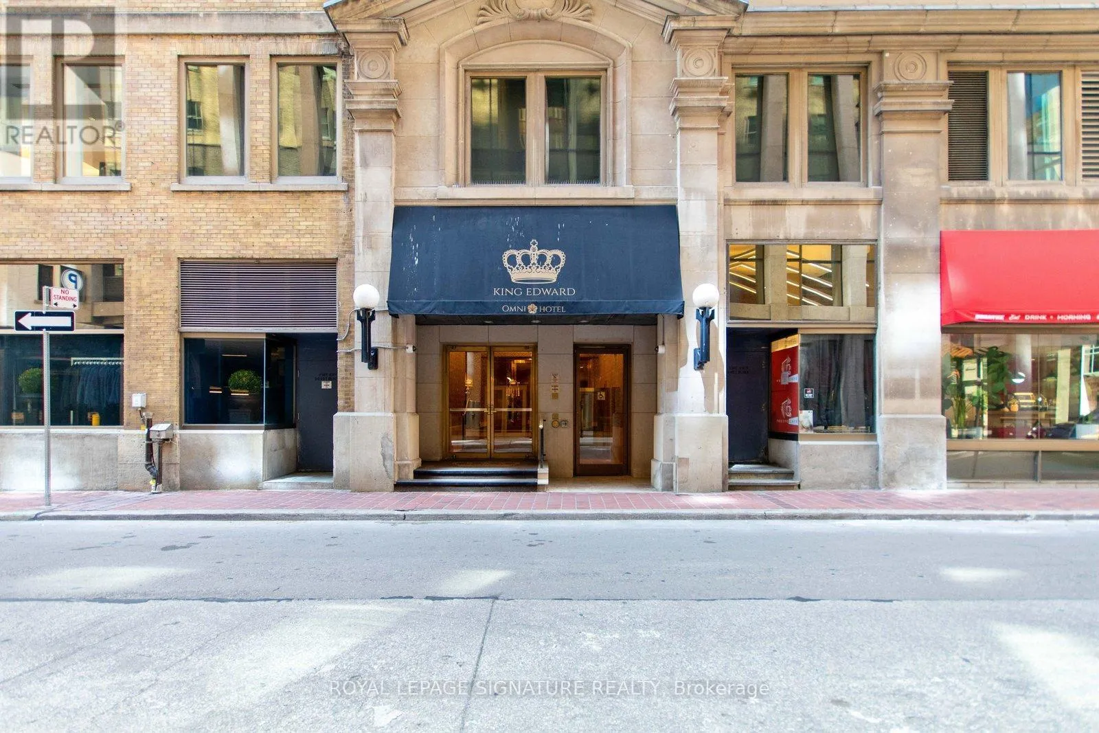 King Street & Yonge Street Welcome To Unit 339 at The King Edward Private Residences. Available Fully Furnished. Step into an elegant foyer leading to a modern kitchen with custom cabinetry and integrated appliances, complemented by a separate breakfast nook or office space. The kitchen overlooks the living room, where double doors open to a Juliette balcony with views of King Street East.This one-bedroom suite features a large closet and a 4-piece spa-inspired ensuite. With hardwood floors throughout and refined custom finishes, this unit exudes sophistication and modern elegance. Fantastic downtown location steps to transits, financial district, St Lawrence market, King Street East, restaurants, and shopping. Access to 4.5 star hotel amenities. (id:27476)
