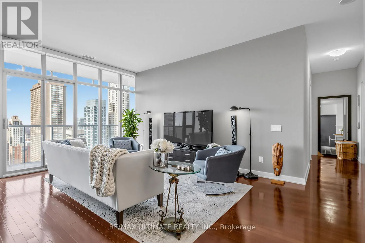 Cross Streets: Yonge and Bloor. ** Directions: East of Yonge and South of Bloor. Find your inner zen in the heart of the city. This is the one to call home. Featuring a highly sought-after 2-bedroom plus den + 2 full bathroom layout with over $30,000 in thoughtfully selected upgrades, this residence offers true turnkey living. Premium finishes include a Sub-Zero refrigerator, stainless steel appliances, and motorized Hunter Douglas blinds in the living area, ideal for both everyday comfort and entertaining. The open-concept layout offers an eat-in breakfast bar, generous storage, and hardwood flooring throughout. Floor-to-ceiling windows bring in excellent natural light and lead to a stunning wraparound balcony, perfect for enjoying the afternoon/evening sun. The spacious primary bedroom comfortably fits a king-size bed and features his-and-hers closets and a five-piece ensuite with double vanity, frameless glass shower, and updated tile finishes.The second bedroom includes floor-to-ceiling windows, a large closet, and a proper door. The third room, enclosed with sliding doors, works well as a home office or guest bedroom. A second four-piece bathroom with soaker tub and ensuite laundry add everyday convenience.Step outside to an impressive 220+ sq. ft. wraparound balcony with three separate access points, ideal for entertaining or relaxing outdoors. Well suited for professionals, couples, or young families.Located 1 minute away from the Yonge & Bloor subway station, steps to Yorkville, underground shopping, the University of Toronto, banks, restaurants, movie theatre, Eataly, Avant and cafés. Parking and locker are conveniently located close to the elevator.Enjoy full building amenities including 24-hour concierge, fitness centre, outdoor pool, hot tub, BBQ area, media room, and visitor parking.Excellent building management. This is the one to call home. Book your private showing today. (id:27476)