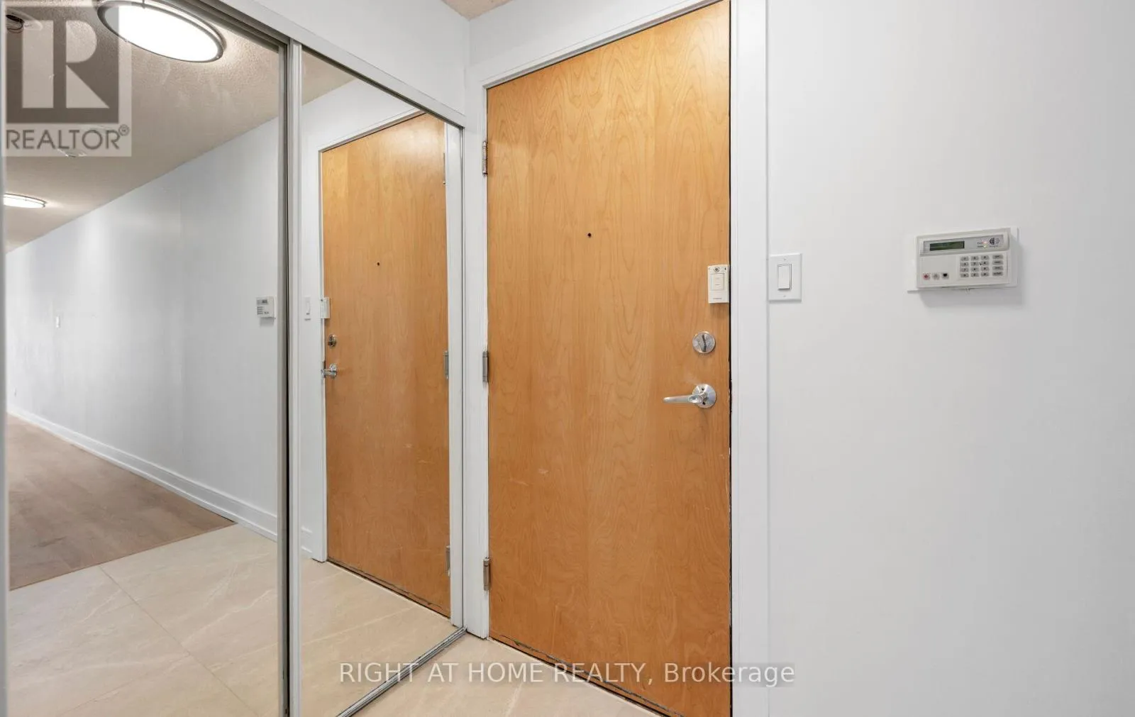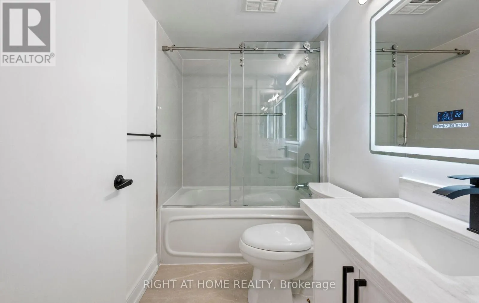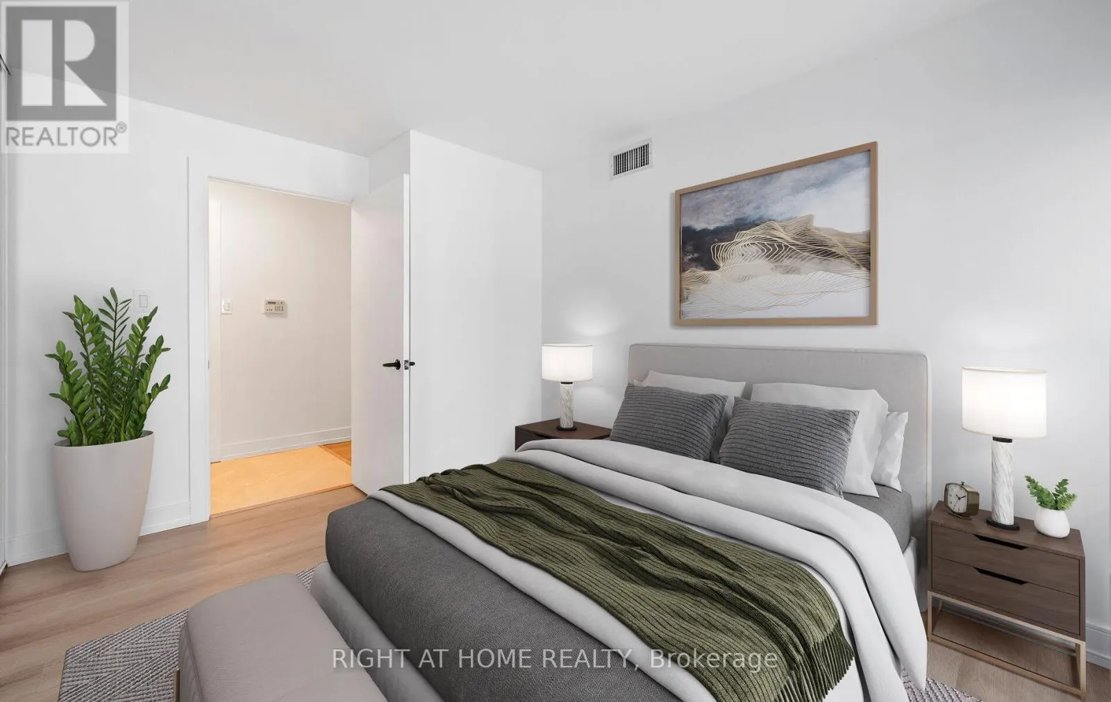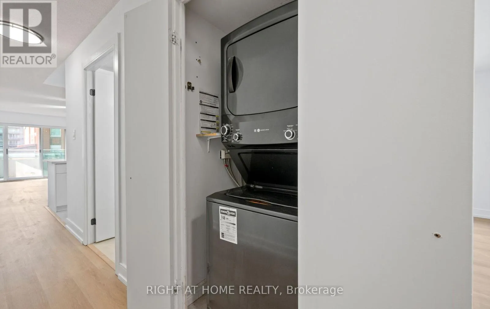 Cross Streets: Bathurst/Queens Quay. ** Directions: east of bathrust on lakeshore. Welcome to Queen's Harbour! This beautifully recently renovated condo is perfectly situated on charming Queen's Quay offering both comfort and functionality. Walk into soaring 9ft ceilings, brand new porcelain tiles and engineered laminate floors.The Spacious primary bedroom features wall-to-wall mirrored closets and a bright window with tons of natural light. Down the hall you will find upgraded bath floors with a spa like vanity, mirror w/built in light and new sliding glass door. Open concept entertainment kitchen showcases brand new porcelain tiles, cabinets, quartz counter tops w/breakfast bar & back splash, deep undermount sink and S/S dishwasher. Direct access to enclosed sun filled den for multi purpose use. Conveniences include ensuite laundry, fridge, stove, dishwasher, parking, locker, hydro & water included in your maintenance fees. A brand new air conditioning unit was installed valued at $4000 and locker brought up to fire code valued at $6000. Lobby was recently upgraded to welcome you and your guests. Ideally located across from the Lakeshore waterfront. Steps to Porter Airlines, Loblaws, scenic parks, recreational trails, restaurants, cafés. TTC transit at your door step and a short drive to the Gardiner. (id:27476)