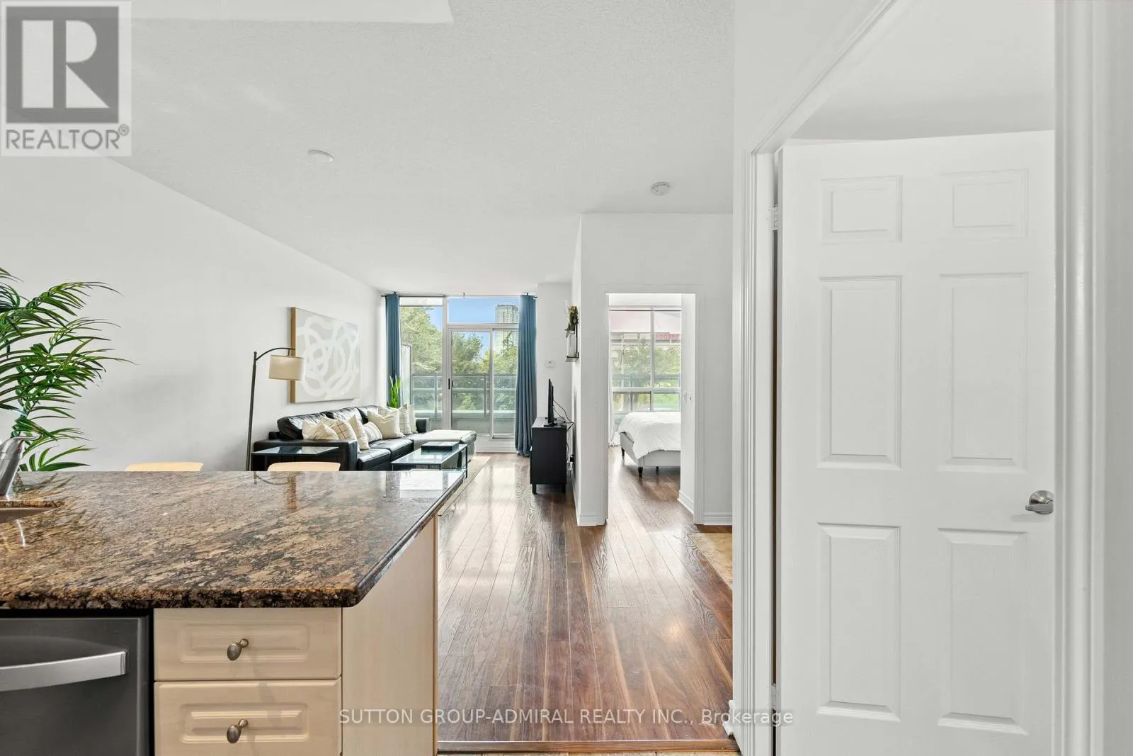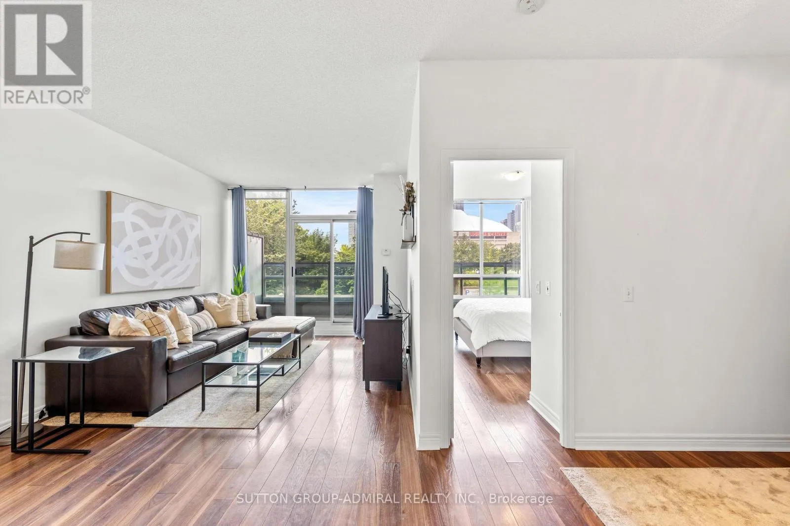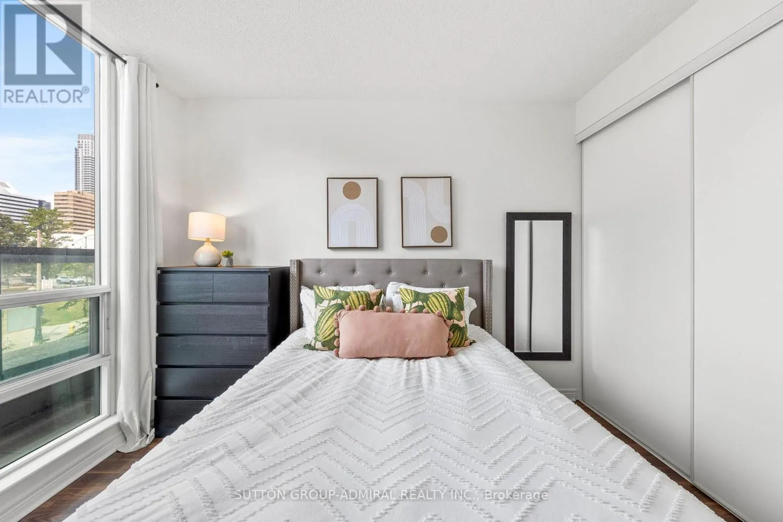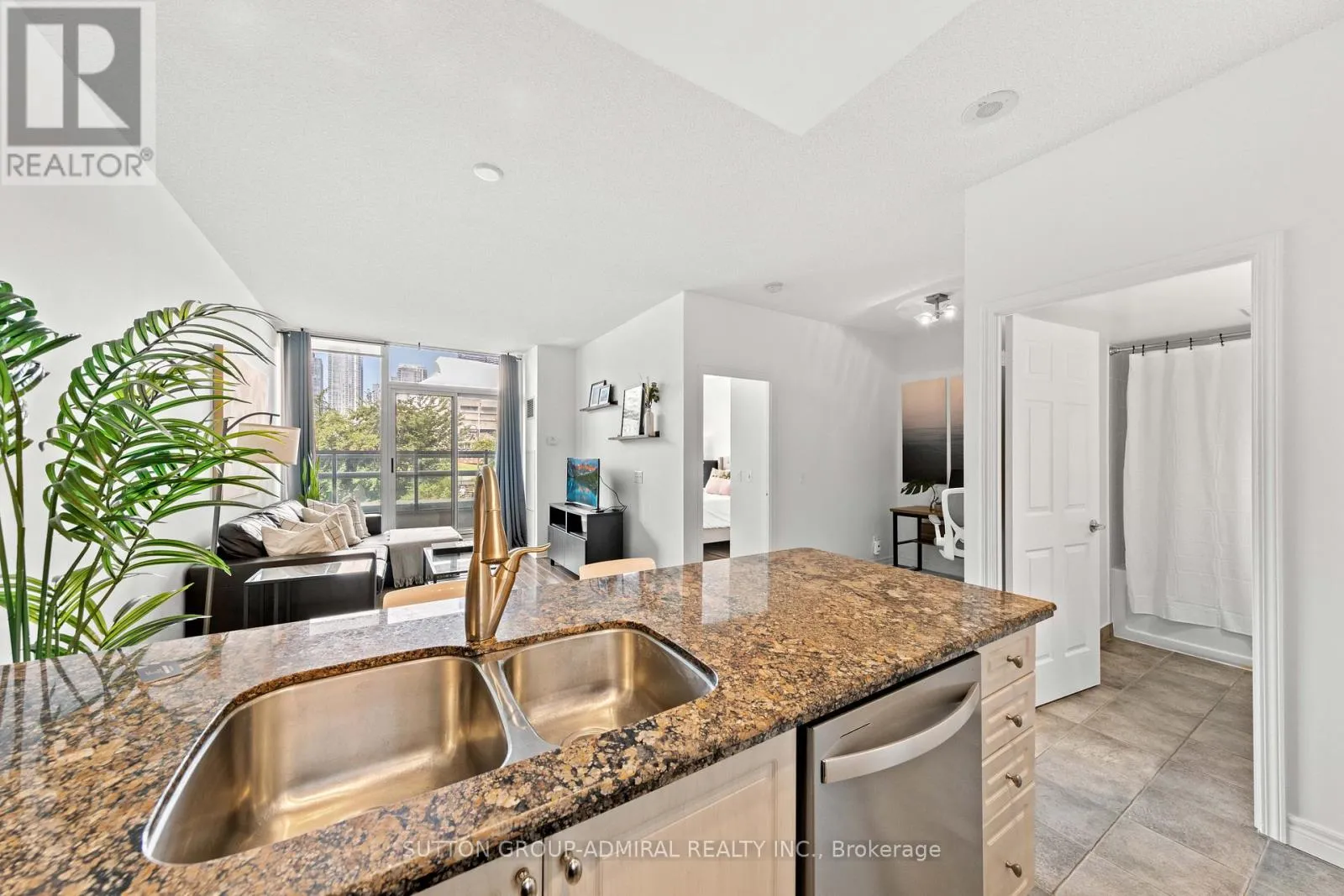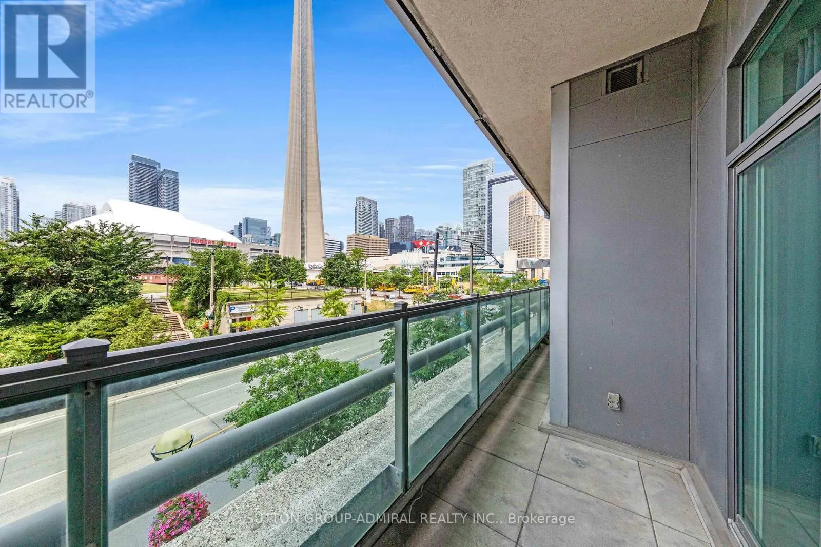 Cross Streets: Bremner / Simcoe. ** Directions: Waze. Welcome Home To Suite 210 At The Coveted Infinity II Condos! This Bright And Spacious 1-Bedroom + Den Offers Unobstructed Westerly Views Of The CN Tower And Rogers Centre. The Well-Designed, Open-Concept Floor Plan Is Perfect For Entertaining, While The Den Provides An Ideal Space To Work From Home. Enjoy A Large Chefs Kitchen Featuring Granite Countertops, Full-Size Stainless-Steel Appliances, And A Breakfast Bar. Upgraded Wide-Plank Laminate Flooring Throughout, Complemented By 9-Foot Ceilings And Floor-To-Ceiling Windows That Open Onto A Full-Length West-Facing Terrace. The Generously Sized Primary Bedroom Includes An Oversized Closet And Large Windows With Blackout Window Coverings. The Updated 4-Piece Bath Includes Custom Shelving For Added Storage. Resort-Style Building Amenities Include Two Outdoor Terraces With BBQ's, An Indoor Pool/Hot Tub, Gym, 24-Hour Concierge, Party Room, And More. Conveniently Located Just Steps To The PATH, Union Station, The Waterfront, And The Financial District, With Easy Access To The Gardiner Expressway For Effortless Commuting. 1 Parking and 1 Locker (id:27476)