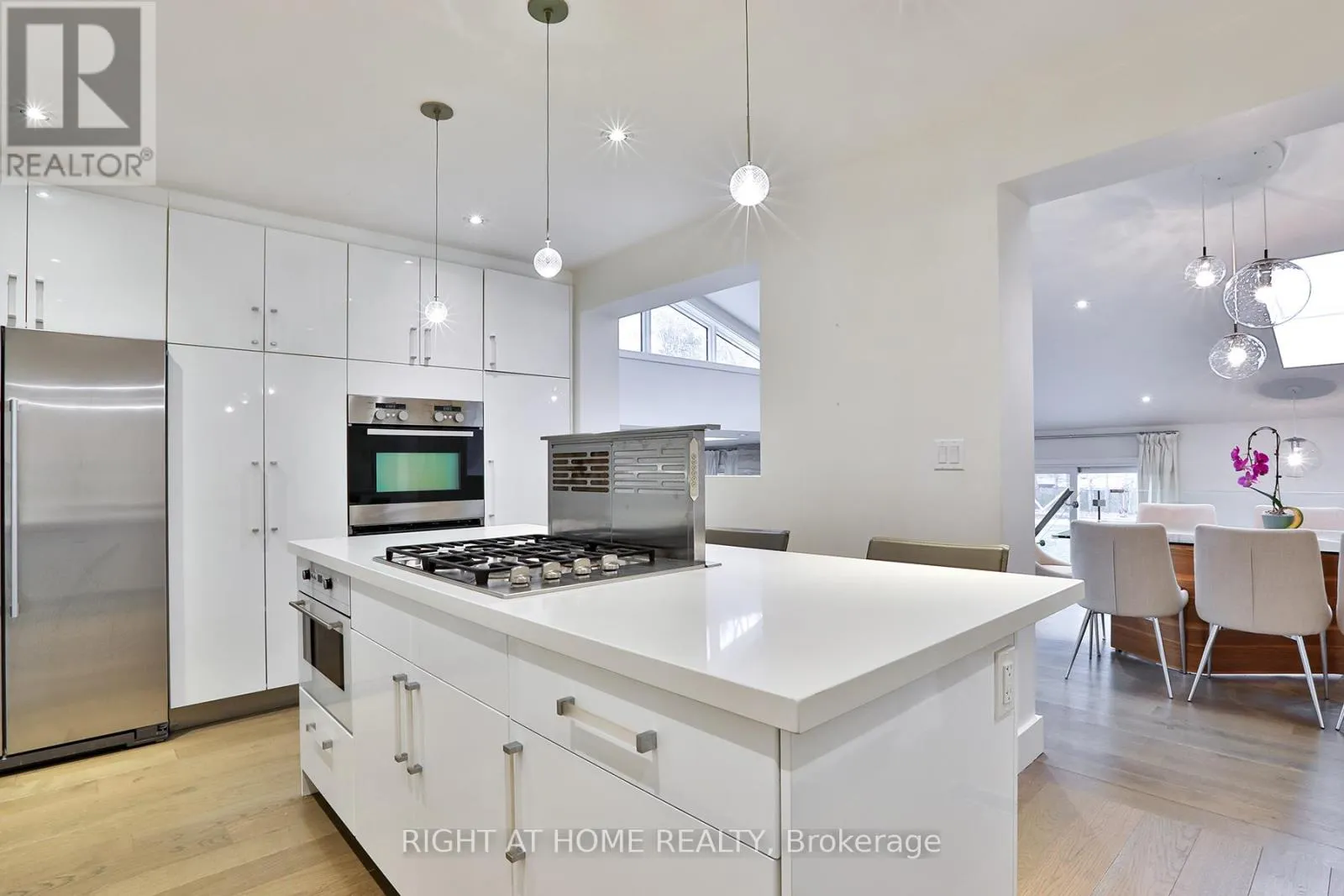 Guildwood Parkway/Morningside Welcome to 34 Scarcliff Gardens, a charming and deceptively spacious three bedroom side split nestled on a quiet street in the heart of Guildwood. Beautifully renovated from top to bottom and thoughtfully designed by Sarah Richardson, this exceptional home was featured on the show Real Potential (see link) and offers a perfect blend of style, comfort, and functionality. Set on an impressive 165 foot deep lot, the property features a beautifully landscaped backyard with plenty of space for children to play, gardening, or hosting summer gatherings. The home also offers parking for up to five cars, providing excellent convenience for families and guests. Inside, the home offers far more than meets the eye, featuring a generous rear addition that expands the living space and creates a stunning open concept great room with a gas fireplace overlooking the backyard. The modern kitchen is designed for both everyday living and entertaining, complete with built in stainless steel appliances and a large centre island that anchors the space. Warm and modern finishes throughout the home create an inviting atmosphere, while the finished basement provides excellent additional living space. The lower level includes a separate bedroom with a three piece bathroom, making it ideal for a nanny or in law suite. The spacious office offers flexibility and could easily serve as a fifth bedroom if desired. Ideally located close to parks, schools, shopping, and everyday conveniences, with easy access to transit and major routes connecting you across Toronto. This is a rare opportunity to move into a beautifully designed, turnkey home in one of Guildwood's most welcoming neighbourhoods. (id:27476)