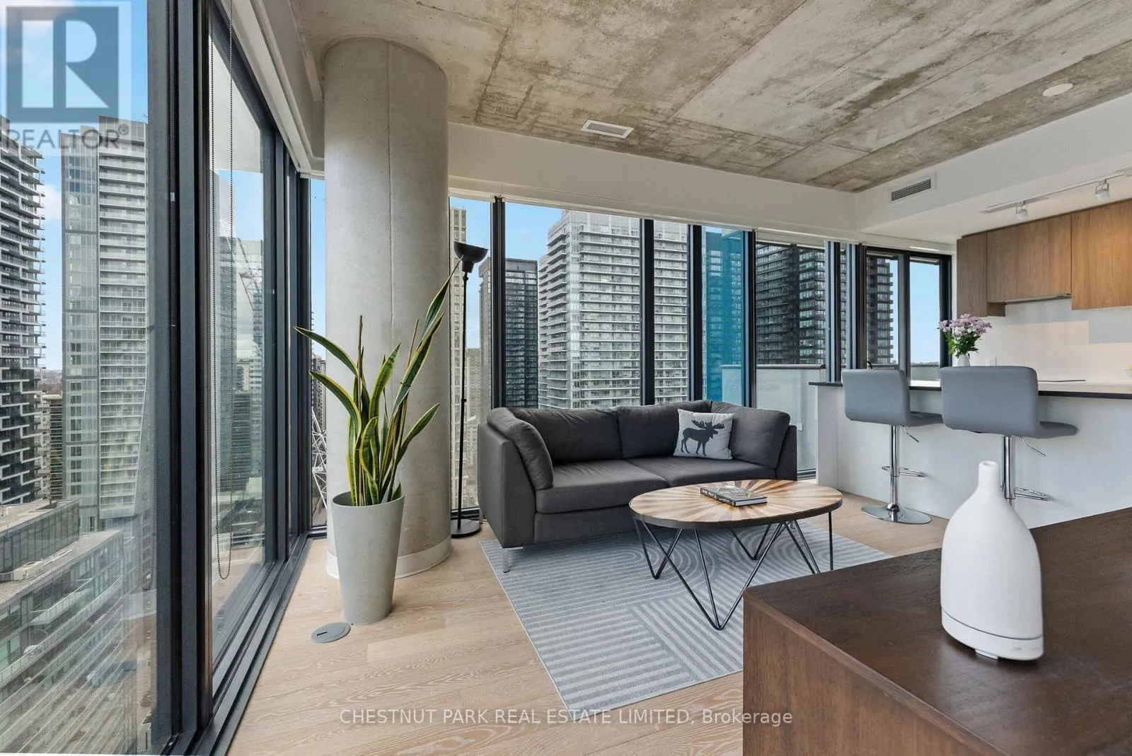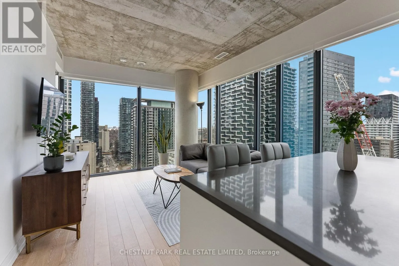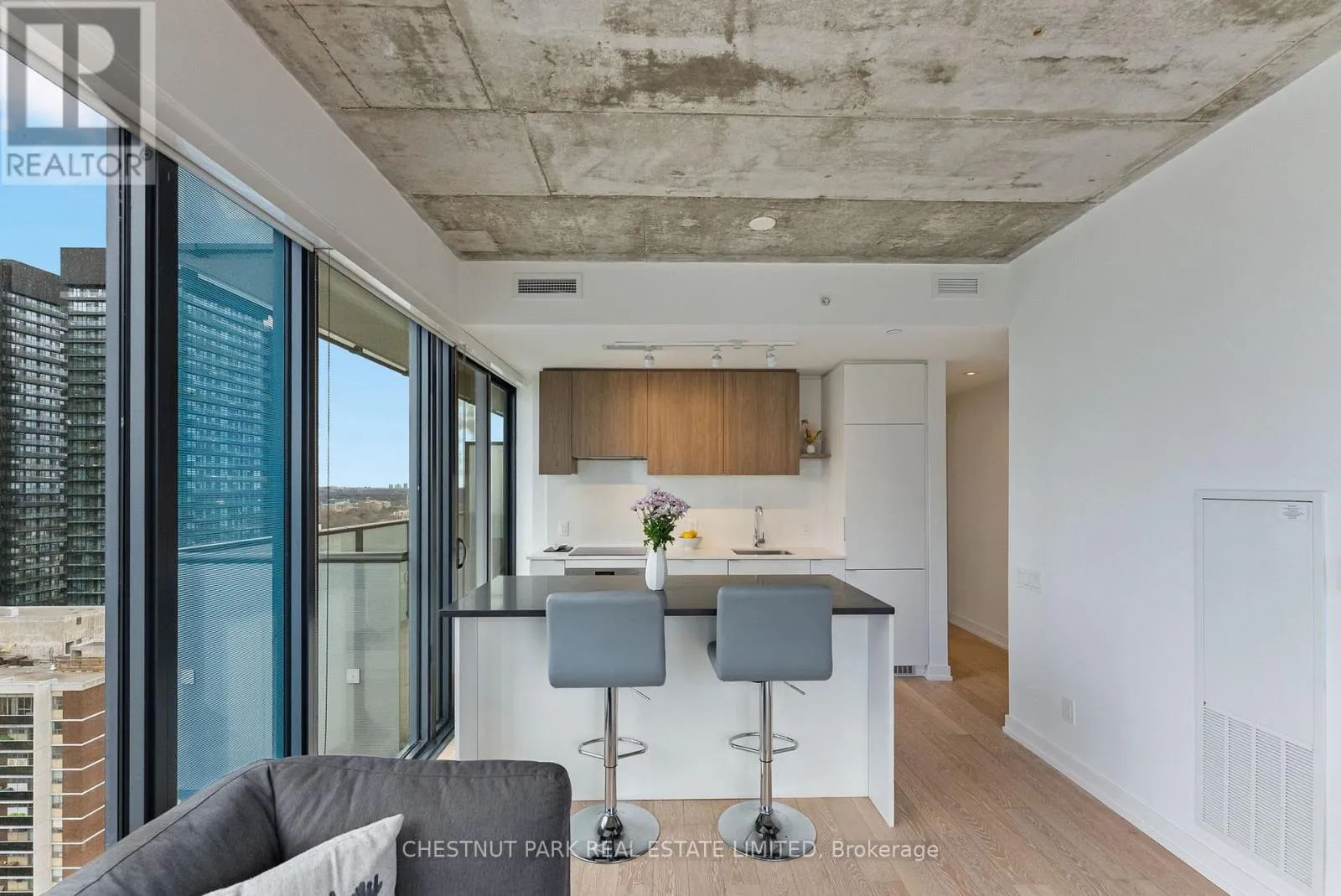 Mt Pleasant / Eglinton Suite 2303 at 161 Roehampton Avenue presents an exceptional opportunity to own a truly elevated corner residence in the heart of Yonge and Eglinton; one of Midtown Toronto's most dynamic and well-connected neighbourhoods. Developed by the acclaimed Freed Developments in 2020, the building is surrounded by stately multi-million dollar homes and set within a mature, highly desirable community known for its outstanding schools, including Eglinton Junior Public School, Hodgson Middle School, and North Toronto Collegiate Institute. The new Eglinton Crosstown LRT is steps from your door, Yonge-Eglinton TTC Station is just minutes away, and downtown Toronto is a short 15-minute subway ride away. Suite 2303 is a meticulously maintained corner unit offered by its original owner, boasting over $25,000 in developer and custom upgrades. Spanning 681 square feet of interior space plus an 80 square foot open balcony, the suite features floor-to-ceiling glass on two walls, exposed concrete ceilings, and unobstructed north and west exposures delivering abundant natural light and breathtaking sunset views. 5" hardwood flooring, a custom-built island, blackout roller blinds in both bedrooms, and 3% shade rollers throughout the living areas complete the finishes. Both bedrooms are true exterior rooms, and the primary features a four-piece ensuite. Building amenities include The Cave games room with golf simulator, fitness centre, eighth-floor outdoor pool, spa with sauna, and two rentable guest suites. One parking space and one storage locker included. This is a rare opportunity to own a beautifully upgraded corner suite with sunset views in one of Midtown Toronto's most established communities. (id:27476)
