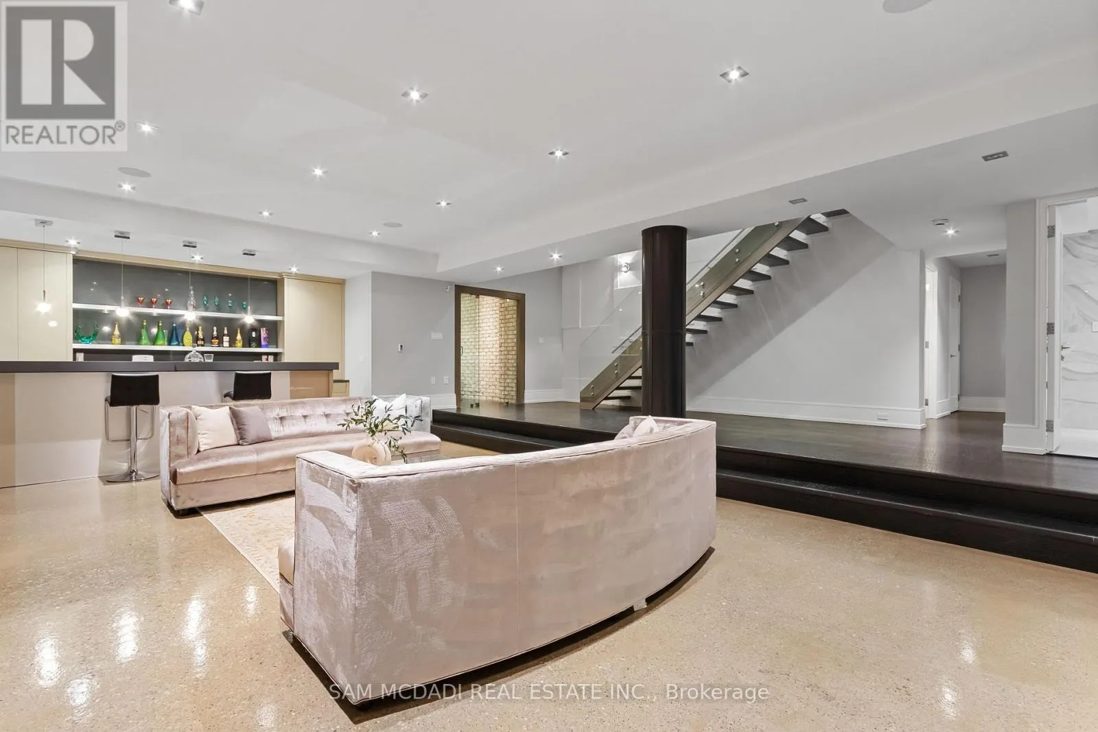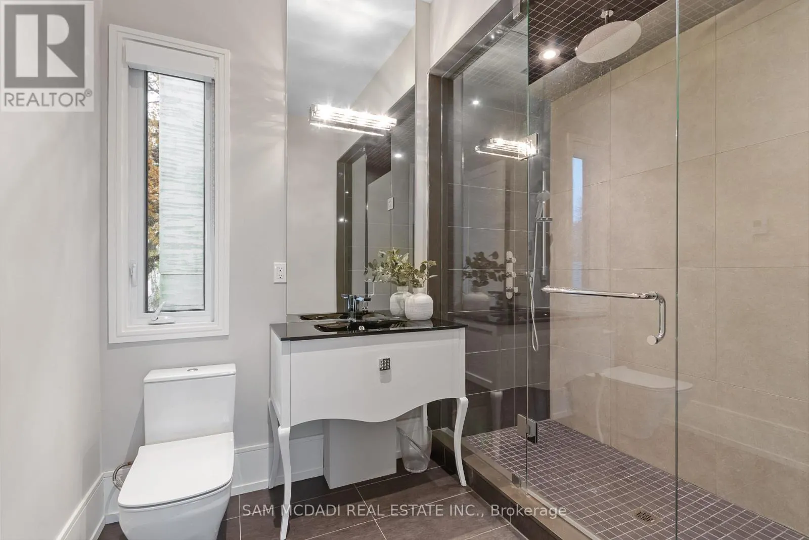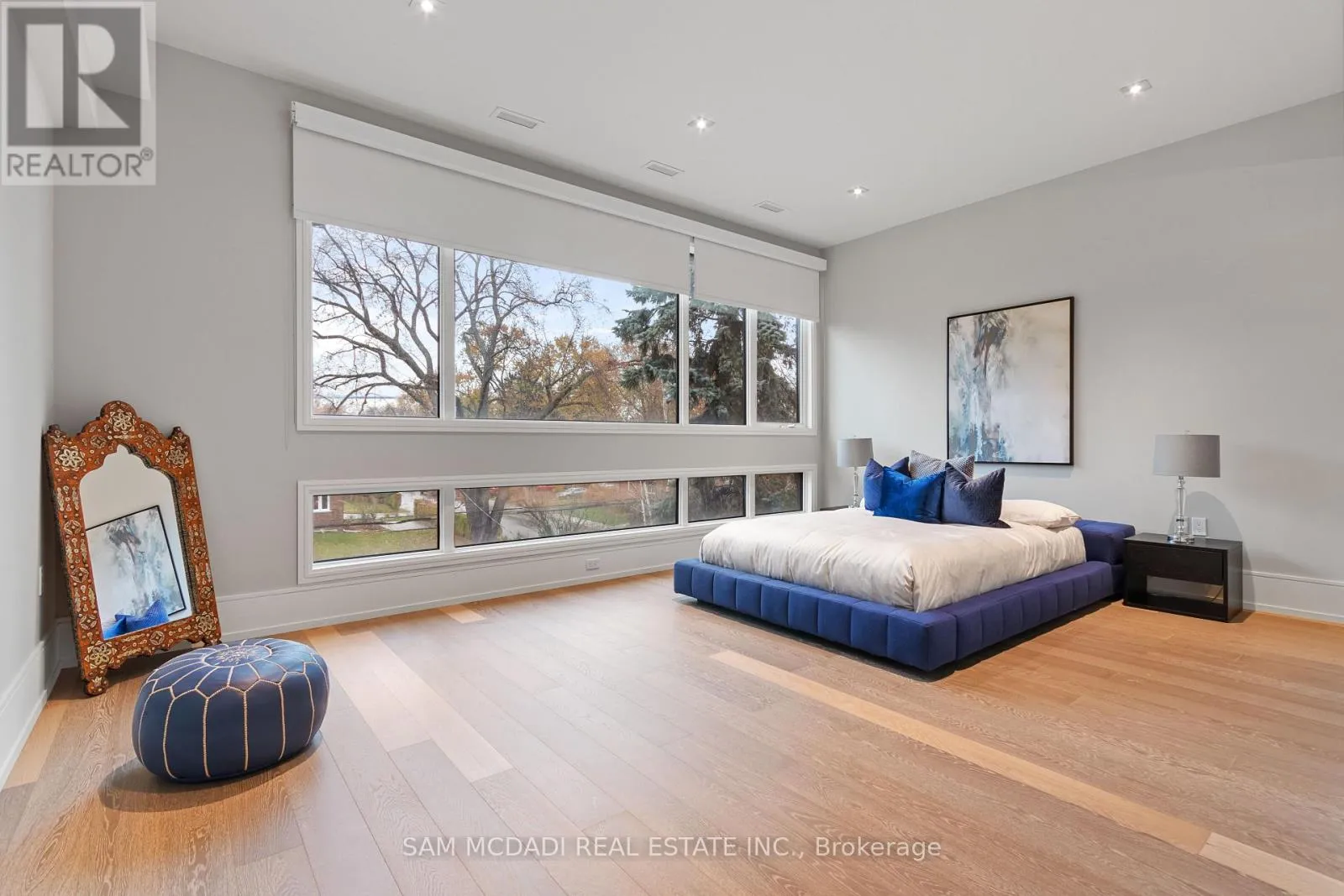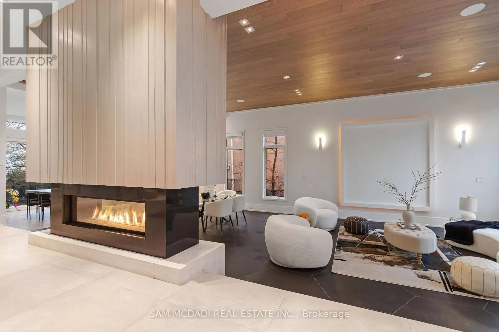 Cross Streets: Thirty First St / Lake Promenade. ** Directions: Head south on Thirsty first St toward Lake Promenade, then turn left onto Lake Promenade. Set along South Etobicoke's prestigious lakefront corridor, this modern estate offers over 6,200 SF of refined interiors paired with resort-style amenities seldom available. Bold in presence and uncompromising in design, it sits behind mature trees with an architectural profile that frames uninterrupted Lake Ontario views. A dramatic open-to-above foyer introduces the home, featuring a floating glass staircase, overhead skylights, and a direct views of the water. The main level unfolds as a sequence of sophisticated living spaces defined by warm wood ceilings, gallery-like walls, and a sculptural double-sided linear fireplace. Near floor-to-ceiling windows wrap the home, inviting natural light and capturing the shoreline from every angle. The chef's kitchen delivers a magazine-worthy experience with Wolf and Sub-Zero appliances, bespoke cabinetry, a custom backsplash, and a striking central island. Adjacent living and dining zones create a fluid setting for elevated entertaining or intimate evenings. Above, 4 serene bedroom suites each offer a walk-in closet and ensuite. The lakefront primary retreat features a boutique dressing room, spa-calibre ensuite with heated floors and a freestanding tub overlooking the water, plus a private balcony for quiet reflections. The lower level extends the home's resort-like character with a recreation lounge, bar, gym, sauna, steam room, wine cellar, and an additional guest suite, opening seamlessly to the tiered backyard. Outdoors, multiple terraces, mature landscaping, a heated pool, a hot tub, and sweeping lake vistas create a breathtaking environment for year-round enjoyment. Additional comforts include a heated driveway, architectural millwork, integrated lighting, and a layout designed for both luxury living and effortless hosting. Moments from waterfront trails, marinas, golf, and downtown Toronto, this estate offers a rare opportunity to own an impeccably crafted lakefront home. (id:27476)