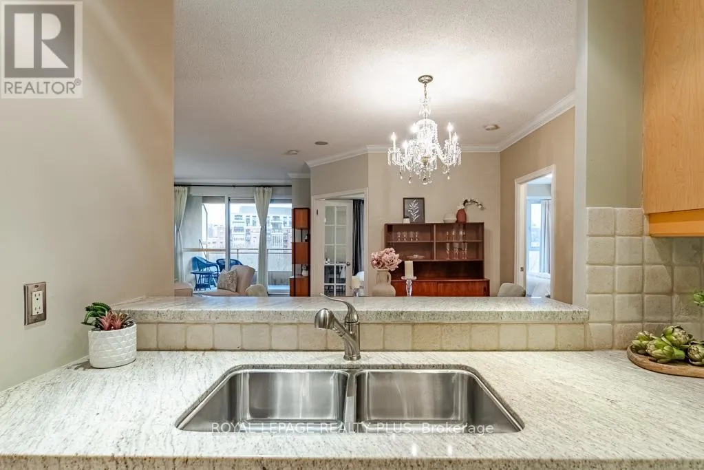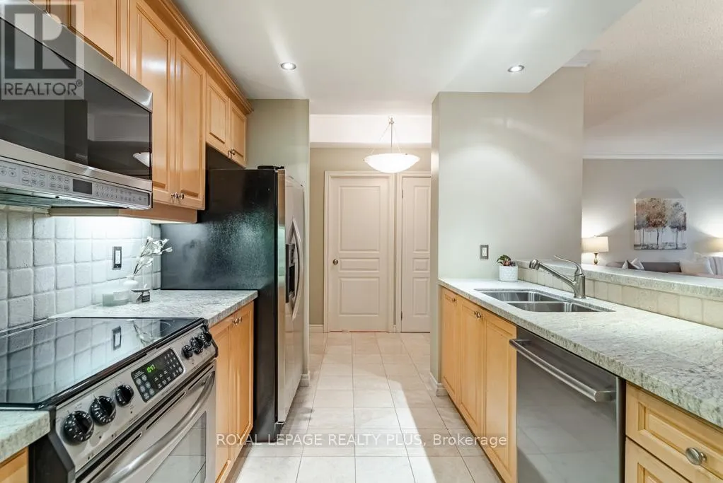 Bloor / Old Mill Rd Welcome Home to The Terraces of The Old Mill! This Highly Coveted Building is located steps to the Historic Old Mill Restaurant and Spa. Features a 2 bedroom, 2 Bath unit that has unobstructed North Views of the Park and Ravine. Featuring 9 ft ceilings, An Open Concept Living Room with a walkout, A great sized Dining Room with Crown Moulding and with plenty of room for Family Functions! The Chef's Kitchen Overlooks the dining room with granite countertops and stainless appliances. Hardwood Floors throughout and Marble in the Kitchen. A Must See Unit for all Discriminating Buyers! Amenities included an Indoor Pool, Gym, Party Room, Roof Top Garden and 24 hr concierage. STEPS TO THE HUMBER RIVER AND MARTIN GOODMAN TRAIL. PLENTY OF WALKING TRAILS surround. (id:27476)