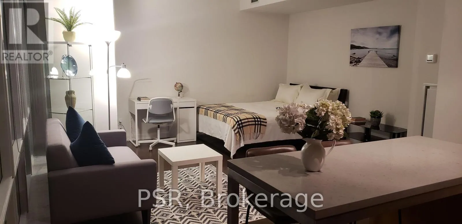 King St W / John St Welcome to Festival Tower to 80 John Street - an iconic residence at the prestigious corner of King & John in the heart of Toronto's vibrant Entertainment District. This bright and beautifully furnished studio suite offers just under 500 square feet of thoughtfully designed living space, complemented by a private south-facing balcony showcasing dynamic downtown views. Floor-to-ceiling windows fill the suite with natural light, creating a warm and inviting atmosphere throughout. The intelligently designed layout features a modern kitchen with built-in appliances and a convenient breakfast bar, generous storage, and a versatile living area that comfortable accommodates both lounge and sleeping spaces. Offered fully furnished, this suite is perfectly suited for professionals, investors, or anyone seeking a sophisticated urban residence in one of Toronto's most desirable buildings. Residents enjoy access to exceptional amenities including a state-of-the-art fitness centre, indoor pool, sauna, theatre room, rooftop terrace, and 24-hour concierge service. Located steps from the TTC, world-class restaurants, theatres, shopping, and nightlife, Festival Tower offers the ultimate downtown lifestyle with everything at your doorstep. Stylish. Sophisticated. Perfectly positioned in the heart of downtown Toronto. NOTE - a locker is included for added convenience. The landlord is open to longer-term leases (18 months to 2 years). Brand new hardwood flooring will be installed prior to occupancy. (id:27476)