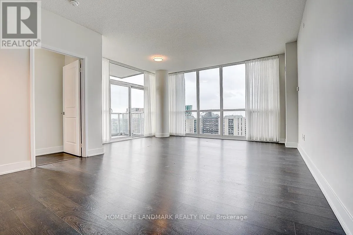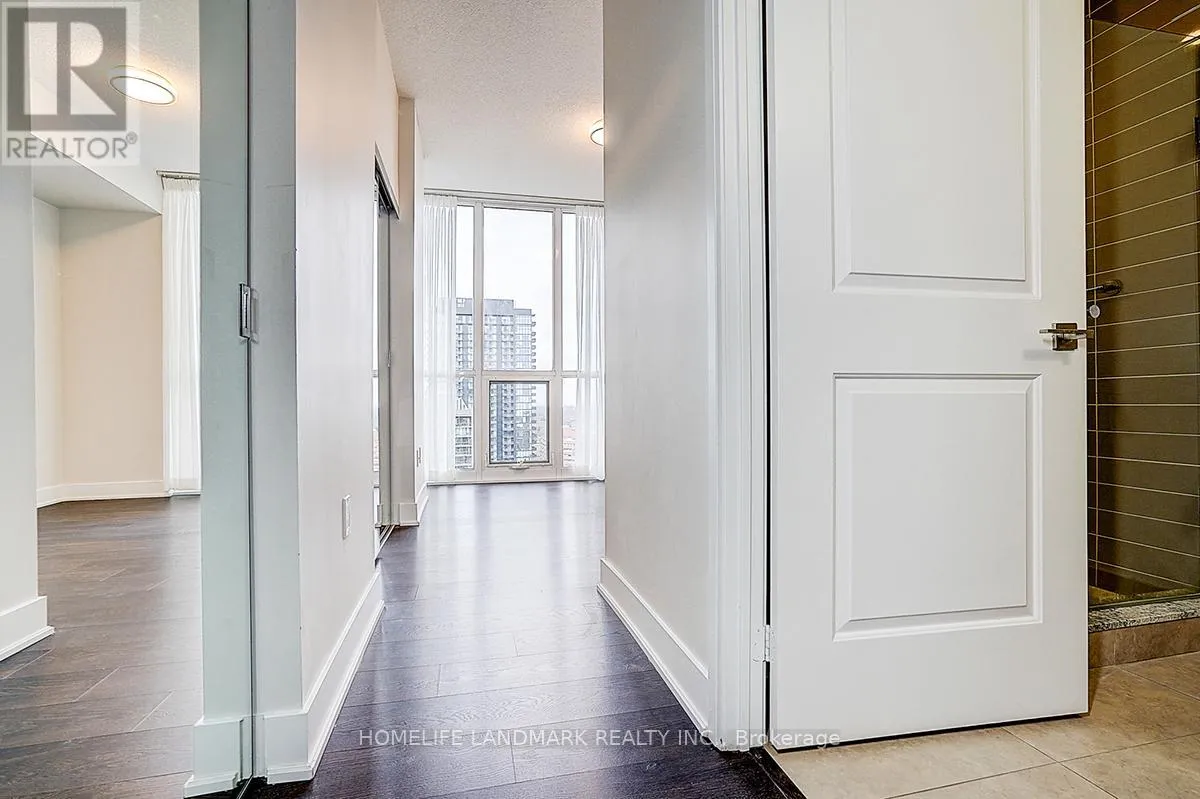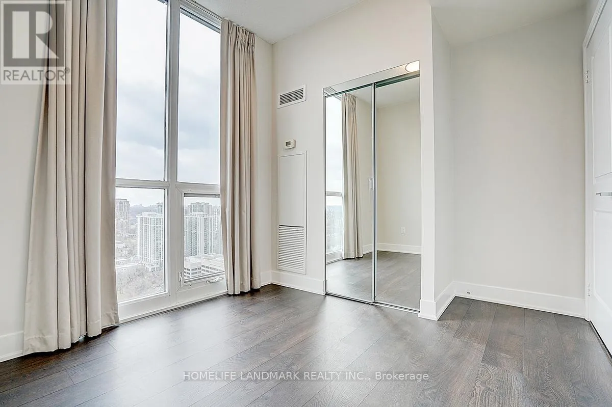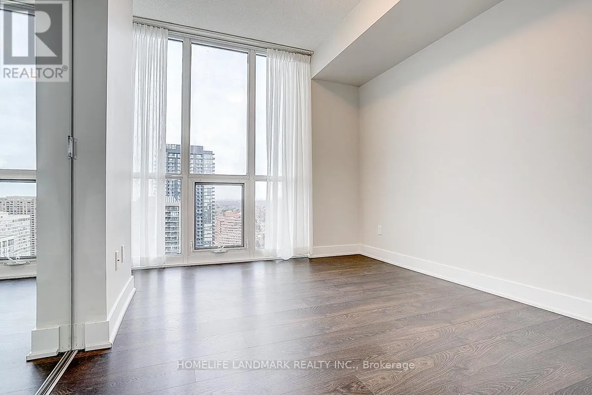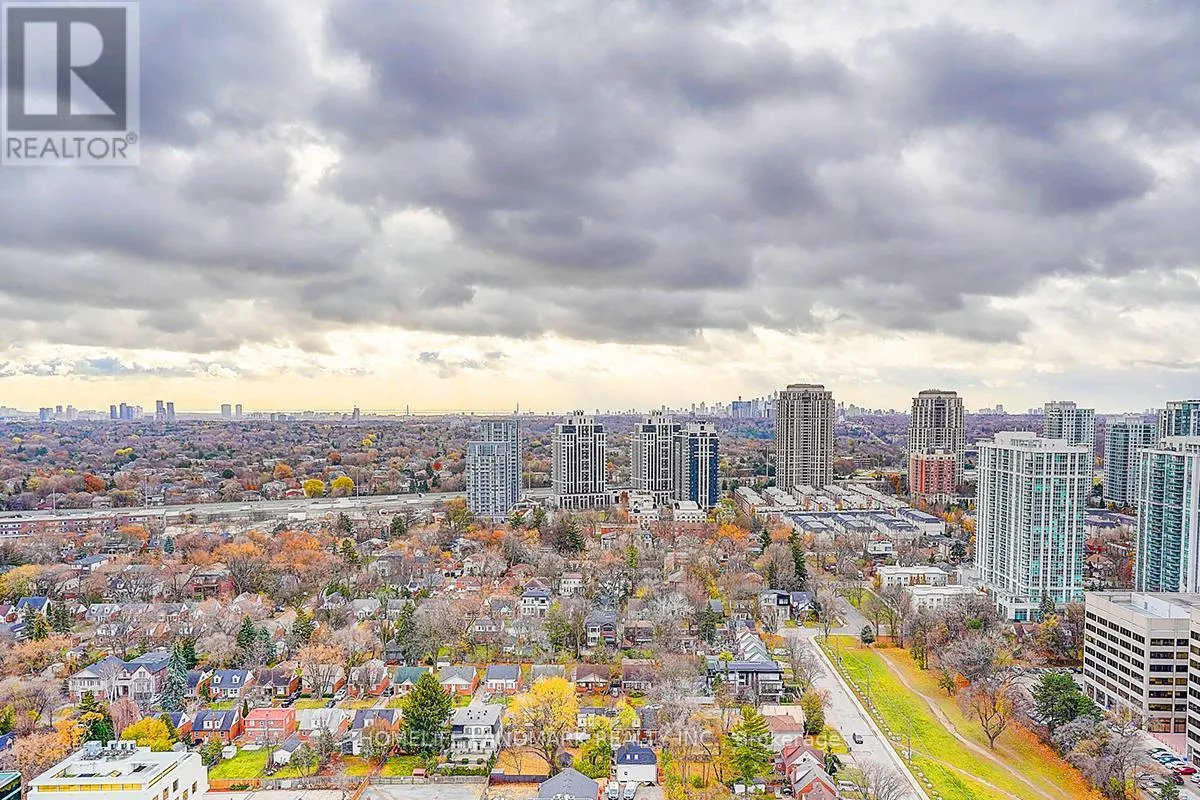 Yonge St / Sheppard Ave E Experience luxury living in this spectacular southwest corner unit at Minto 88, one of North York's most sought-after residences. Showcasing unobstructed skyline views through floor-to-ceiling windows, this sun-filled home offers over 1,020 sq.ft. of elegant living space (968 sq.ft. interior + 53 sq.ft. balcony), featuring 2 bedrooms, 2 full baths, and a spacious den ideal as a 3rd bedroom or stylish home office. With 9' ceilings, a modern open-concept layout, a gourmet kitchen with granite countertops, a serene primary suite with 3-pc ensuite, and premium builder upgrades throughout, the suite blends comfort with sophistication. Built by Minto with LEED Gold Certification, the building delivers exceptional quality, energy efficiency, and low maintenance fees. Enjoy top-tier amenities including a 24-hour concierge, state-of-the-art fitness centre, rooftop garden, and ample paid visitor parking. Perfectly located just steps to Sheppard Subway, TTC, Hwy 401, parks, top schools, dining, and shopping-this is luxury urban living at its best. (id:27476)
