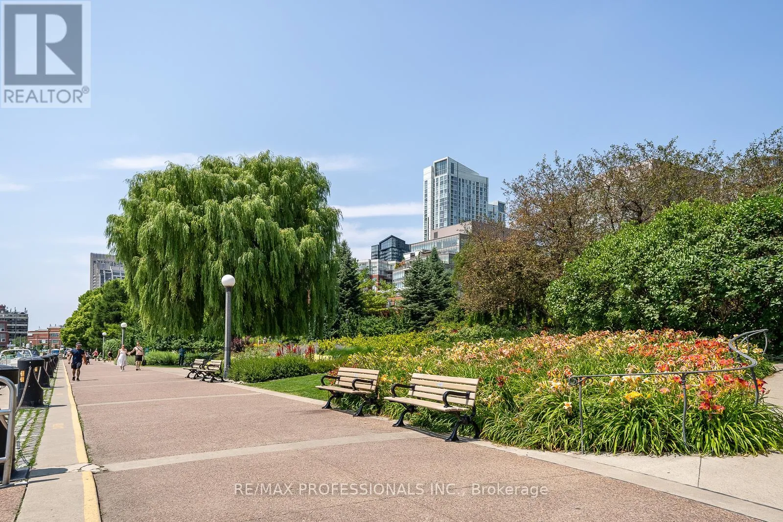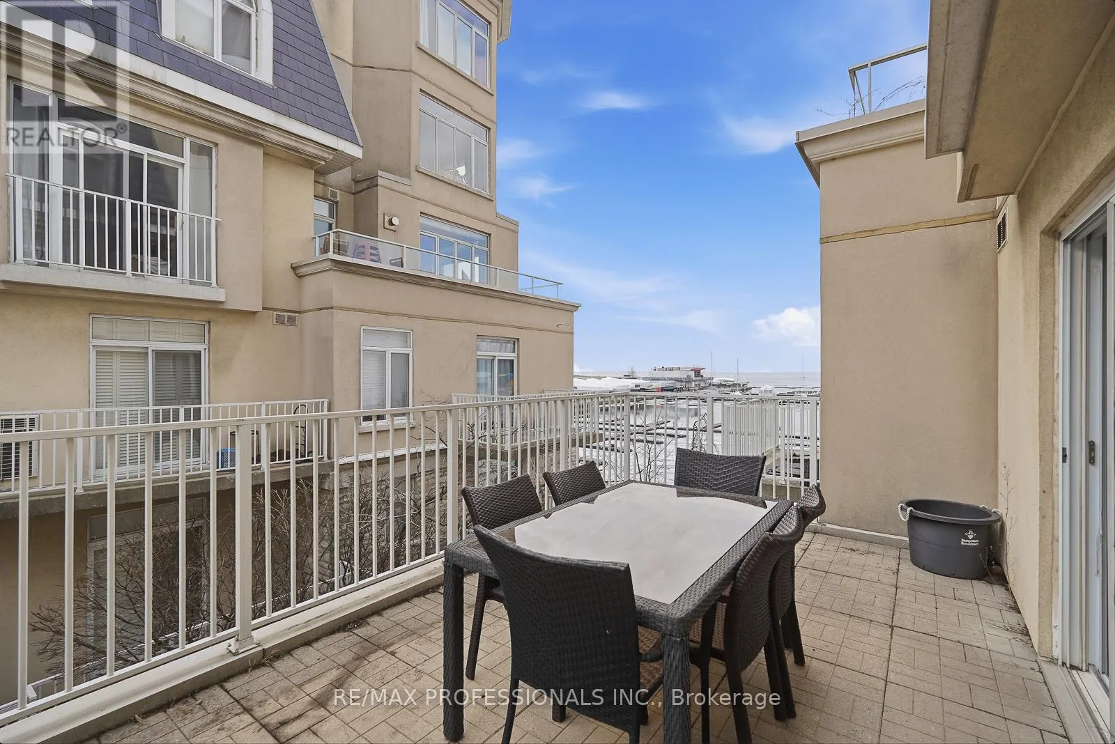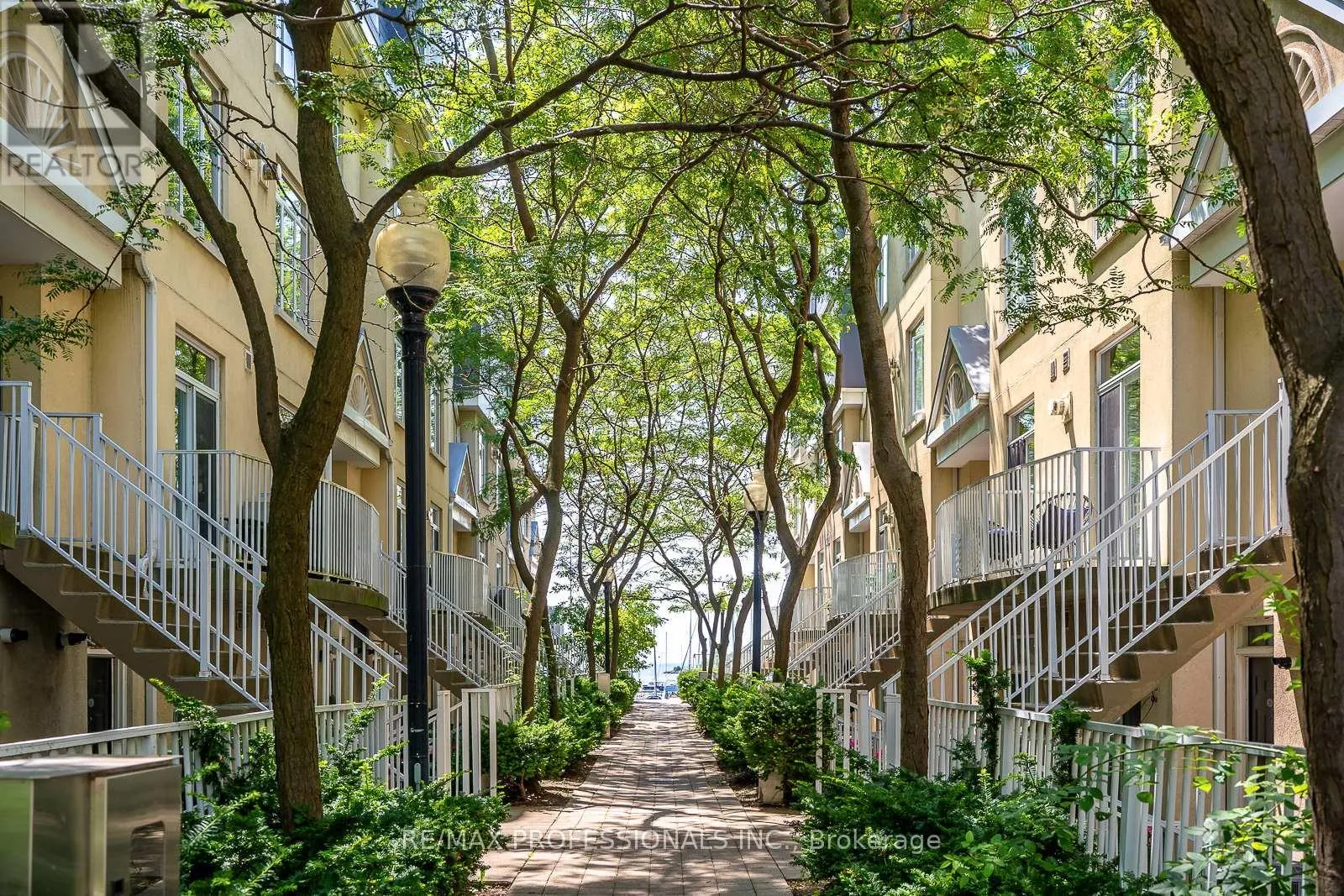 Queens Quay/Bathurst Live, work, and play by the water at South Beach Marina Townhomes! Welcome to this renovated, sun-drenched end-unit overlooking the marina in one of Toronto's most coveted waterfront communities. As one of the closest units to the water, this home offers both front and back private terraces with direct marina views. This beautifully updated 2 Bedroom, 1 Bathroom, one-level condo townhome showcases brand-new European flooring throughout, fresh paint, curated light fixtures, and updated kitchen hardware, creating a refined and move-in-ready space. The bright, open-concept layout seamlessly blends style and functionality, featuring a spacious kitchen designed for effortless everyday living and elegant entertaining. Rarely offered, this home boasts approximately 1000 square feet of indoor and outdoor living space and just over 300 square feet of private outdoor space across two large terraces-perfect for relaxing or hosting! The natural gas BBQ hookup is an amazing feature for those who love to cook and dine outdoors. Whether hosting sunset dinners or enjoying quiet mornings by the water, this combination of indoor and outdoor living is hard to find at such an attractive price. Additional conveniences include underground parking, a large walk-in closet, and ensuite laundry. Wake up to stunning water views and embrace an active lifestyle with the Waterfront Trail right outside your door, offering endless outdoor activities amidst parks, marinas, and breathtaking lake views. The location is unparalleled: steps to yacht clubs, Loblaws, LCBO, Farm Boy, the Financial District, and Billy Bishop Airport, plus direct LRT access to Union Station. (id:27476)