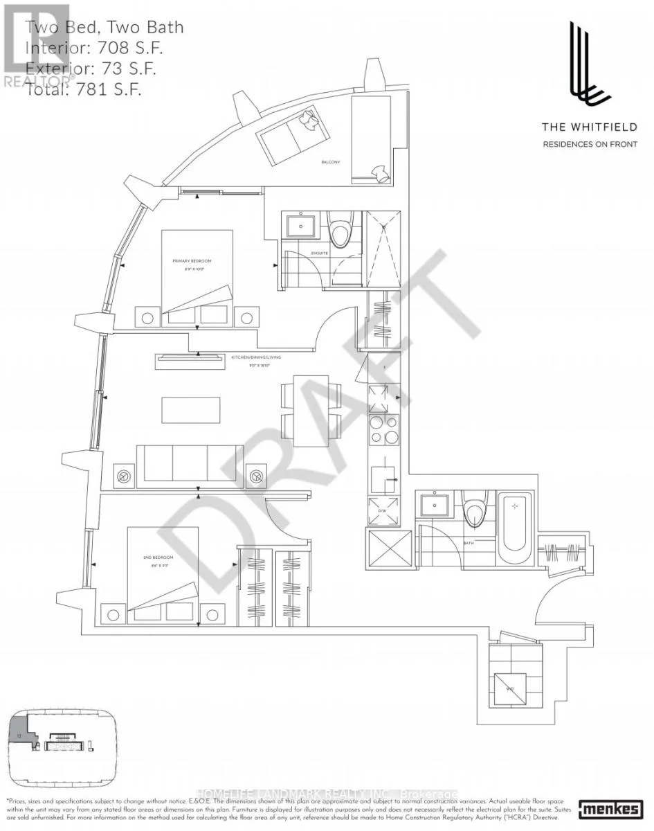 Front St. E. & Lower Sherbourne St. Brand New 2 Bed, 2 Bath suite at The Whitfield by Menkes at 180 Front St E. Bright SW-facing unit w/ functional split-bedrm layout offering great privacy. 2nd bedrm is fully enclosed w/ window & closet. Modern open-concept living, flr-to-ceiling windows, laminate flrs thru-out & sleek kitchen w/ built-in appls. Prime downtown loc steps to St. Lawrence Mkt, TTC, Financial District, waterfront, restaurants & shops. Bldg amenities incl concierge, gym w/ yoga rm, business/co-working lounge, games rm, kids playrm & large outdoor terrace w/ BBQ (id:27476)