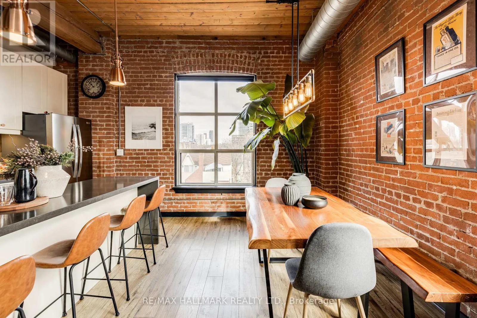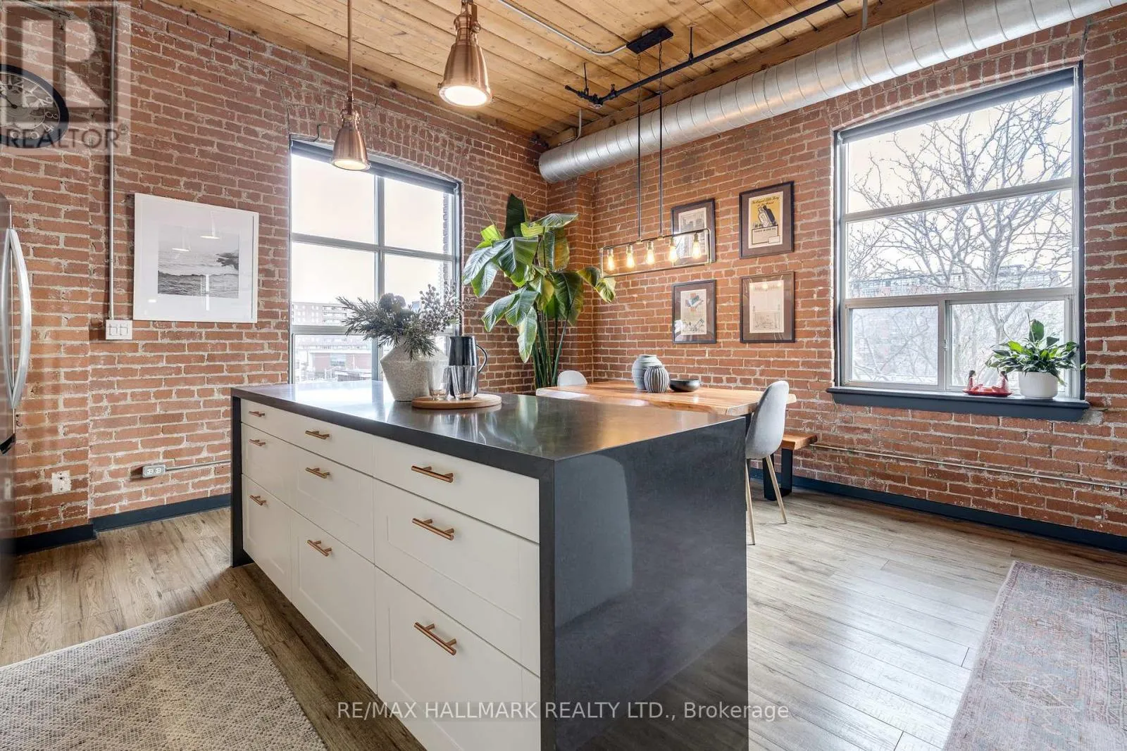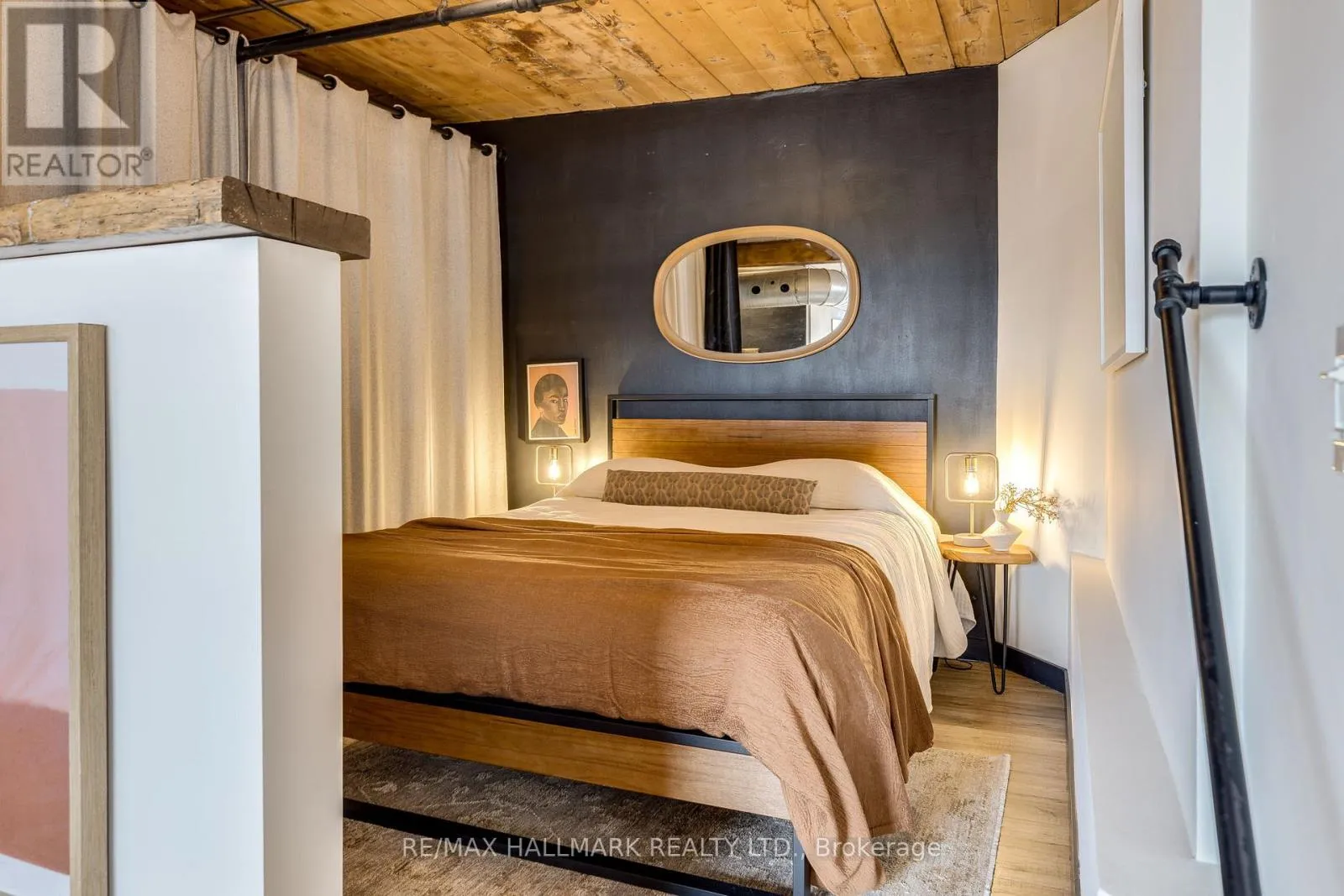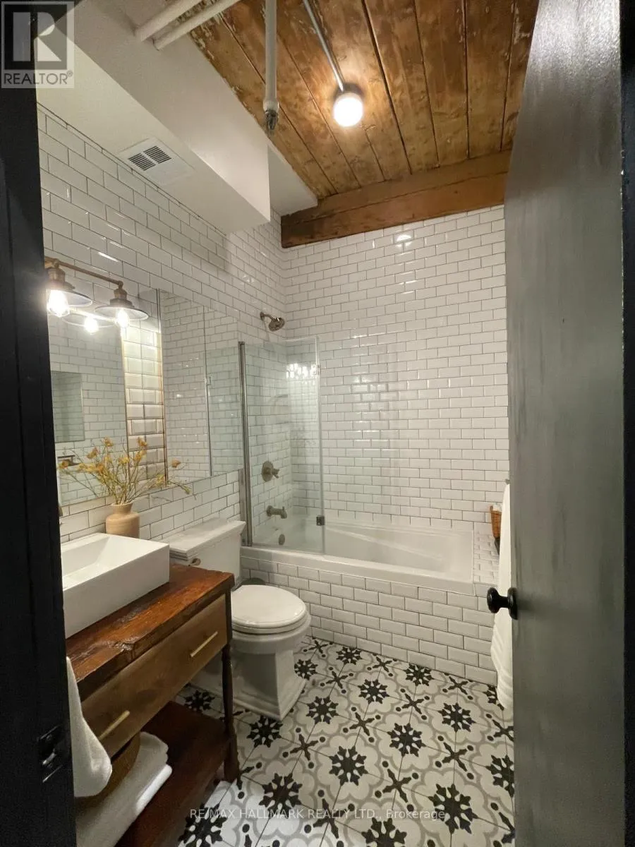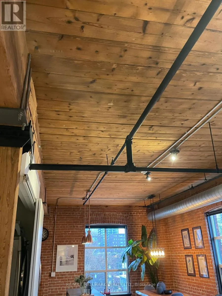 Cross Streets: Queen Street East/Sackville. ** Directions: Lockbox at East Side Entry (Off Sackville Street). Welcome to the Knitting Mill Lofts - a rare penthouse corner residence in a true hard loft conversion. Suite 406 is one-of-a-kind: fully renovated throughout with designer finishes, and as a top-floor, corner unit, it offers multiple exposures and exceptional natural light - a rarity in authentic loft living. Inside, soaring 10.5' ceilings, exposed brick, original beams, and oversized windows define the space. The interior is fully renovated throughout, balancing industrial character with clean, modern finishes. The custom kitchen features a large island, quartz countertops, ample storage, and striking copper fixtures, while the reimagined bathroom - complete with a reclaimed wood vanity - perfectly blends modern design with authentic loft character. The layout of this unit is also unique - an open-concept design that feels both functional and intentional, with a cleverly designed raised bedroom area (complete with built-in storage below), a large custom closet, and blackout curtains for added privacy. Ideal for entertaining, everyday living, or working from home. Low monthly fees make for easy, low-maintenance living, with convenient elevator access from Sackville Street. Set along Queen Street East, you're steps to Corktown, St. Lawrence Market, the Financial District, and some of the city's best cafés, restaurants, parks, and trails. The 501 streetcar is at your doorstep, with the future Ontario Line nearby. (id:27476)