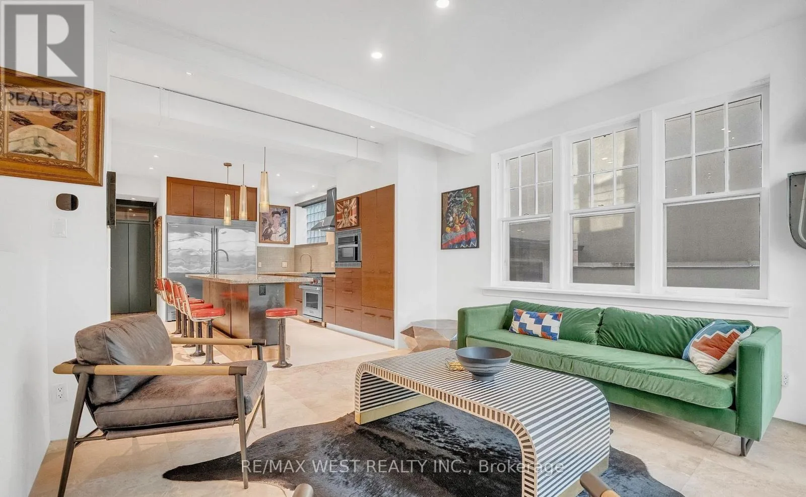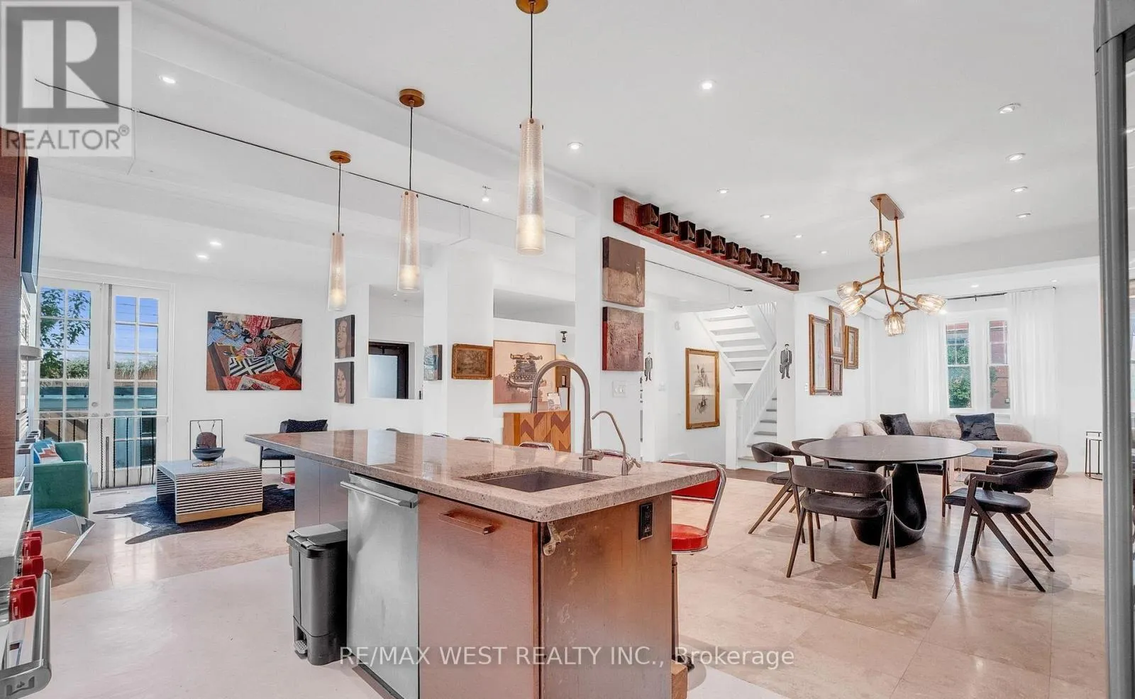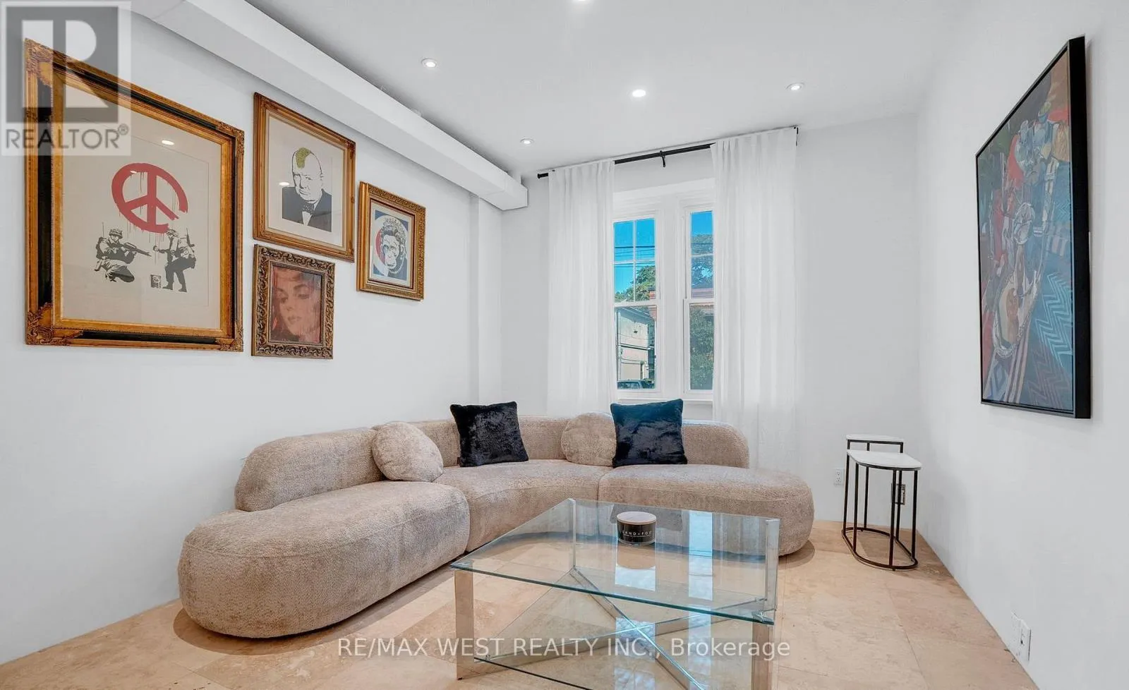 Argyle/Ossington A Rare Opportunity in the Heart of the Ossington District. Step inside this 4,500+ sq. ft. architectural treasure, where historic character meets modern luxury. Built in 1933 as a community centre, 53 Argyle Street has been reimagined into a one-of-a-kind residence with commercial + residential zoning - ideal for live/work flexibility or a creative entrepreneurial vision. Located in the Soho of Toronto - Vogue's pick as the World's 2nd Hippest District - you're just steps from Trinity Bellwoods Park, Queen West, Ossington's vibrant café culture, art galleries, and award-winning restaurants. The main floor impresses with open-concept living and dining, a chef's kitchen with granite counters and extra-large fridge, sun-filled atrium and office space. Heated floors and skylights add comfort and light throughout. The second floor features a serene primary suite with walk-in closet, ensuite spa (Roman bath, bidet, sauna), plus three additional bedrooms and a luxe five-piece bath. Upstairs, discover a third-floor retreat - two bedrooms linked by a secret passage that kids will love it, and a copper soaking tub. The finished basement offers 8'5" ceilings, a second kitchen, bathroom, and elevator access - perfect for an artist's studio, guest suite, or private office. Step outside to a private courtyard oasis that you can turn into an entertainer's dream. Additional features include marble and hardwood finishes, central air, alarm system, and a 12,000-watt generator. This property is more than a home - it's a lifestyle, a statement, and an investment in Toronto's most coveted urban playground. Art and furniture available for purchase. (id:27476)