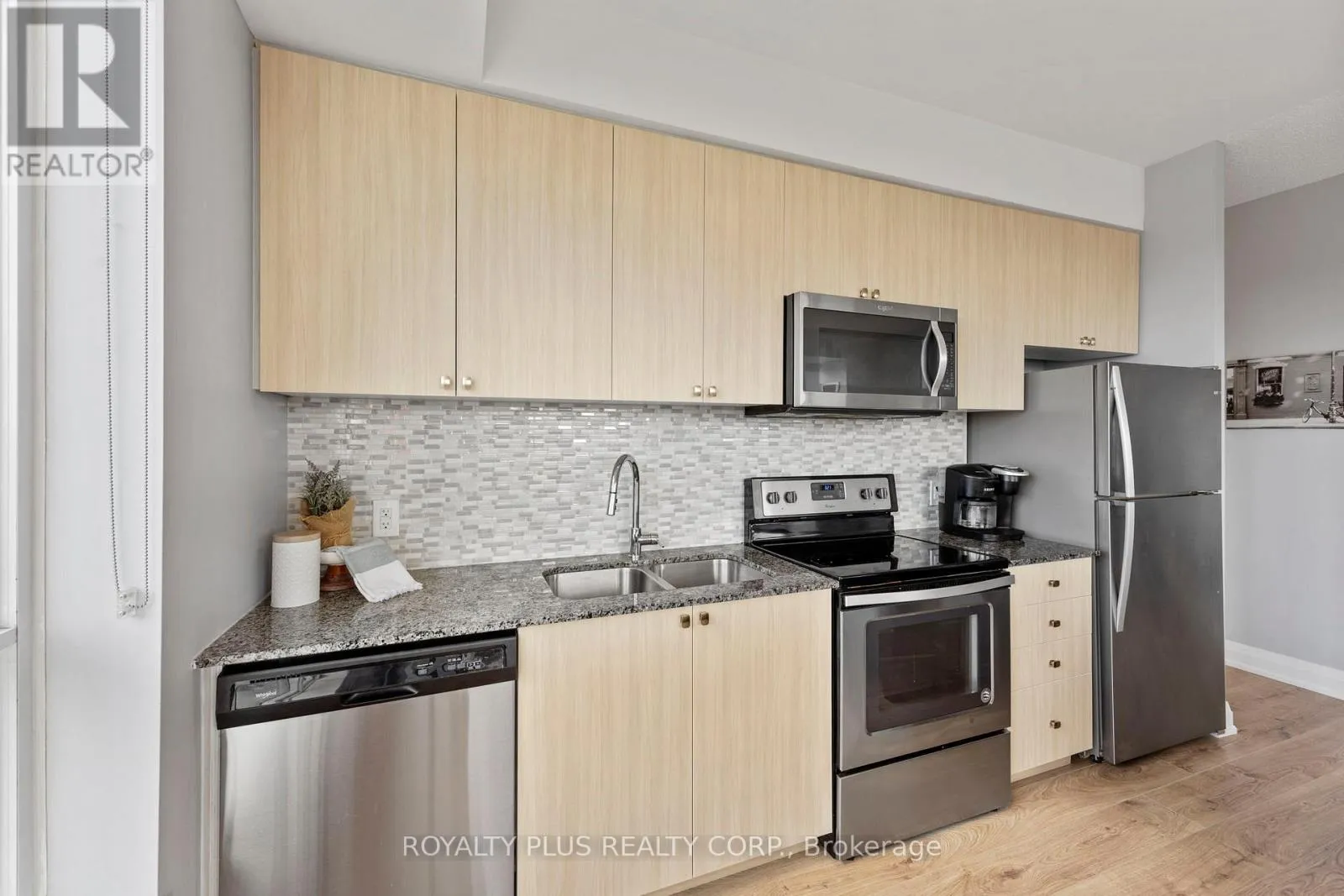 Cross Streets: KEELE & WILSON. ** Directions: Keele St/ Wilson Ave. Bright And Airy 956 Sq. Ft. Corner Unit With Soaring 10 Ft. Ceilings, Expansive Wrap-Around Terrace, And Stunning South-East Views. Primary Bedroom With En-Suite Bath And Ample Closet Space. Second Bedroom Features A Murphy Bed And Large Closets. Sun-Filled Open-Concept Living And Dining Area Leads To The Terrace, Showcasing Beautiful Natural Light Throughout. Modern Kitchen With Updated Cabinets And New Floors.Thoughtful Split Layout With Closed-Door Den, Concealed Laundry, And Bonus Extra-Wide Parking Spot.Unbeatable Location In The Heart Of North York! Steps To Parks, Schools, Shopping, Public Transit, And Minutes To Humber River Hospital, York University, Yorkdale Mall, Sheridan Mall, Metro, Groceries, And Major Highways 401/400/Allen. Light-Filled, Modern, And Move-In Ready! A Must See! (id:27476)