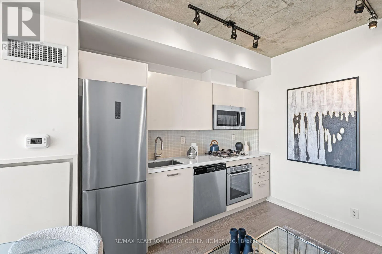 Cross Streets: Adelaide/Spadina. ** Directions: West of Spadina Ave. Perfectly located between King West and Queen West, 39 Brant Street offers one of downtown Toronto's most vibrant and convenient lifestyles. St. Andrews Playground park sits directly across the street, while the iconic Ace Hotel Toronto next door features a renowned rooftop with skyline views. Just steps to The Well, grocery stores, neighbourhood clinics, restaurants, cafes, and bars along King Street West, with easy access to the 510 and 504 streetcars and a short walk to Osgoode Station and St. Andrew Station. This boutique loft-style suite in the Fashion District features exposed concrete walls, 9ft ceilings, and floor-to-ceiling north-facing windows that fill the space with natural light. The smart, open layout offers a tranquil sleeping area with two closest and a modern kitchen with quartz counters and a rare gas stove. Ensuite laundry and low maintenance fees complete this turnkey opportunity for first-time buyers, investors, or professionals seeking stylish King West living. (id:27476)