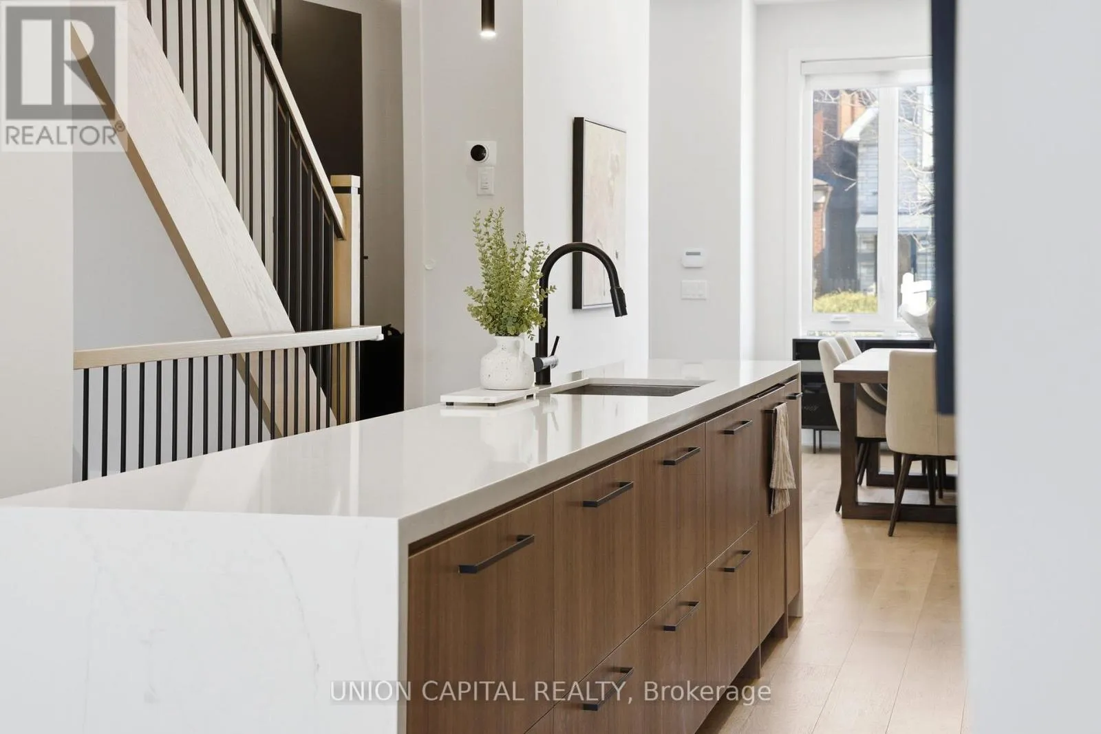 Beresford Ave & Bloor St W Welcome to this stunning custom-built home in the heart of Bloor West Village, offering over 3,000 sq ft of beautifully finished living space. This impressive 3 bedroom, 5-bathroom residence with a den on the second floor showcasing exceptional craftsmanship, luxury finishes, and a thoughtfully designed layout ideal for modern family living. The main floor features soaring ceilings, wide-plank hardwood floors, pot lights throughout, and an open-concept living and dining area anchored by a sleek linear fireplace with elegant cove lighting. The chef-inspired kitchen boasts custom cabinetry with hardrock maple interiors, Calacatta Vienna quartz countertops, a herringbone backsplash, built-in appliances, and a spacious centre island perfect for entertaining. Walk out to a generously sized private backyard with access to a 1.5 detached garage. The entire top floor is dedicated to a private primary retreat, complete with a luxurious full-floor ensuite and walk-in closet, creating a true sanctuary. Additional bedrooms are generously sized, complemented by a versatile den and convenient upper-level laundry. Fully finished basement with rough-ins for a kitchen and laundry with a separate entrance for extra income potential. Located steps to the shops, cafes, and restaurants of Bloor Street West, excellent schools, parks, Humber River trails, TTC, Jane Station, and easy access to the Gardiner, Hwy 427, and Sherway Gardens. (id:27476)