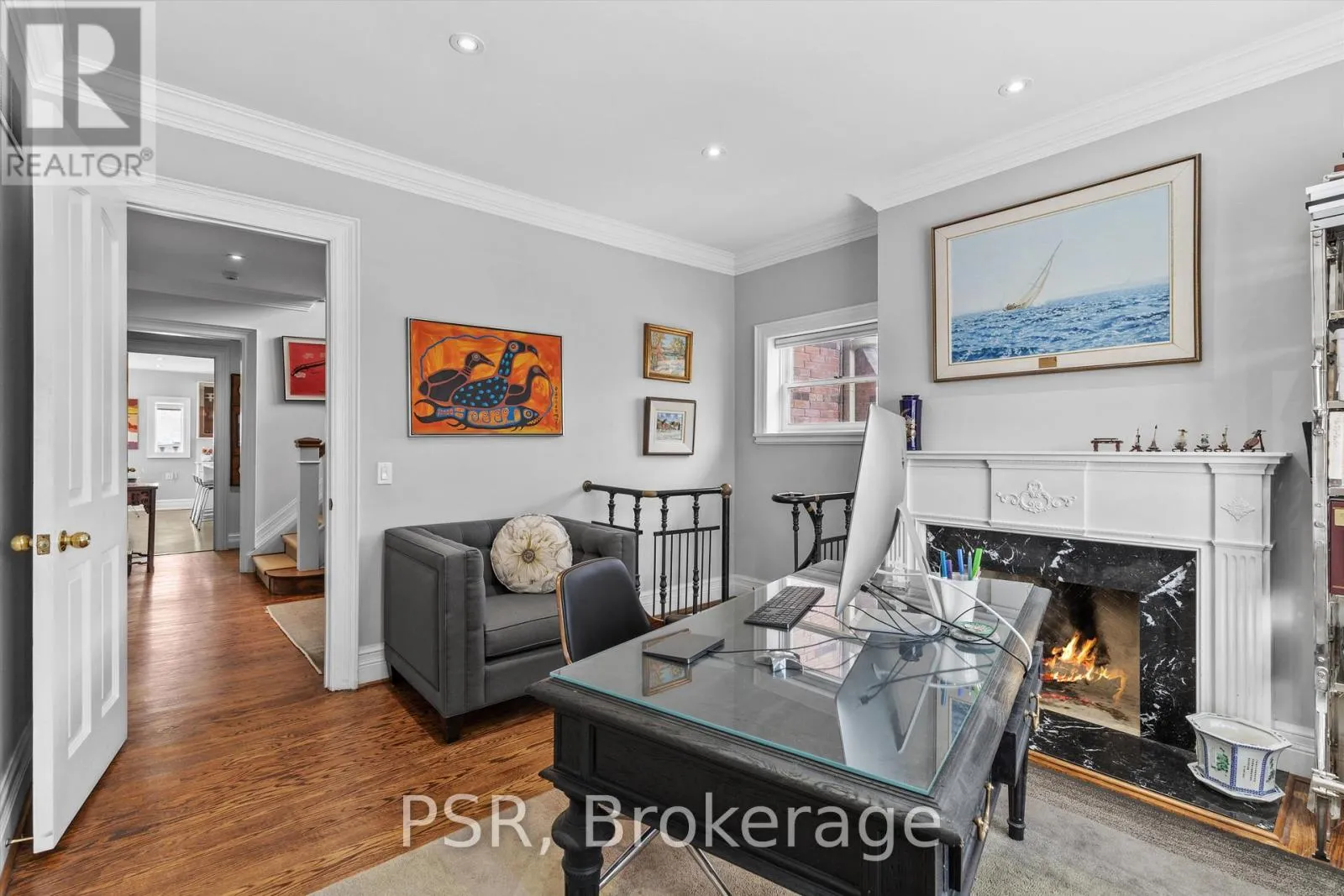 Avenue & St.Clair Nestled on a 50 x 135 ft corner lot in prestigious South Hill, 31 Clarendon Avenue offers charm, space, and functionality. The home features a lovely, cottage-like exterior and a unique corner setting with a sport court along Poplar Plains, backyard space on the Clarendon side, and a 2-car garage with 4-car driveway. Inside, dark hardwood floors run through elegant principal rooms including a formal living room with fireplace, formal dining room, and an enclosed kitchen with dark rubber flooring, Thermador & Bosch appliances, centre island, and built-in bar area. A bright step-down family room with windows on two sides and outdoor access offers a comfortable gathering space, while a private office with spiral staircase to the basement is ideal for working from home. The upper levels offer six bedrooms, including a primary suite with walk-in closet and 6-piece ensuite with heated floors, additional heated-floor bathrooms, and laundry. The lower level with separate side entrance features recreation space, a gym area, bedrooms, and ample storage-offering excellent flexibility for family living or guests. 31 Clarendon Avenue is a rare opportunity in South Hill-welcome to your cottage in the city. (id:27476)