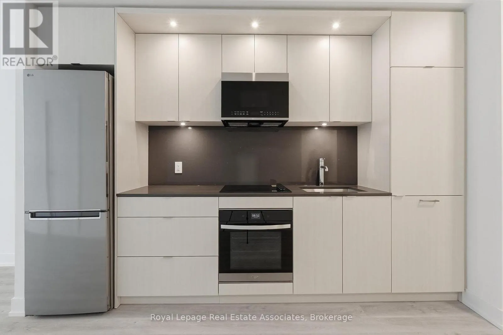 Bloor & Islington Welcome to Westerly 1 at 25 Cordova Avenue, where contemporary design meets everyday convenience in the heart of Islington-City Centre West. This brand-new 1-bedroom plus den suite offers 663 sq. ft. of thoughtfully designed interior space, featuring a bright, carpet-free layout and modern finishes throughout. The modern kitchen features built-in stainless steel appliances and sleek cabinetry, flowing seamlessly into the combined dining and living area. Floor-to-ceiling windows enhance natural light throughout the open-concept living space, creating an inviting setting for both everyday living and entertaining. The bedroom offers a comfortable layout with a large closet and floor-to-ceiling window, while the den provides flexible space well suited for a home office or study. Two bathrooms add convenience and functionality, including a main 4-piece bath and an additional 3-piece bath. In-suite laundry is conveniently located in a dedicated closet, maintaining an efficient and functional layout. Residents enjoy access to amenities including a fitness centre, guest suites, party and meeting rooms, and concierge service. Ideally located steps from Islington Station, parks, grocery stores, cafés, and everyday conveniences, this suite offers comfortable, well-connected urban living in a desirable Etobicoke community. (id:27476)