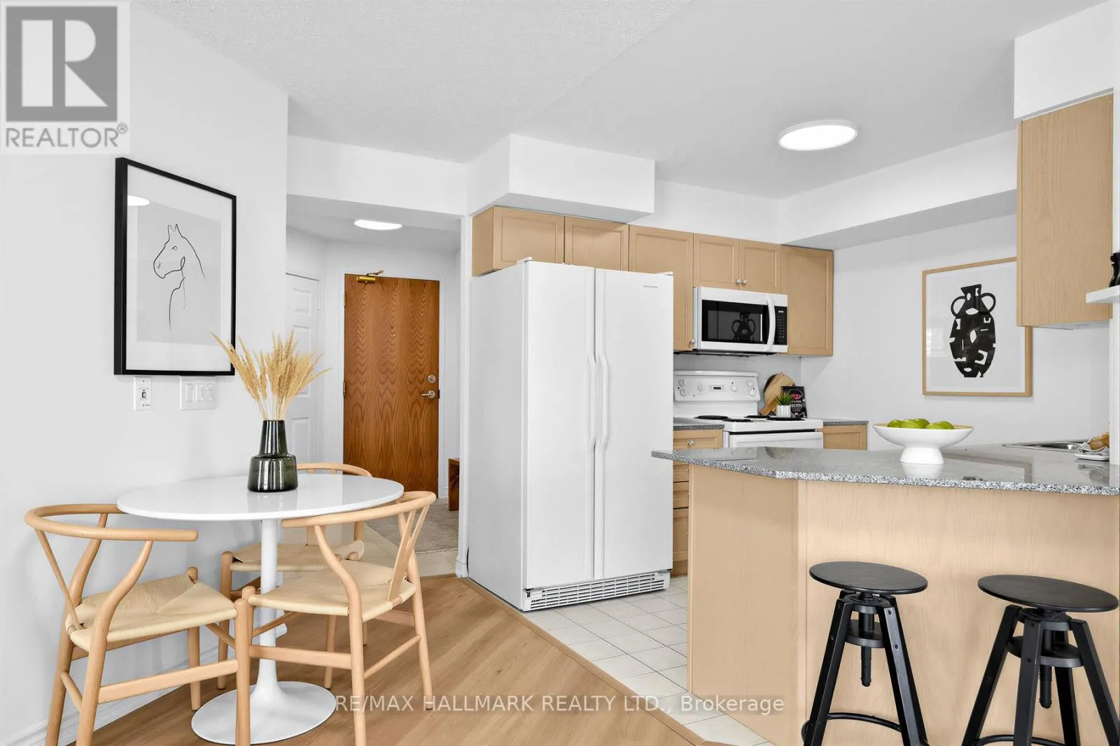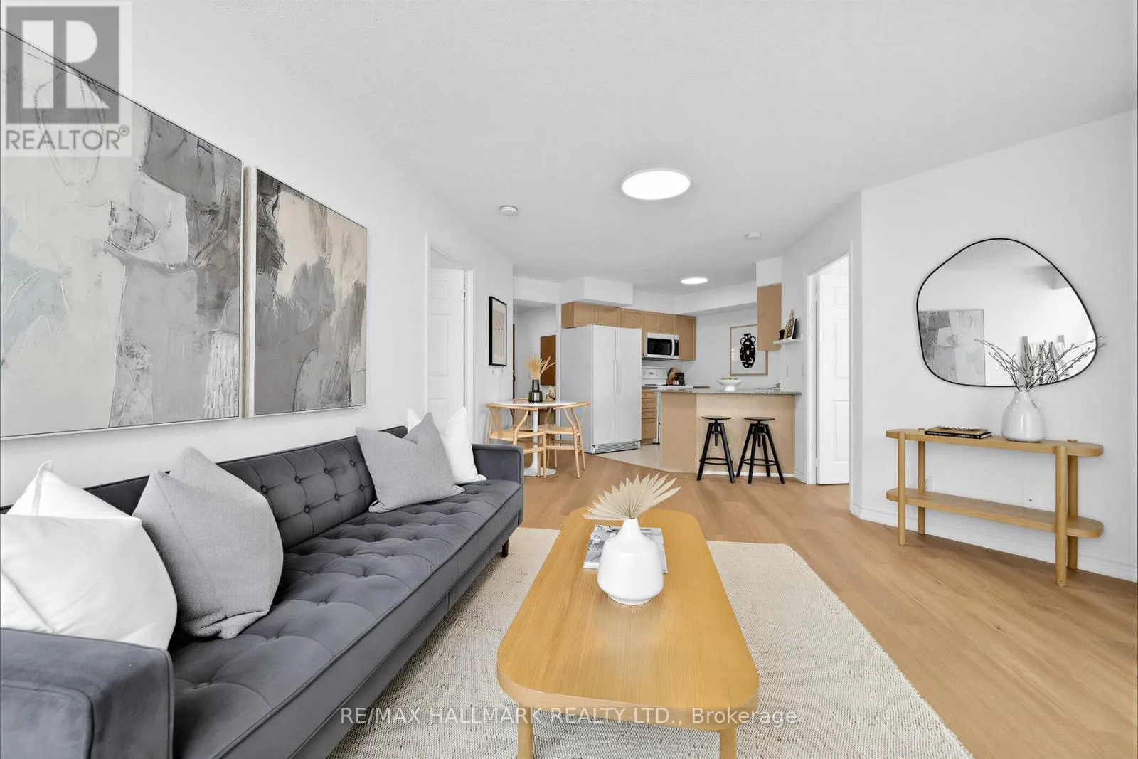 Eglinton / Sloane This stunning and bright 2-bedroom, 2-bathroom corner suite offers spacious, comfortable living in the highly sought-after Soleil Condominium. The oversized primary bedroom features a large walk-in closet and a 4-piece ensuite. Start your mornings with tea on the private balcony showcasing beautiful southeast views, or enjoy coffee at the kitchen breakfast bar, complete with granite countertops throughout. Large windows fill the space with natural light. This well-maintained building offers a wide range of amenities and pride of ownership throughout. Ideally located in Victoria Village, you're just minutes to highways, transit, parks, schools, and shopping. Move in and enjoy - nothing left to do! (id:27476)