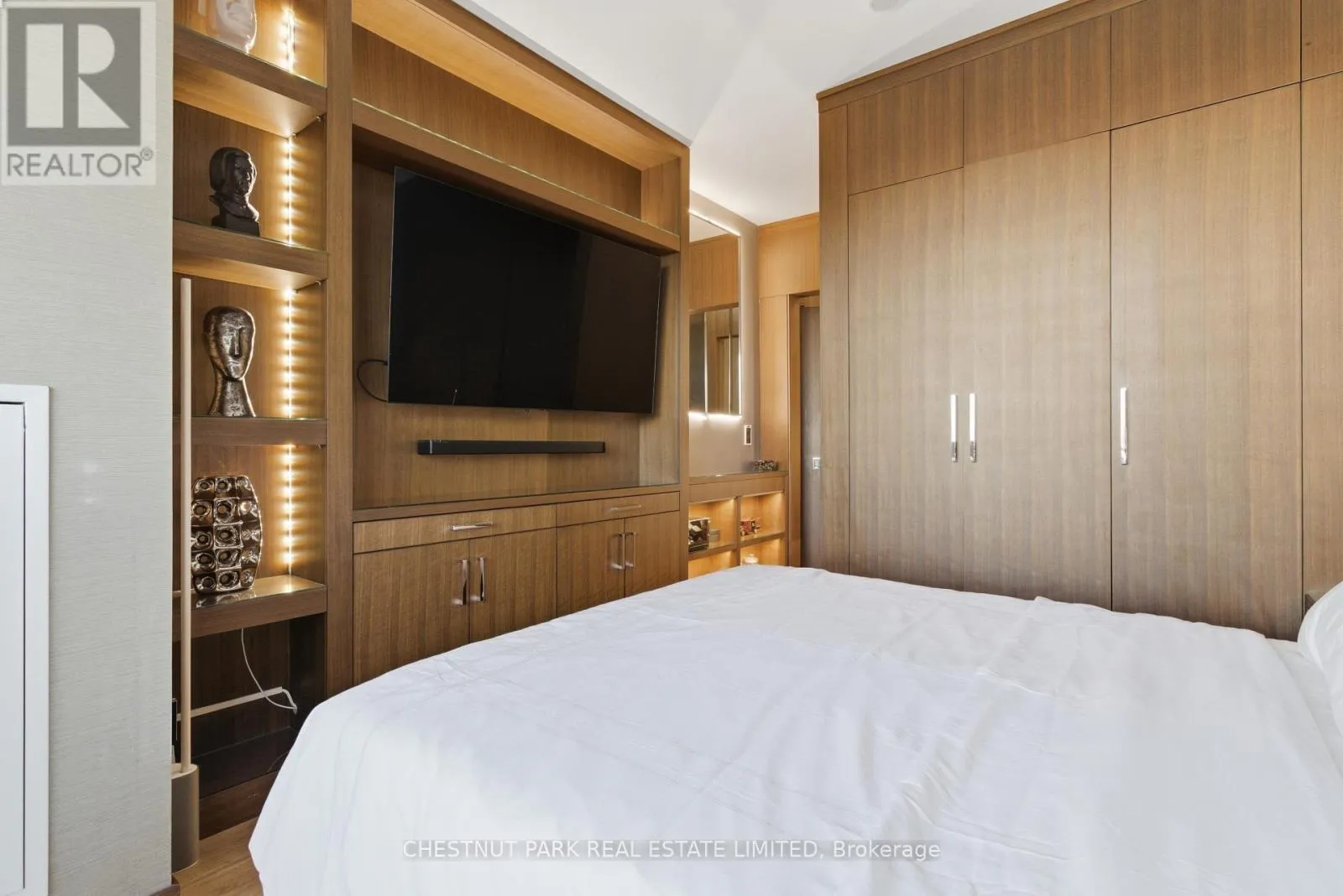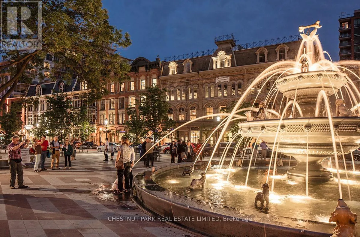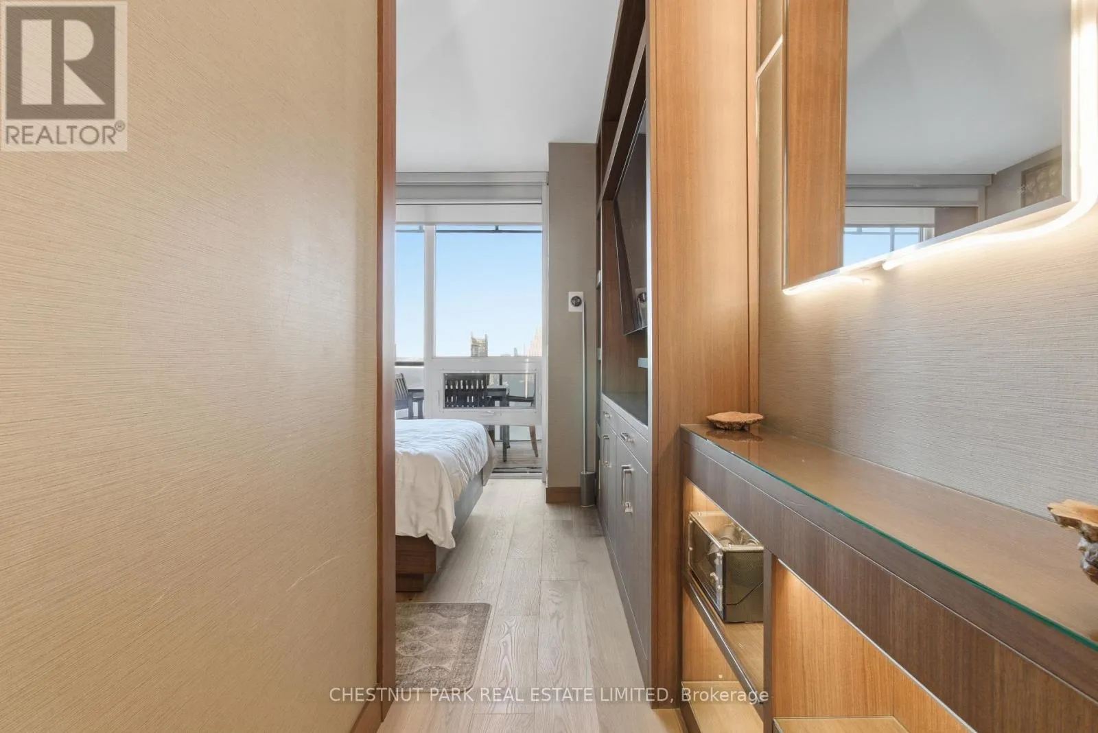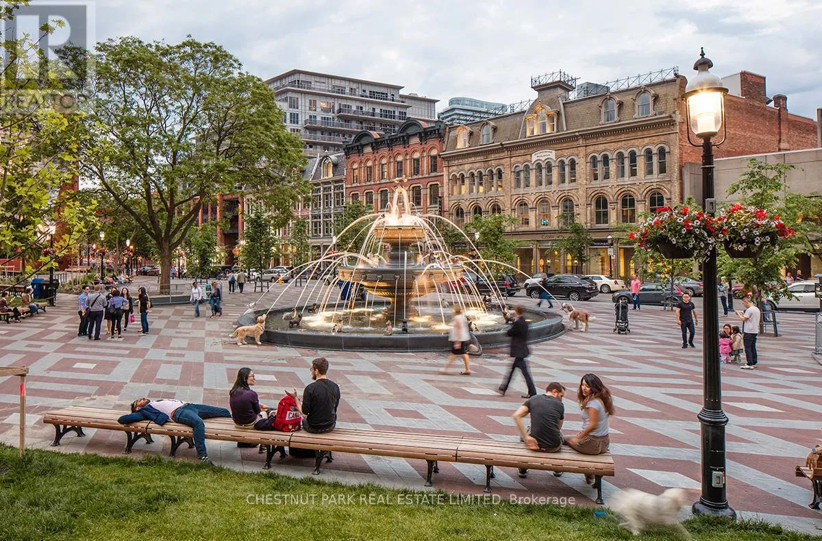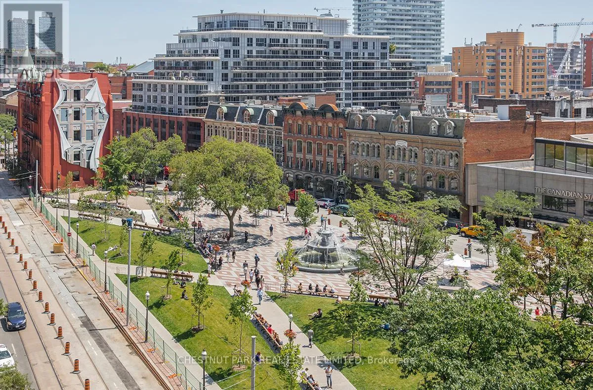 Cross Streets: Jarvis And Front/Esplanade. ** Directions: Immediately south of St Lawrence Market off The Esplanade. Enjoy the pinnacle of luxury in the heart of downtown Toronto; a one-of-a-kind $275K bespoke renovation. Designed by world-renowned Paul Rafauli, this fully-furnished, turnkey 2 Bed / 2 Bath split-floor residence offers 885sf of sophisticated interior living with unobstructed south-east views of the skyline, treetops, and Lake Ontario + 238sf private rooftop terrace! Walnut-paneled walls and doors, custom built-ins, contemporary stone accents, designer lighting, and fully integrated smart home automation create effortless, jet-set-ready elegance.The kitchen is a masterpiece of form and function: granite waterfall island with recessed LED lighting, marble floors, custom walnut and high-gloss cabinetry, glass tile backsplash, built-in pantry, premium Sub-Zero and Miele appliances; perfect for curated entertaining or quiet gourmet moments. An LG Styler keeps your wardrobe perfectly steamed, sanitized, and pressed at a touch.Sun-drenched living and dining areas with floor-to-ceiling windows frame breathtaking vistas, providing a cinematic backdrop for work, leisure, or hosting guests. The primary retreat is a sanctuary of bespoke luxury with walnut millwork paneling, built-in his and hers closets with organizers, illuminated shelving, designer wallpaper, custom blackout shades, and a 4-piece marble ensuite featuring Toto smart toilet and frameless glass shower and tub. The second bedroom, designed as an executive office, includes custom built-ins, abundant storage, and a marble-finished ensuite.Step outside to the gorgeous private terrace with wood-plank flooring, astro-turf, integrated lighting, natural gas BBQ line, an extraordinary outdoor stage for sunset cocktails, intimate entertaining, work & reflection above the city. Steps to Union Station, St Lawrence Market, Financial district, Universities, Film Studios, Sugar Beach, Berczy Park, Loblaws and amenities galore; this is Toronto living at its best! Just bring your suitcase. (id:27476)
