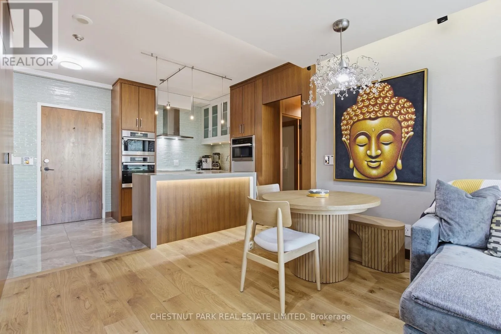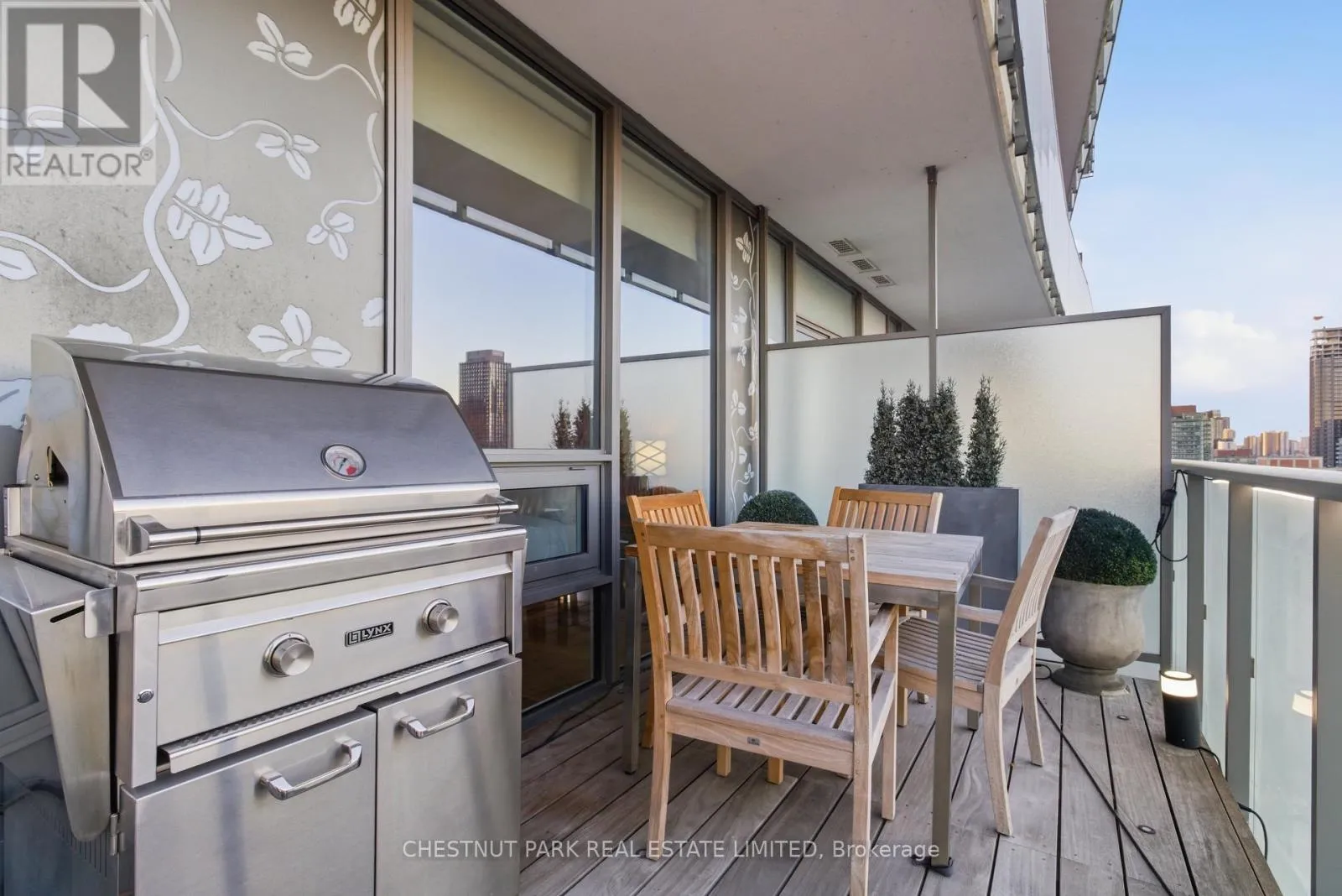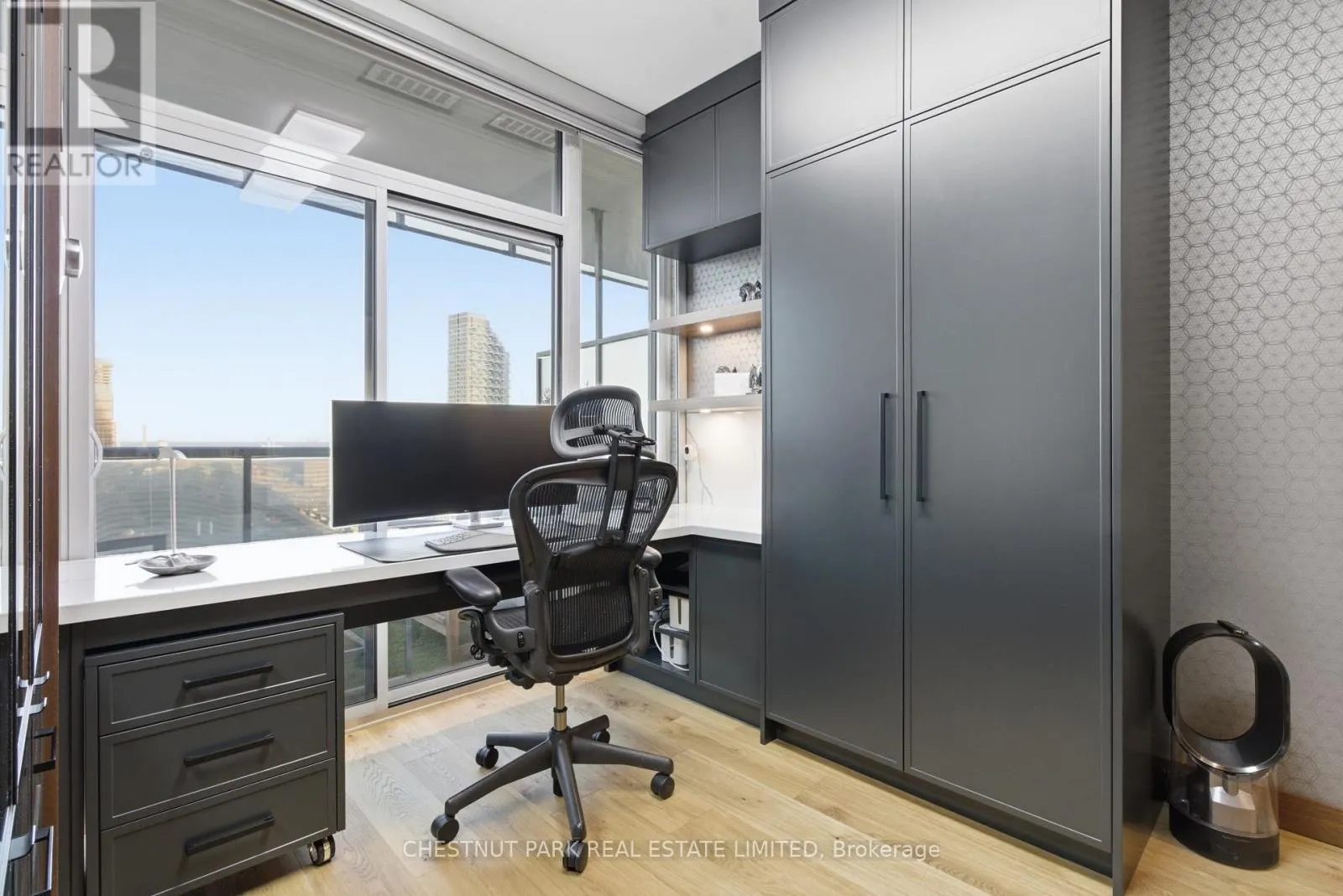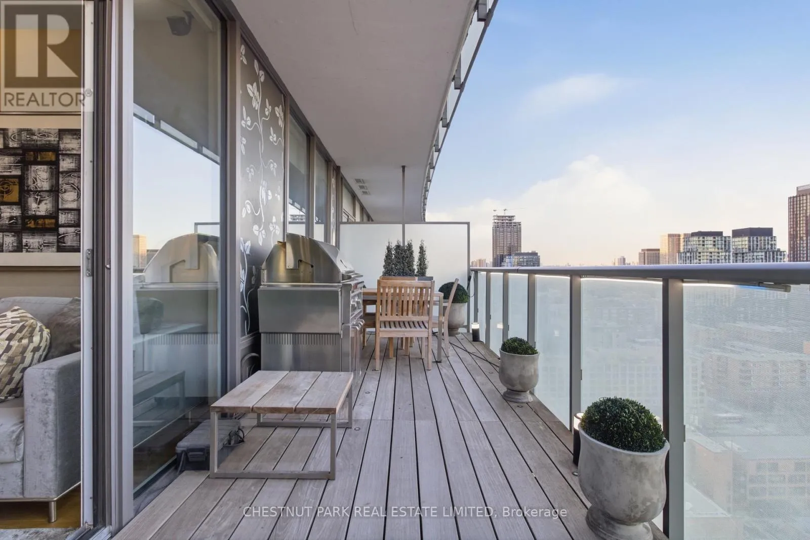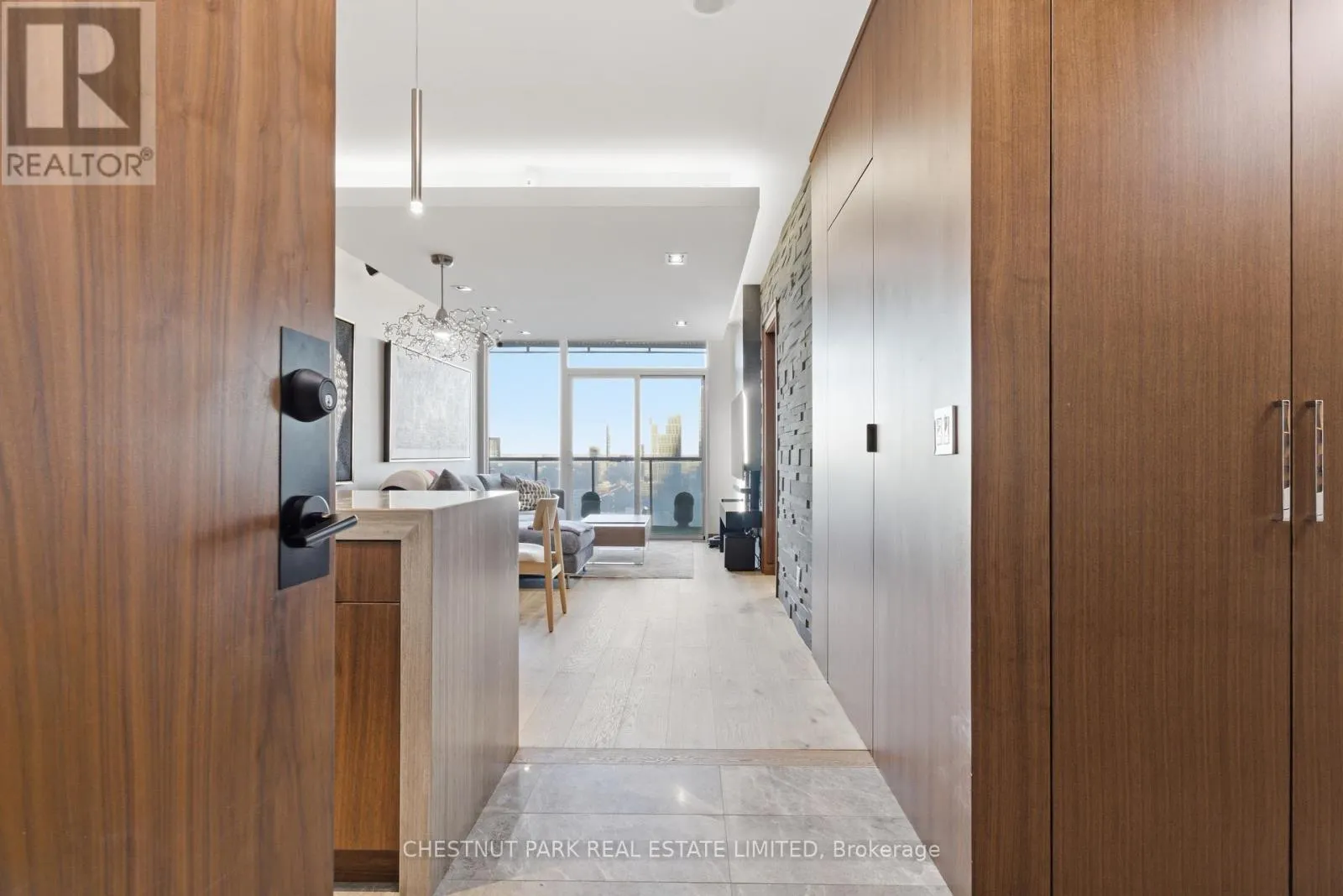 Cross Streets: Jarvis And Front/Esplanade. ** Directions: Immediately south of St Lawrence Market off The Esplanade. Enjoy the pinnacle of luxury in the heart of downtown Toronto; a one-of-a-kind $275K bespoke renovation. Designed by world-renowned Paul Rafauli, this fully-furnished, turnkey 2 Bed / 2 Bath split-floor residence offers 885sf of sophisticated interior living with unobstructed south-east views of the skyline, treetops, and Lake Ontario + 238sf private rooftop terrace! Walnut-paneled walls and doors, custom built-ins, contemporary stone accents, designer lighting, and fully integrated smart home automation create effortless, jet-set-ready elegance.The kitchen is a masterpiece of form and function: granite waterfall island with recessed LED lighting, marble floors, custom walnut and high-gloss cabinetry, glass tile backsplash, built-in pantry, premium Sub-Zero and Miele appliances; perfect for curated entertaining or quiet gourmet moments. An LG Styler keeps your wardrobe perfectly steamed, sanitized, and pressed at a touch.Sun-drenched living and dining areas with floor-to-ceiling windows frame breathtaking vistas, providing a cinematic backdrop for work, leisure, or hosting guests. The primary retreat is a sanctuary of bespoke luxury with walnut millwork paneling, built-in his and hers closets with organizers, illuminated shelving, designer wallpaper, custom blackout shades, and a 4-piece marble ensuite featuring Toto smart toilet and frameless glass shower and tub. The second bedroom, designed as an executive office, includes custom built-ins, abundant storage, and a marble-finished ensuite.Step outside to the gorgeous private terrace with wood-plank flooring, astro-turf, integrated lighting, natural gas BBQ line, an extraordinary outdoor stage for sunset cocktails, intimate entertaining, work & reflection above the city. Steps to Union Station, St Lawrence Market, Financial district, Universities, Film Studios, Sugar Beach, Berczy Park, Loblaws and amenities galore; this is Toronto living at its best! Just bring your suitcase. (id:27476)