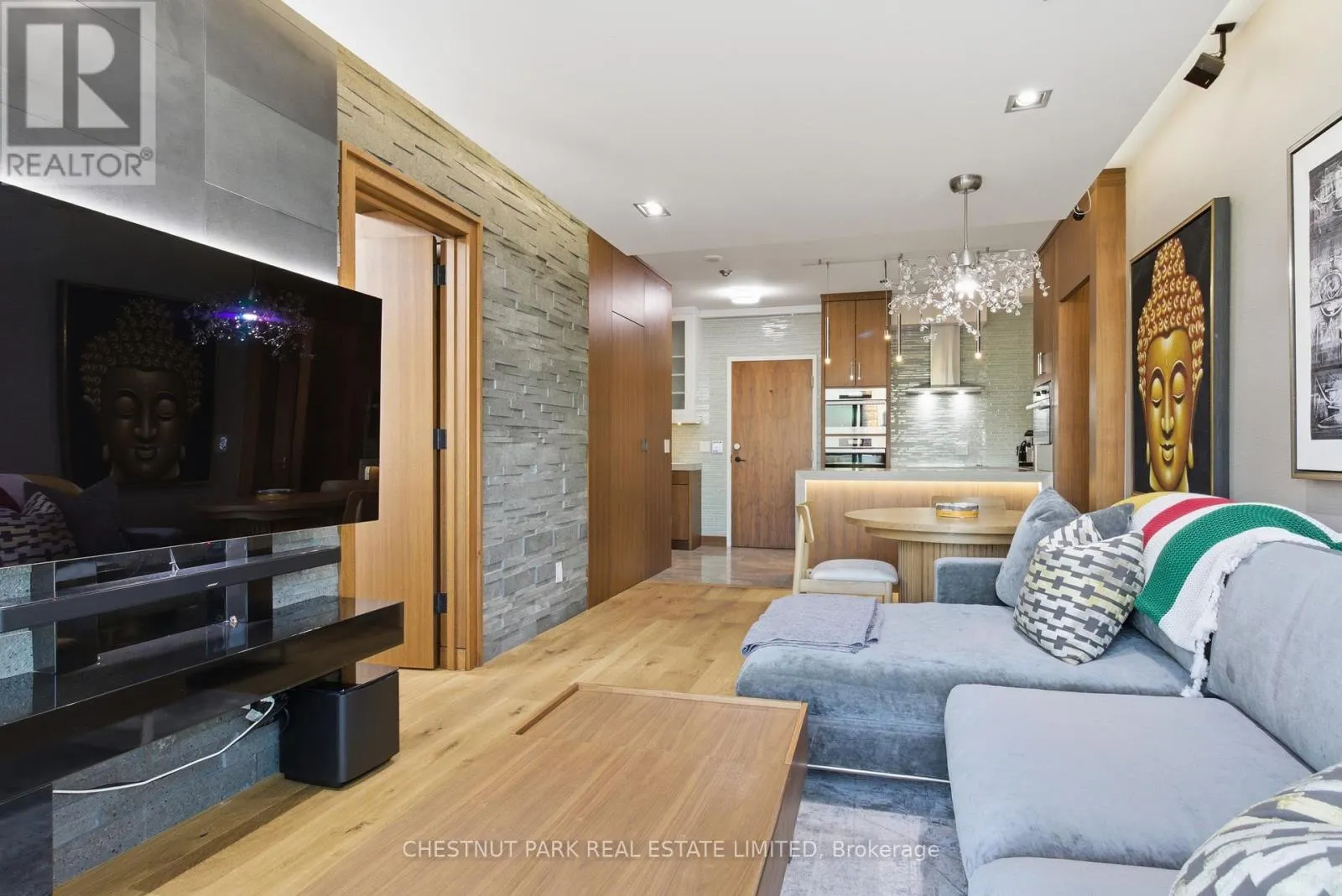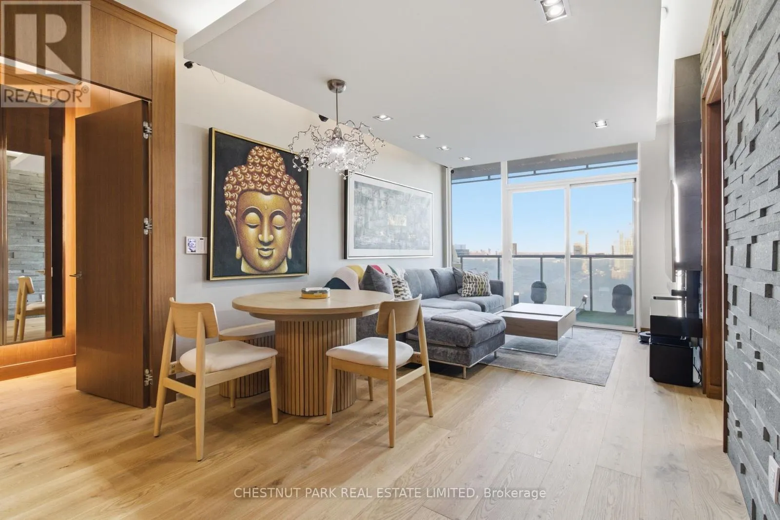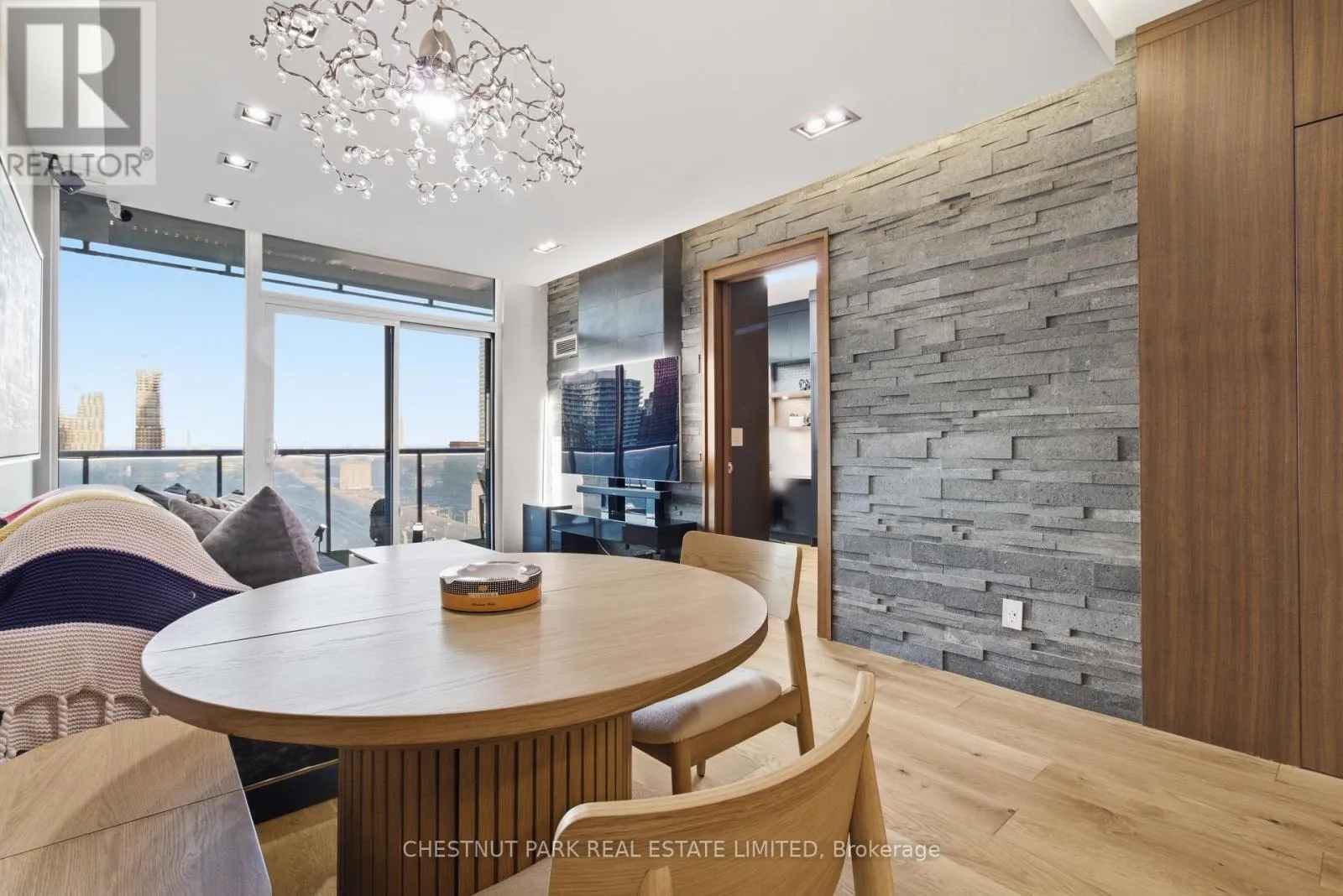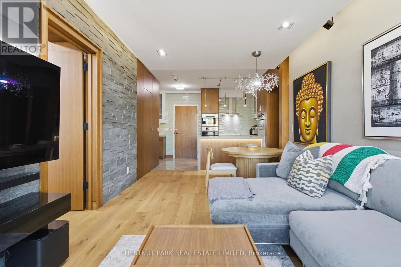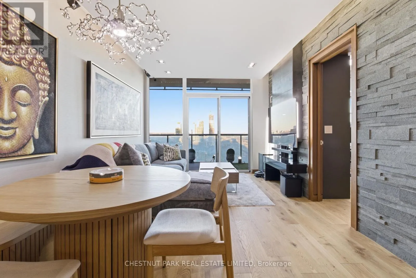 Cross Streets: Jarvis And Front/Esplanade. ** Directions: Immediately south of St Lawrence Market off The Esplanade. Enjoy the pinnacle of luxury in the heart of downtown Toronto; a one-of-a-kind $275K bespoke renovation. Designed by world-renowned Paul Rafauli, this fully-furnished, turnkey 2 Bed / 2 Bath split-floor residence offers 885sf of sophisticated interior living with unobstructed south-east views of the skyline, treetops, and Lake Ontario + 238sf private rooftop terrace! Walnut-paneled walls and doors, custom built-ins, contemporary stone accents, designer lighting, and fully integrated smart home automation create effortless, jet-set-ready elegance.The kitchen is a masterpiece of form and function: granite waterfall island with recessed LED lighting, marble floors, custom walnut and high-gloss cabinetry, glass tile backsplash, built-in pantry, premium Sub-Zero and Miele appliances; perfect for curated entertaining or quiet gourmet moments. An LG Styler keeps your wardrobe perfectly steamed, sanitized, and pressed at a touch.Sun-drenched living and dining areas with floor-to-ceiling windows frame breathtaking vistas, providing a cinematic backdrop for work, leisure, or hosting guests. The primary retreat is a sanctuary of bespoke luxury with walnut millwork paneling, built-in his and hers closets with organizers, illuminated shelving, designer wallpaper, custom blackout shades, and a 4-piece marble ensuite featuring Toto smart toilet and frameless glass shower and tub. The second bedroom, designed as an executive office, includes custom built-ins, abundant storage, and a marble-finished ensuite.Step outside to the gorgeous private terrace with wood-plank flooring, astro-turf, integrated lighting, natural gas BBQ line, an extraordinary outdoor stage for sunset cocktails, intimate entertaining, work & reflection above the city. Steps to Union Station, St Lawrence Market, Financial district, Universities, Film Studios, Sugar Beach, Berczy Park, Loblaws and amenities galore; this is Toronto living at its best! Just bring your suitcase. (id:27476)