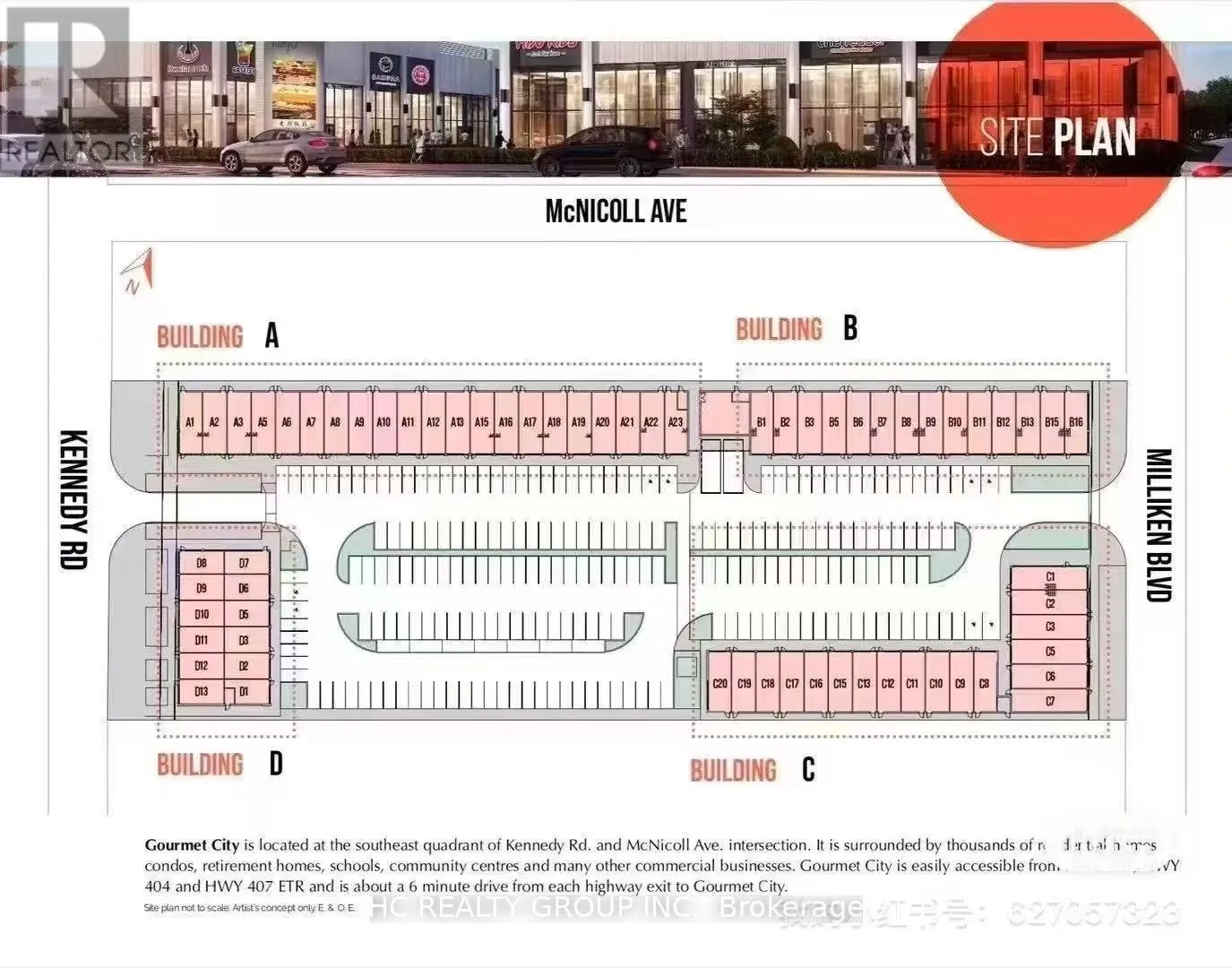 Cross Streets: Kennedy Rd / McNicoll Ave. ** Directions: Google Map. Client RemarksGourmet City Commercial Condos - a brand new culinary hub in Scarborough at a strategic and convenient location in the SE quadrant of Kennedy Rd and McNicoll Ave, offering great exposure on Kennedy Rd, with direct access from Kennedy Rd and Milliken Blvd. The development by H & H Group features a modern design with high quality finishes. The plaza enjoys high visibility and foot traffic, providing a great variety of opportunities for lucrative business ventures. 20 ft high ceiling brand new unit with mezzanine in raw condition. Permitted uses include restaurant, Dining in bakery , cafe, dessert shop, bubble tea, Bar & more. Great business opportunities cater to different cultures. Minutes drive to Hwy 404/407. (id:27476)