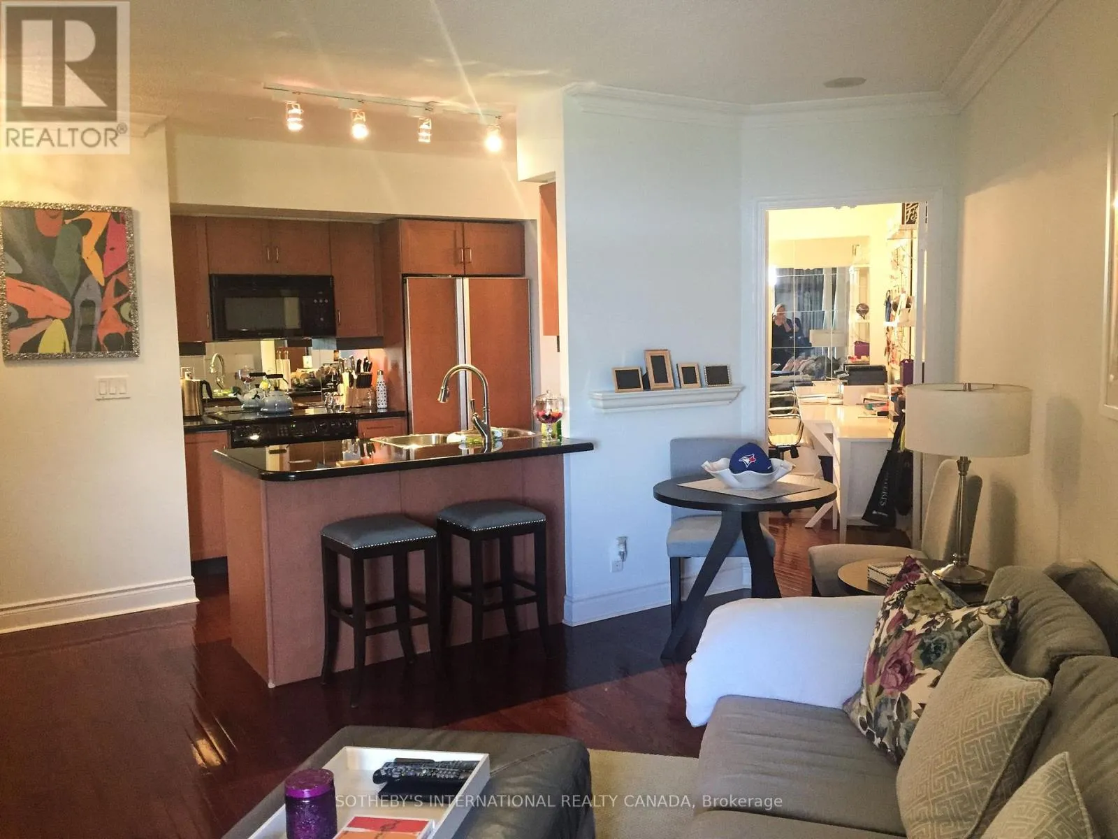 Cross Streets: Yonge & St. Clair. ** Directions: Yonge N. of St. Clair. Suite 810 at 10 Delisle Avenue offers comfortable city living in one of Toronto's most desirable midtown neighborhoods. This bright one-bedroom plus den condo features a practical layout with a contemporary kitchen boasting granite counters, full-size appliances, and a breakfast bar that opens to the living and dining area, perfect for everyday living and entertaining. The den provides a flexible space ideal for working from home or a guest area. Step outside to a quiet balcony with views over the Deer Park neighbourhood. The suite also includes in-suite laundry, underground parking, and a storage locker. Located just moments from the St. Clair subway station and walking distance to parks, boutique shops, fine dining restaurants, and neighborhood cafés, this home places the best of midtown right at your doorstep. *Furniture in photos from previous occupant. (id:27476)