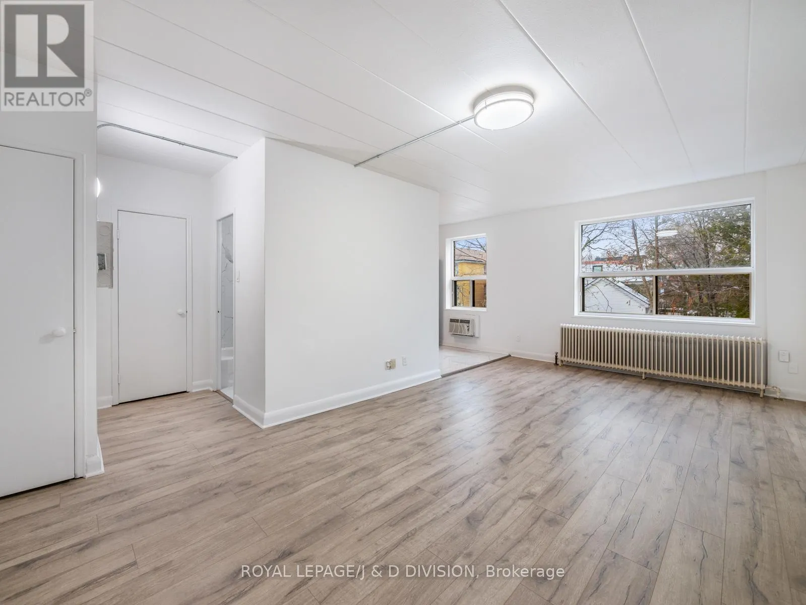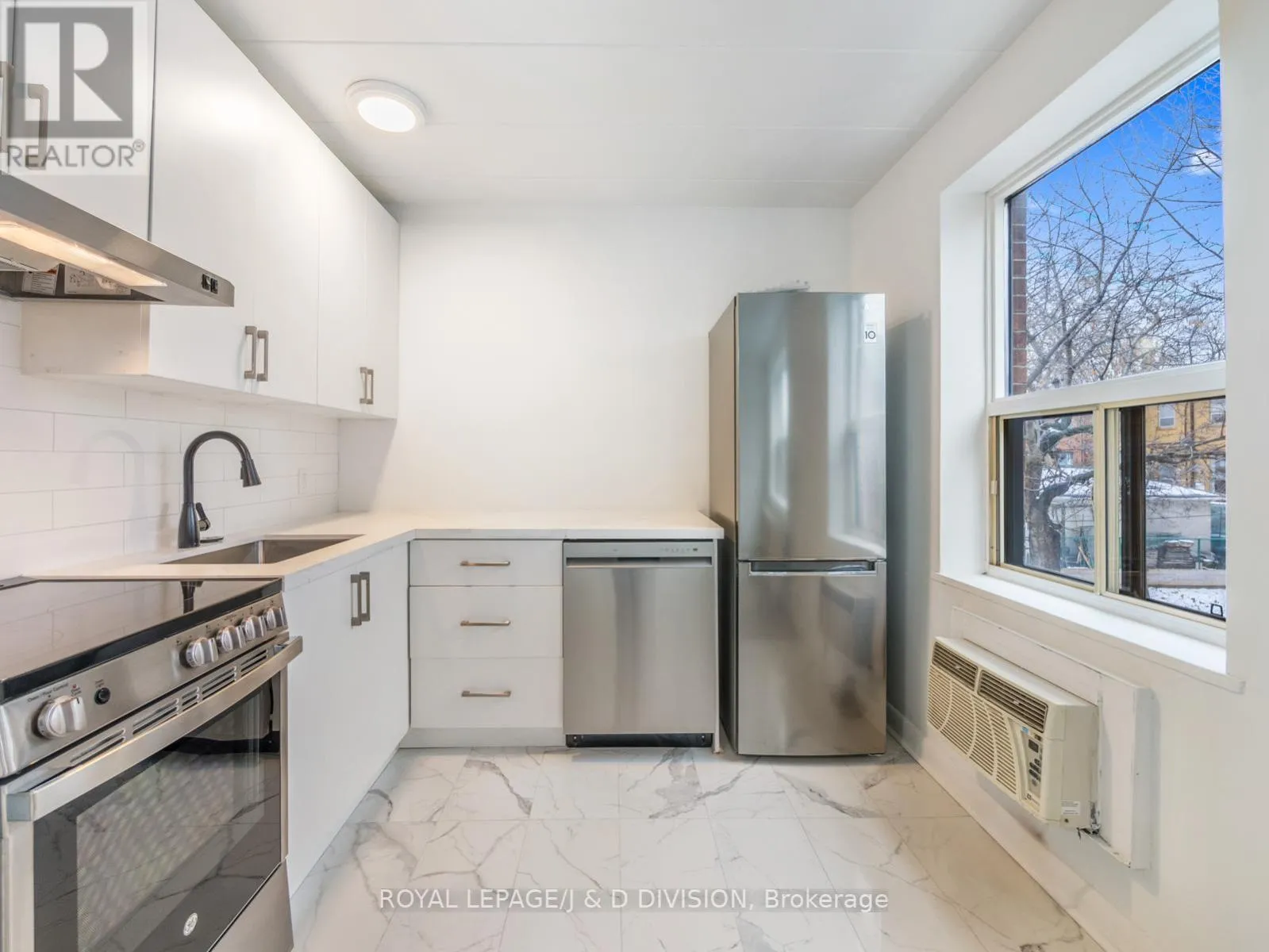 Cross Streets: Greenwood & Sammon. ** Directions: Located on the SW corner of Greenwood & Sammon. This fully renovated bachelor unit is situated in an impeccably maintained building just steps from The Danforth! The spacious living/bedroom area offers ample room for both relaxation and work-from-home needs, and is flooded with natural light from large windows. The modern kitchen boasts stainless steel appliances (including a dishwasher, stove with vent, and Stainless Steel fridge), ample cabinet storage, and is complemented by an elongated white subway tile backsplash, sleek black fixtures, and modern floor tiles. An in-unit air conditioner is also included. The stylish bathroom features a walk-in shower with marble hex tile and sleek black fixtures. Conveniently located close to TTC, parks, restaurants, and amenities such as the popular Left Field Brewery and the Danforth Music Hall, this unit is the perfect home for a young professional or couple saving to buy their first home! Price listed is for a 2-year lease. For a 1-year lease, the rent is $1,795. (id:27476)