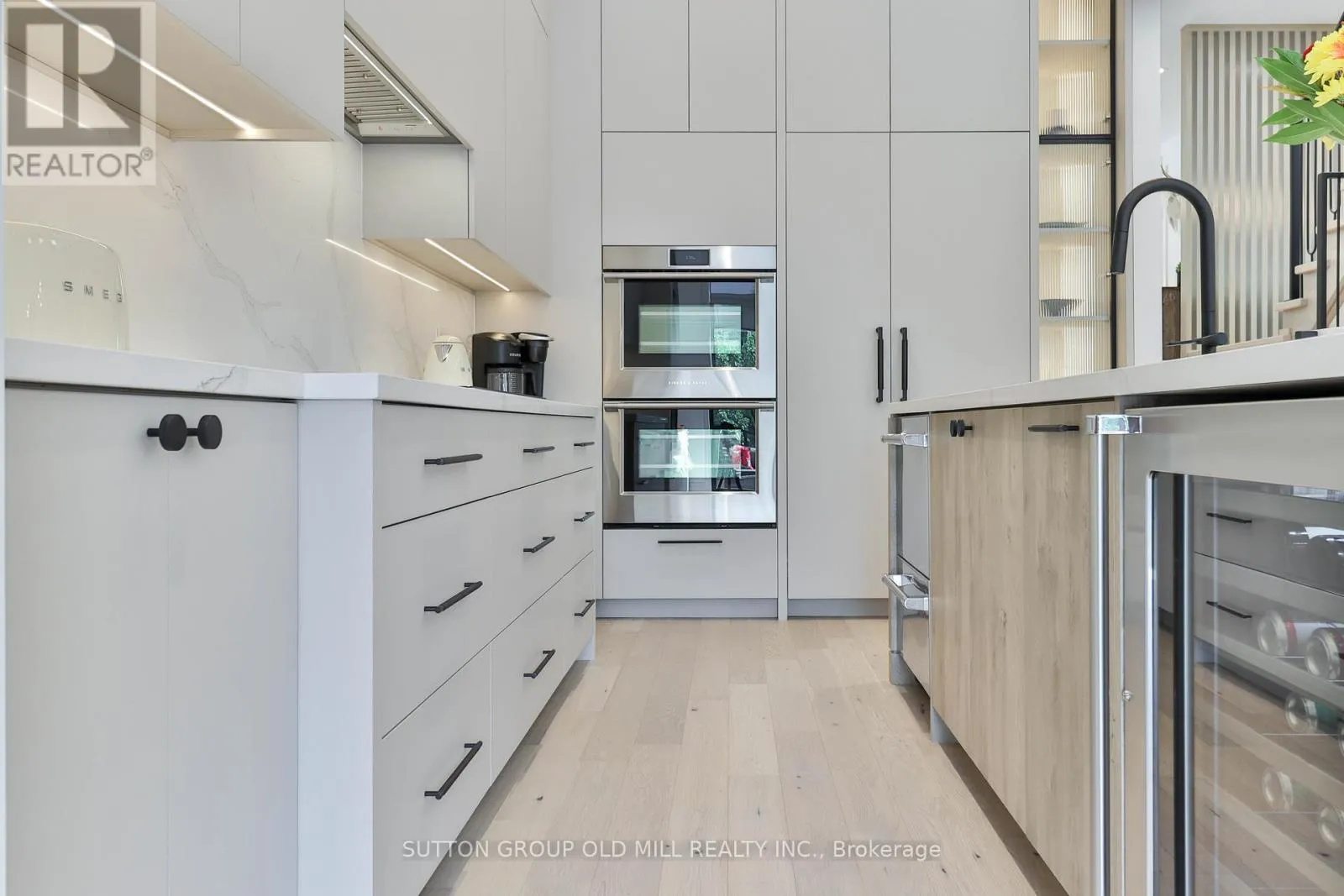 Browns Line & Horner Ave Luxury living in the heart of Etobicoke. This meticulously crafted residence showcases elevated design and exceptional attention to detail throughout. Soaring ceilings create an immediate sense of space, while the inviting living area is anchored by a cozy fireplace-perfect for relaxing winter evenings. Elegant Kentwood hardwood flooring flows throughout the home, beautifully complemented by striking white oak feature walls. The chef-inspired kitchen by Cameo Kitchens is the true centerpiece, blending style with modern functionality. It features sleek European cabinetry, premium Fisher & Paykel appliances, a 42-inch integrated fridge, double wall ovens, and an induction cooktop. Dishwasher drawers are seamlessly integrated into the island, creating a streamlined space ideal for both everyday living and entertaining. The sun-filled dining area offers an expansive setting for hosting family and friends. Upstairs, the primary suite serves as a private retreat, complete with a coffered ceiling, a cozy sitting area, custom dressing room, and a spa-inspired ensuite featuring a soaker tub, double vanity, oversized rain shower, and heated floors. A convenient second-floor laundry room adds to the home's thoughtful design. Smart home technology enhances daily living with integrated speakers, Google Nest climate control, and security cameras for added peace of mind. The lower level offers a refined basement retreat perfect for entertaining, while the backyard oasis is designed for unforgettable gatherings. Situated on a quiet, family-friendly street in desirable South Etobicoke, this home offers quick access to major highways, transit, parks, excellent schools, and the lakefront. A rare blend of luxury, comfort, and cutting-edge design-this is truly a one-of-a-kind place to call home. (id:27476)
