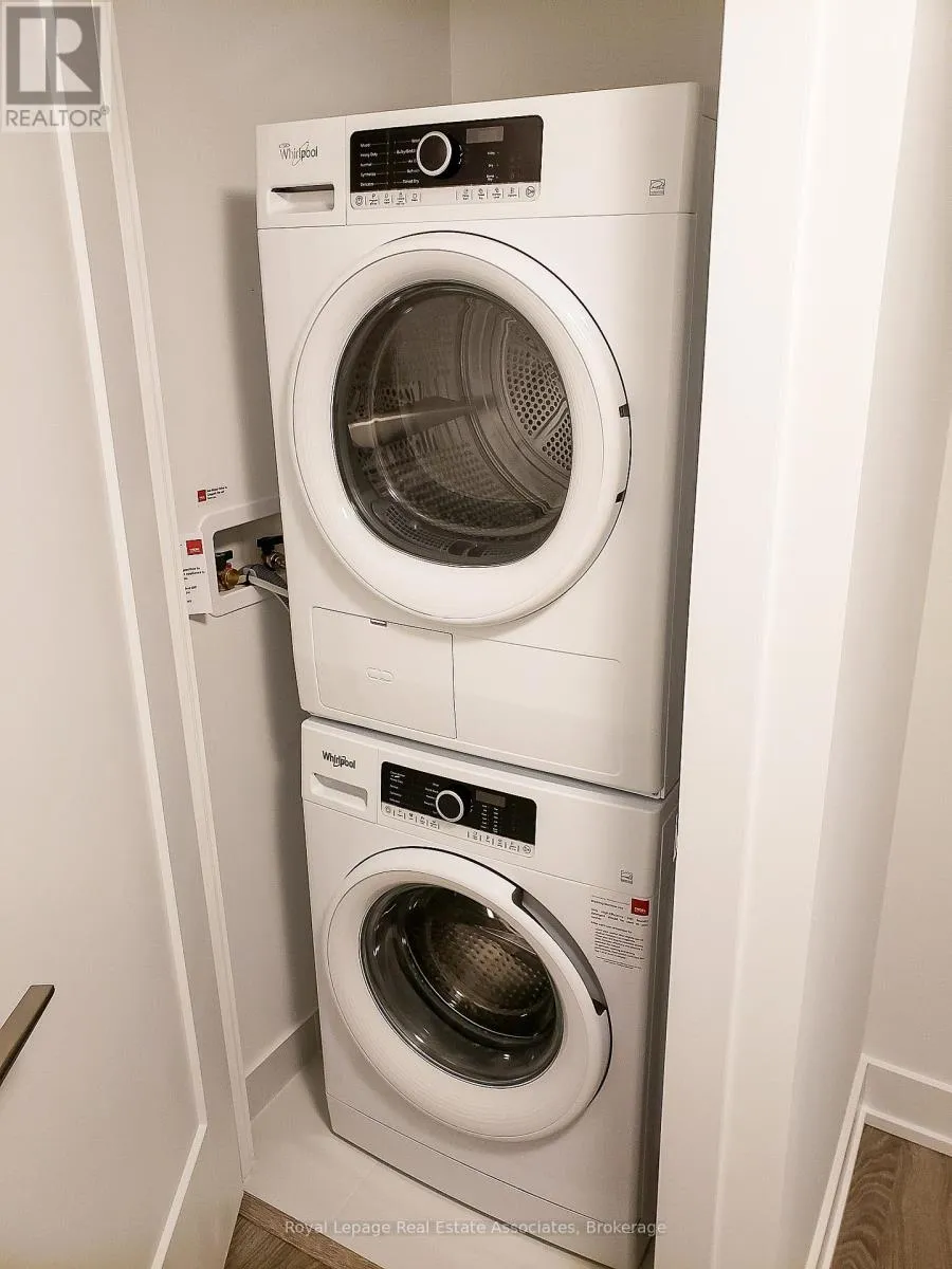 Bloor & Islington ***WITH PARKING*** Welcome to Bloorvista at 9 Mabelle Avenue, where contemporary design meets everyday convenience in the heart of Islington-City Centre West. This well-designed 1-bedroom suite offers 563 sq. ft. of bright, carpet-free interior space with a functional, open-concept layout, including a den large enough for a dedicated workspace or a small guest bed, plus an exclusive parking space for added convenience. The modern kitchen features built-in stainless steel appliances and sleek cabinetry that flow seamlessly into the combined living and dining area. Large windows enhance natural light throughout the main living space, creating an inviting setting for both daily living and entertaining. The bedroom offers a comfortable layout with a large closet and window, complemented by a modern bathroom finished with clean tilework and contemporary fixtures. In-suite laundry is neatly tucked into a dedicated closet, maintaining a streamlined and efficient design. Residents enjoy access to premium building amenities including concierge service, fitness centre, indoor pool, party and meeting rooms, and visitor parking. Ideally located steps from Islington Station, parks, grocery stores, cafés, and everyday conveniences, this suite offers comfortable, well-connected urban living in a desirable Etobicoke community. (id:27476)