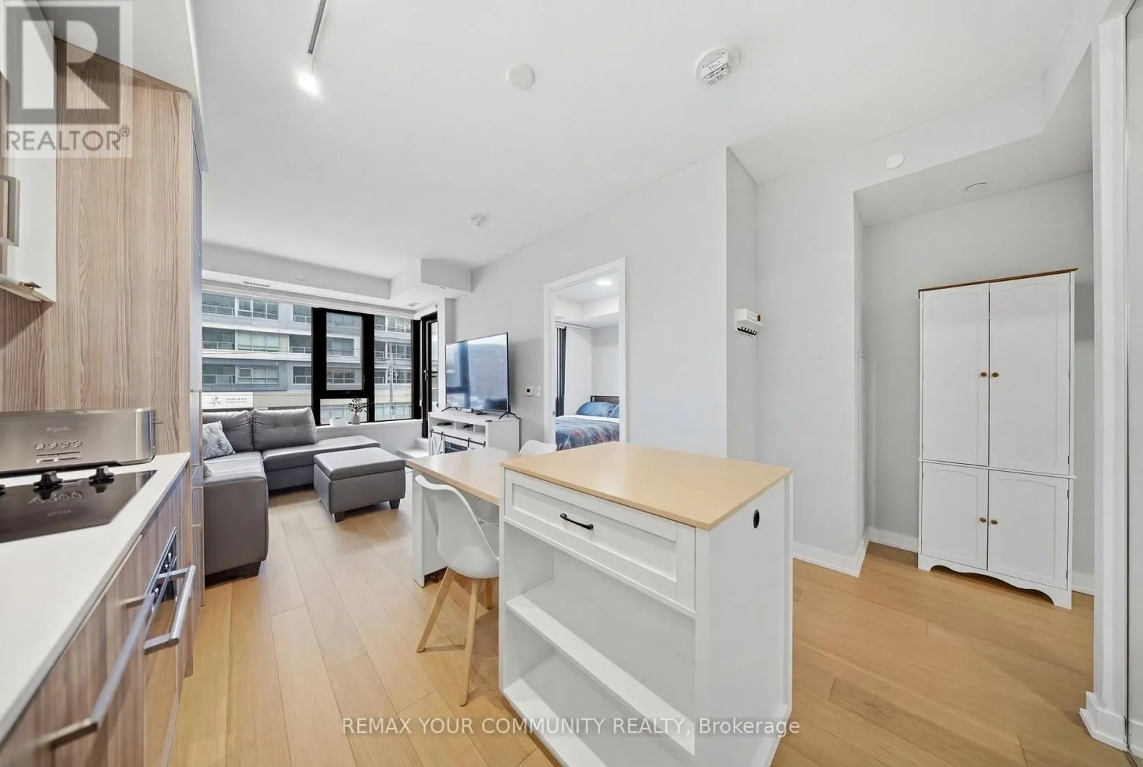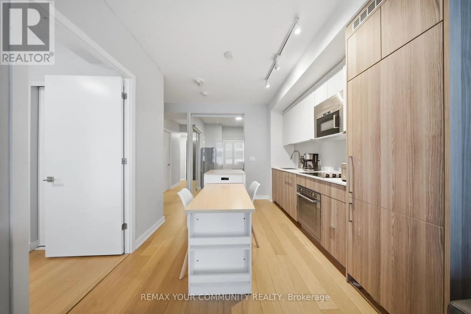 St. Clair & Oakwood Welcome to Eight Forty in the heart of St. Clair West - where vibrant city living meets neighbourhood charm. This beautifully appointed 2-bedroom, 2-bath suite features an ideal split-bedroom layout, soaring 9-ft ceilings, and a bright south-facing exposure that fills the space with natural light all day long. Thoughtfully upgraded, the unit showcases engineered flooring throughout and a sleek Euro-contemporary kitchen with striking two-tone cabinetry, quartz countertops, and a custom-added pantry for enhanced storage and functionality. Every detail has been curated for both style and everyday comfort. The second bedroom offers exceptional versatility with its modern glass wall and roll-down blinds - perfect as a private home office, guest room, or stylish den. This boutique, low-rise residence offers an intimate, community-focused feel while placing you steps from the very best of St. Clair West Village -acclaimed restaurants, cozy cafés, local boutiques, and lively nightlife. With a streetcar stop at your doorstep and quick subway access, commuting downtown is seamless. ***Wifi internet is included in the maintenance fees, adding even more value and convenience.*** (id:27476)