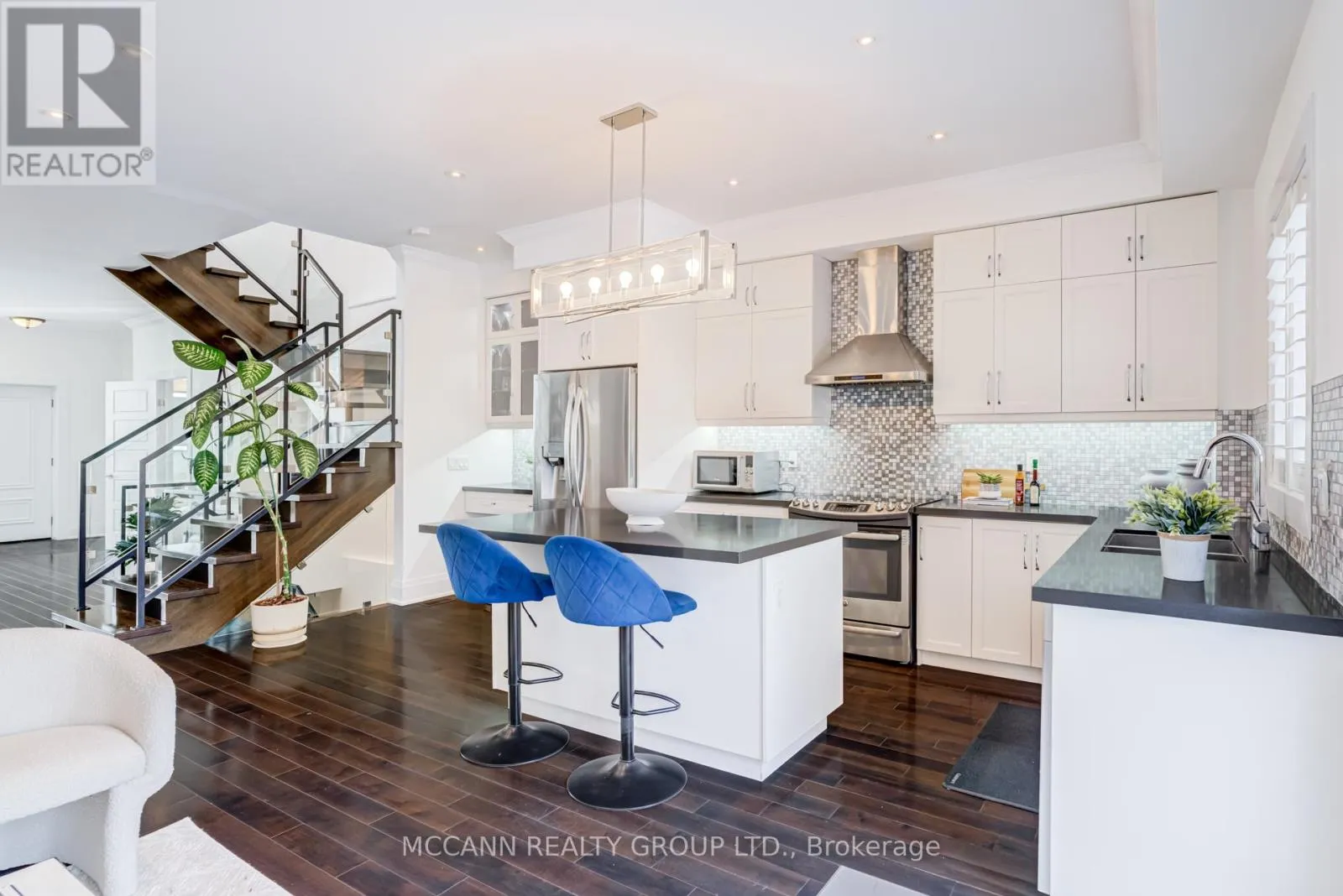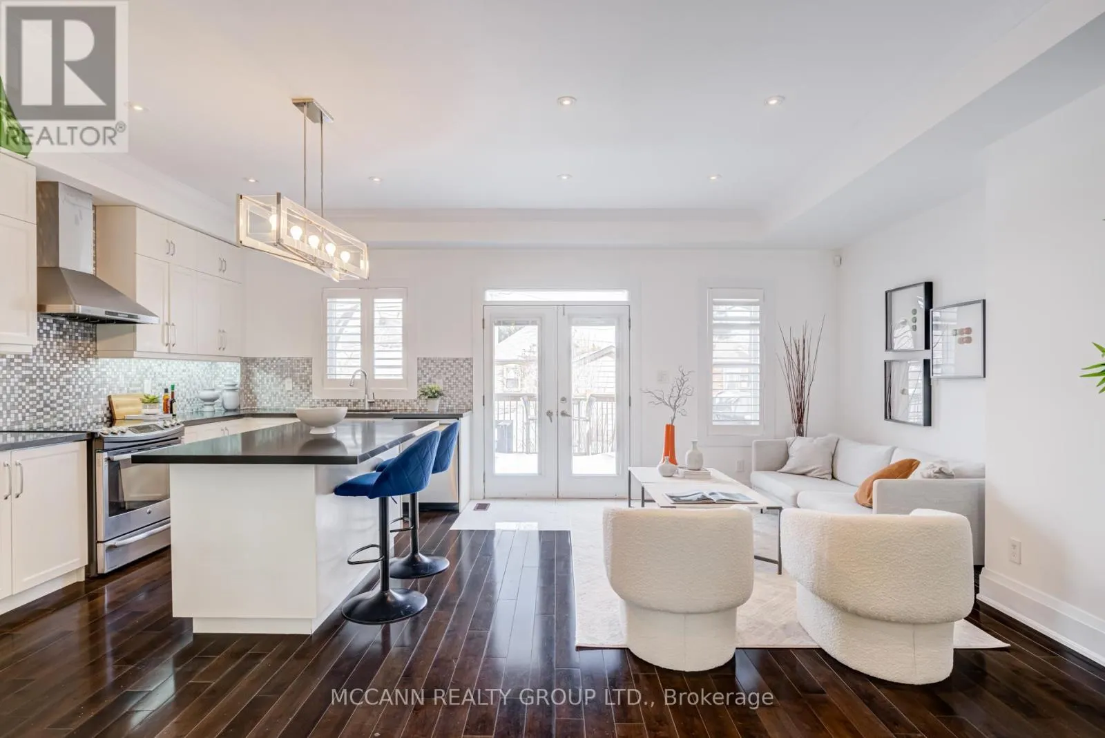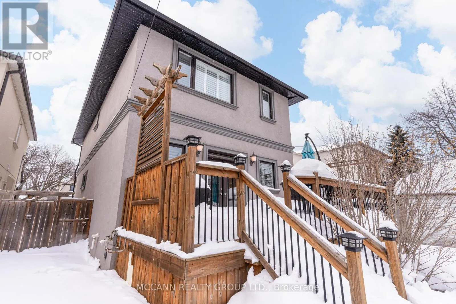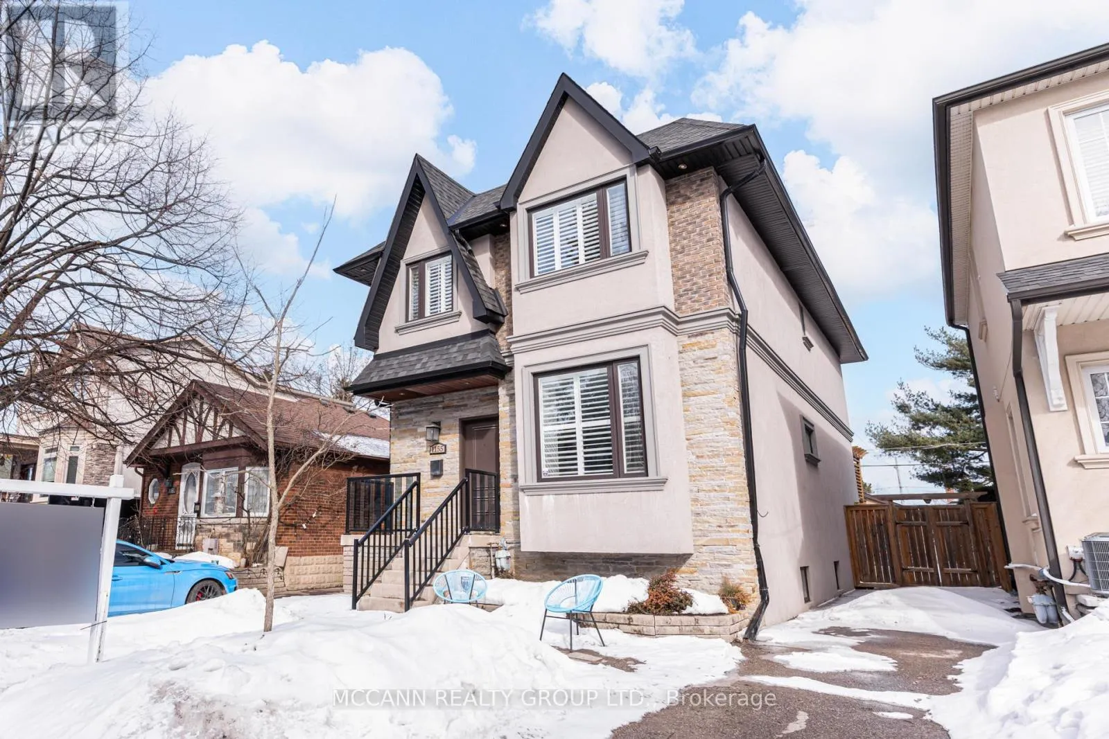 O'Connor/Greenwood Welcome to this stunning 3+1 bedroom, detached custom-built home in the heart of prime East York. Featuring hardwood floors and pot lights throughout the main and second levels, this home offers both style and functionality. The welcoming foyer boasts tiled floors and a double-door coat closet, along with a convenient 2-piece powder room. The open-concept living and dining areas are filled with natural light from a large picture window overlooking the street. The living room features a cozy fireplace and built-in entertainment center, while the dining area flows seamlessly into the open-concept kitchen and family room. The kitchen is equipped with stainless steel appliances and a large centre island, perfect for everyday living and entertaining. The family room walks out to an oversized deck overlooking a spacious backyard. The second floor offers an oversized primary bedroom complete with a walk-in closet and luxurious 5-piece ensuite. Two additional generously sized bedrooms with large windows and closets share a 4-piece bathroom. The finished lower level features laminate flooring and pot lights throughout, with a large recreation room ideal for entertaining or a children's play area, along with space for a gym and home office. This level also includes a 3-piece bathroom and an additional bedroom with a large window. Enjoy the perks of this family friendly neighbourhood with vibrant shops, restaurants and TTC. (id:27476)
