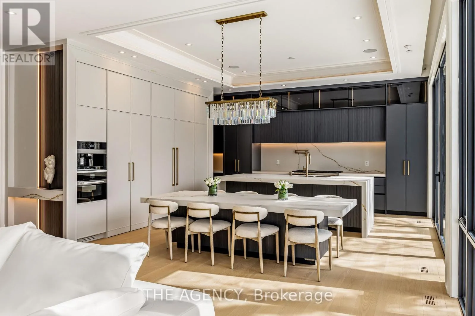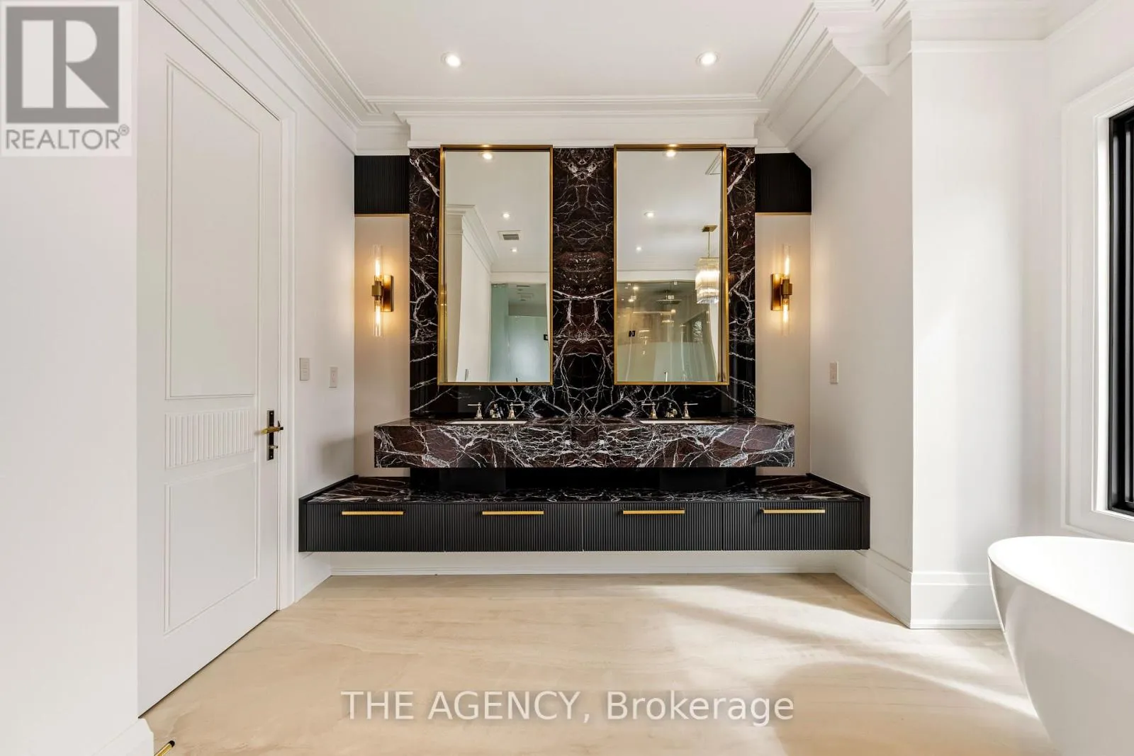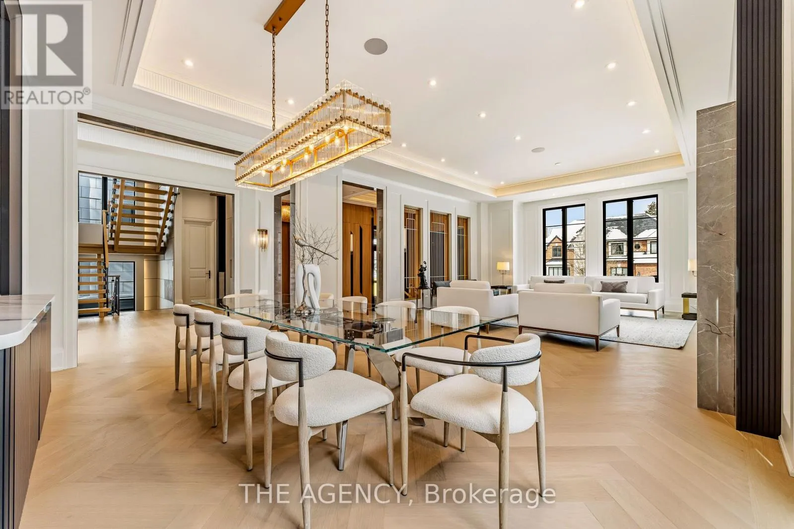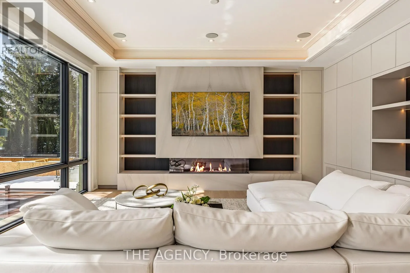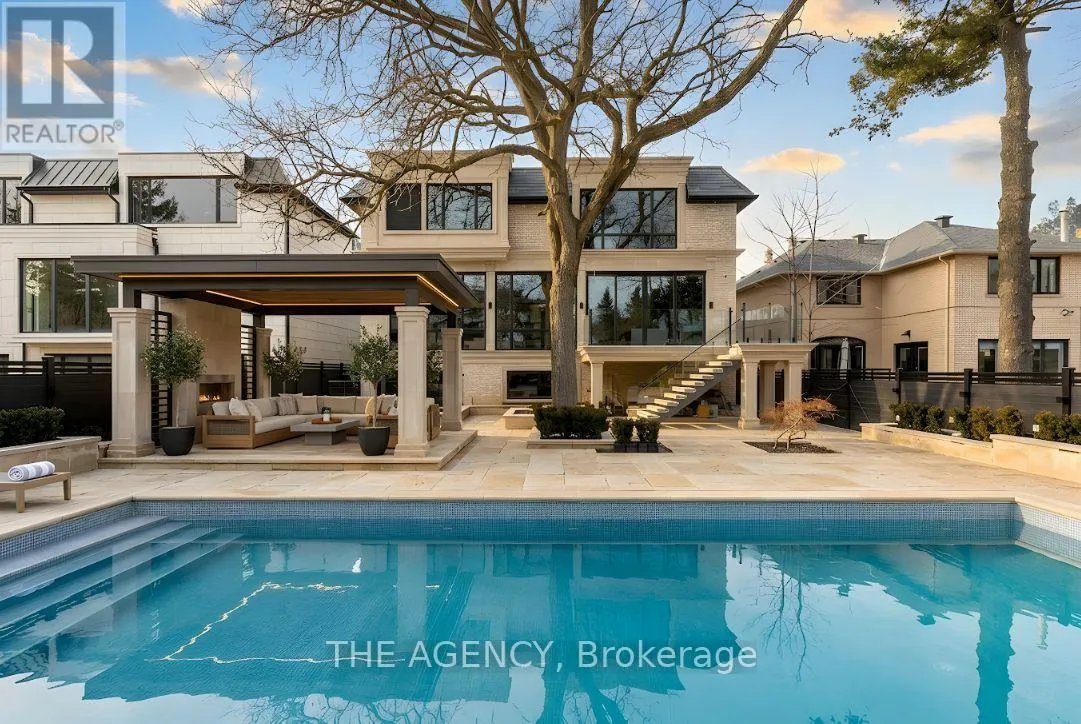 Bayview/York Mills Truly A Must See Home!Welcome to 149 Highland Crescent, a true statement of luxury in the heart of the prestigious Bridle Path. Situated on one of the area's most coveted streets, this brand-new custom residence blends refined design, exceptional craftsmanship, and timeless elegance.Offering approximately 7,500 sq. ft. of thoughtfully curated living space, the home makes a striking first impression with its elegant façade, heated driveway, and heated front porch. Inside, exquisite millwork and designer finishes elevate every room, complemented by elegant fireplaces with 14K gold-vein accents.Designed for both entertaining and everyday living, the main level features a spectacular double-island kitchen by Luxeme, complete with Miele appliances, a Wolf cooktop, and a walk-in pantry, seamlessly open to a bright and expansive family room. A stunning library office with 15-foot ceilings and a dramatic second foyer with 23-foot ceilings, grand staircase, and skylight add architectural distinction.Fully integrated with Lutron automation, the home offers seamless control of lighting and ambiance throughout. The private backyard is a true retreat, showcasing an oversized saltwater pool, gazebo lounge, and beautifully landscaped grounds.Upstairs, five spacious bedrooms provide ideal family living. The primary suite offers a serene escape with custom millwork and a refined makeup area. A private four-stop elevator ensures effortless access to all levels.The lower level is designed for ultimate lifestyle and entertainment, featuring a recreation area, minibar, glass-enclosed gym, home theatre, and nanny suite. A rare offering, this residence defines elevated living in one of Toronto's most exclusive neighbourhoods. (id:27476)