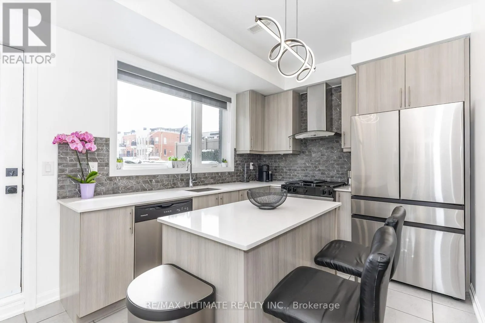 Keele St. / Wilson Ave Modern design freehold townhome. Freshly painted kept like New built . Newly installed pot lights thru kit, LR, basement & hallways. New high end S.S Appliances. Upgraded modern T.V. cabinet with fireplace newly installed . Finished Basement rec. room (heated floors) comb. laundry new front loading Samsung washer/Dryer. 2 large balconies with gas BBQ for outdoor entertaining and amazing view of city & park. Amazing new community, Tennis counts, Playgrounds, Running track, Skate park, transit distance to Wilson & Downsview Ave. subway stations, minutes to major HWYS 401/ 400, Malls, hospitals, York university, Dynamic new neighbourhood, townhome shows to perfection w/modern style space & beauty. (id:27476)
