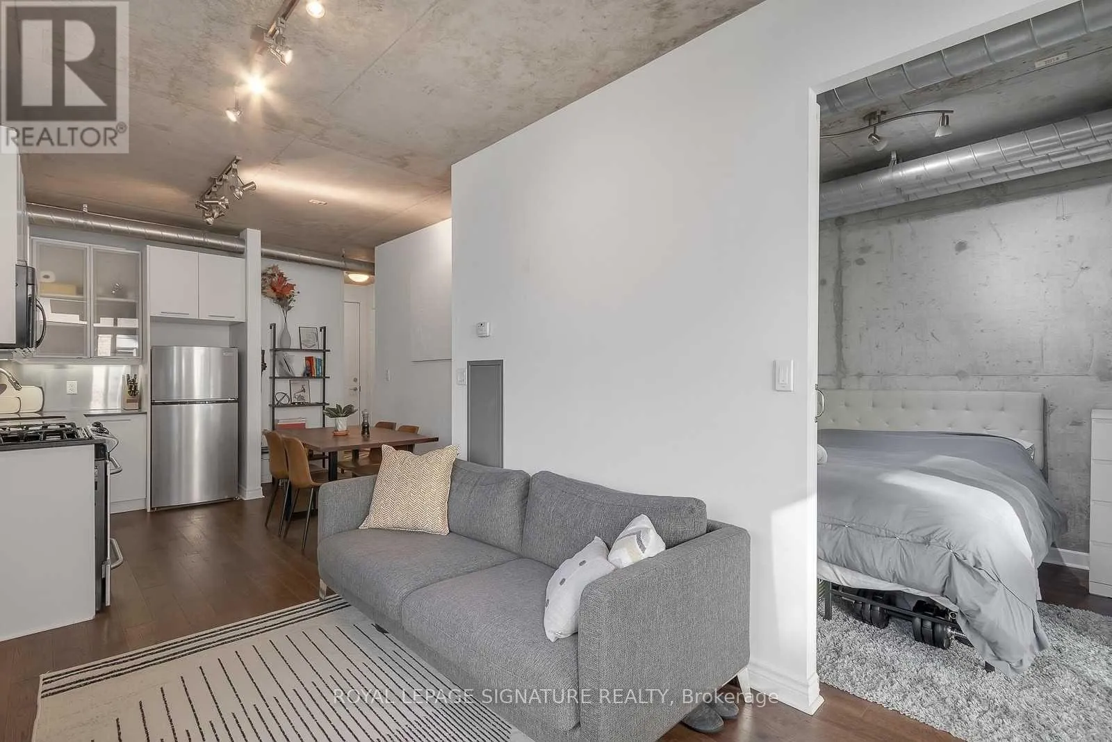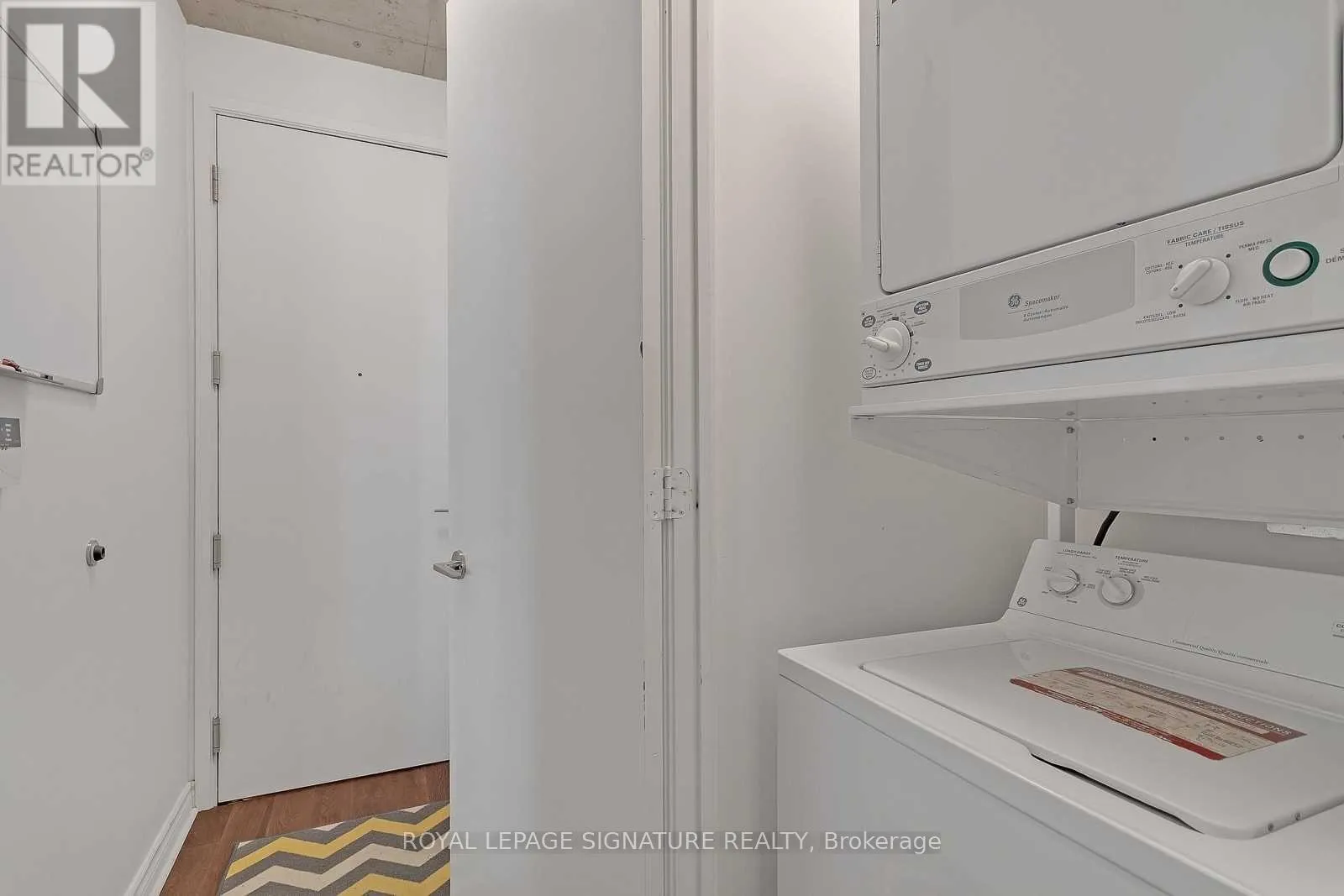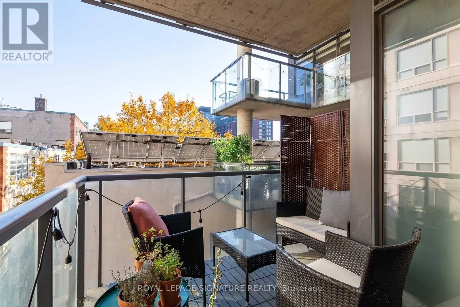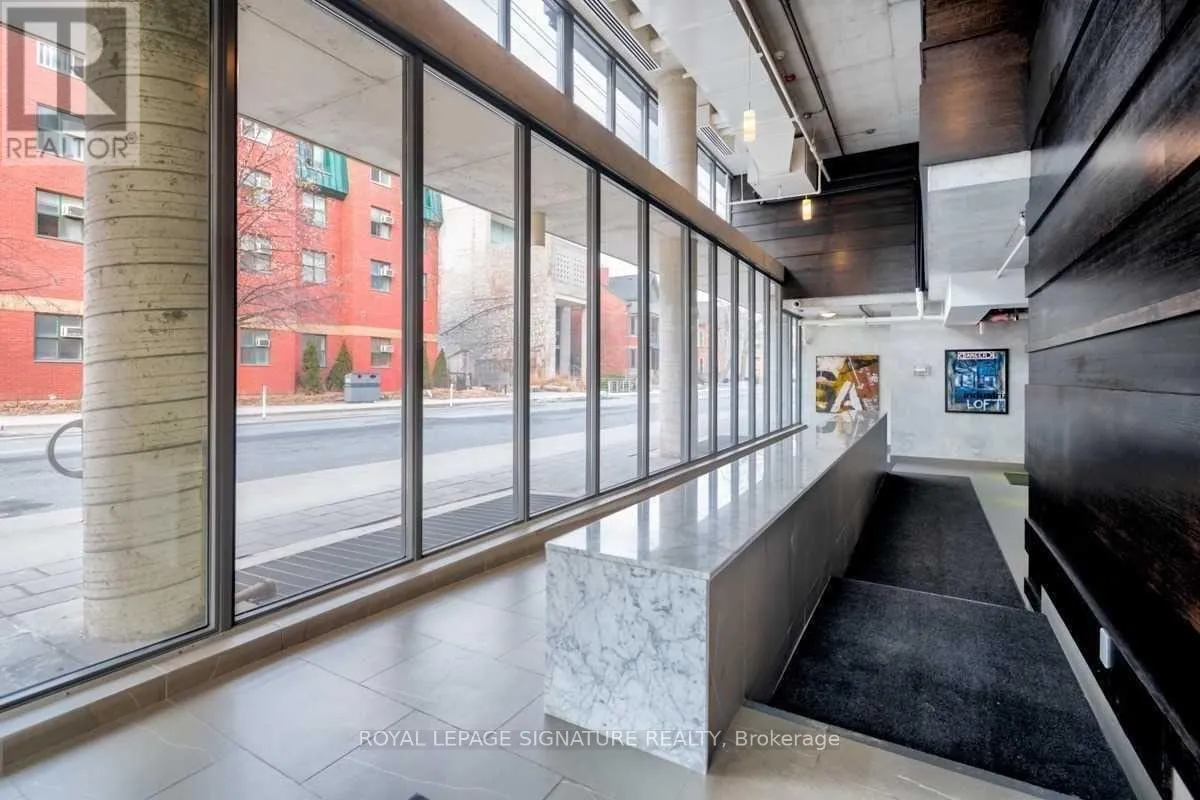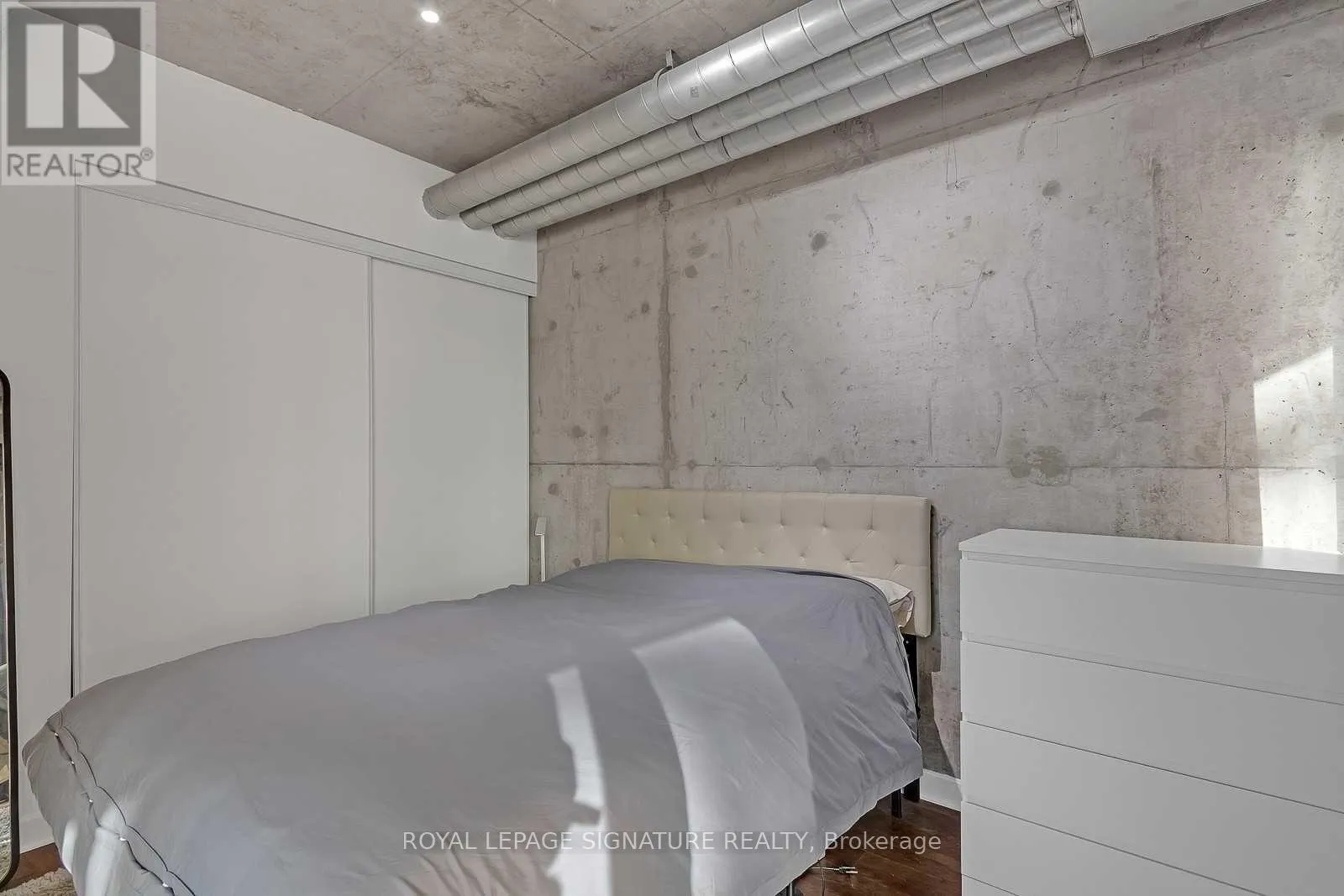 Cross Streets: Richmond St W/Portland St. ** Directions: Waze. Loft living at its finest in the boutique Five Nine on Richmond. This highly functional one-bedroom corner loft is bathed in natural light and showcases classic loft details throughout, including soaring 9-foot concrete ceilings, concrete columns, exposed ductwork, and expansive floor-to-ceiling windows.The gourmet kitchen is truly designed for a culinary enthusiast, featuring a stainless steel backsplash, full-sized stainless steel appliances, quartz countertops, and a rare gas stove. The spacious living area comfortably accommodates a full seating and TV setup, a work-from-home station, and extra space that makes the perfect hobby nook. The primary bedroom offers a striking concrete feature wall, floor-to-ceiling window, double closet, and ample space for a large bed and dresser. Spa-inspired finishes complete the four-piece bathroom with a soaker tub. Step outside to a massive 128 sq. ft. L-shaped terrace with southeast sun-filled views. One storage locker included! Landlord will have the unit professionally cleaned prior to new Tenant moving in. (id:27476)