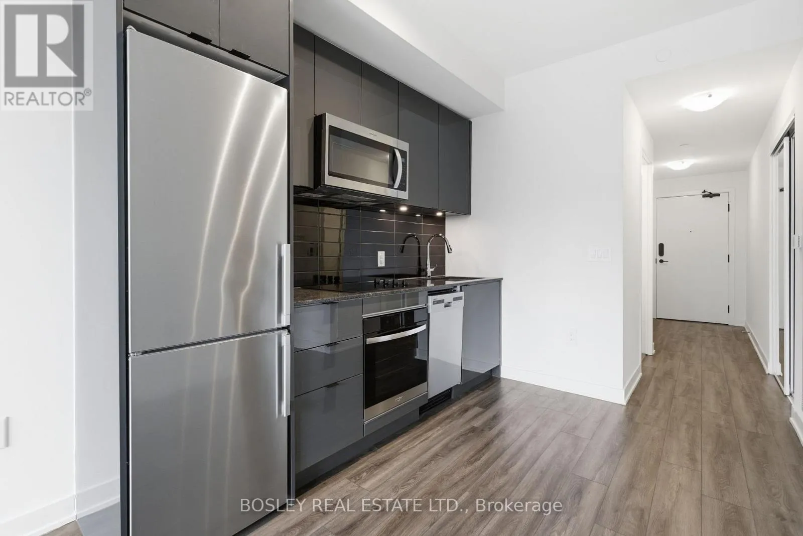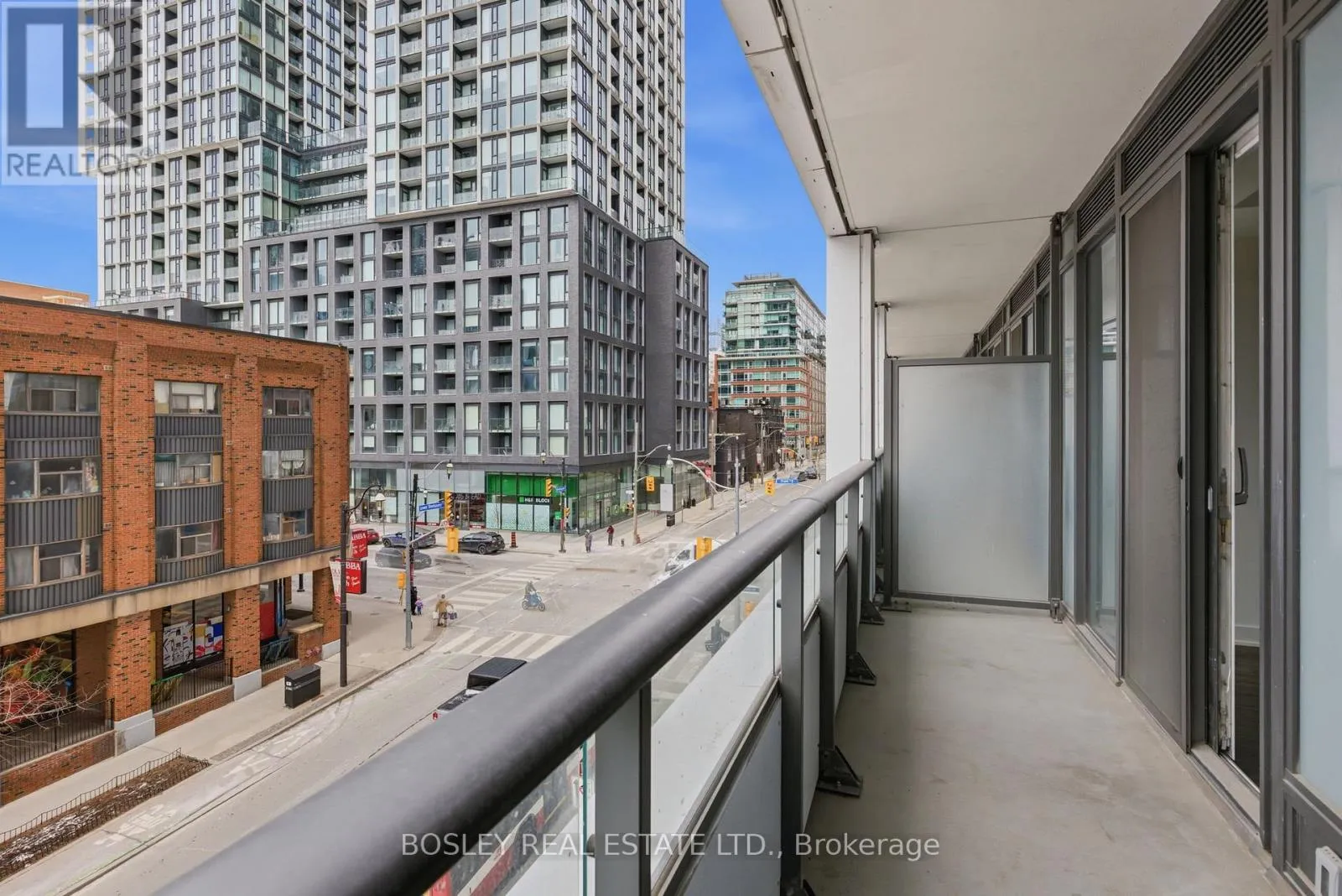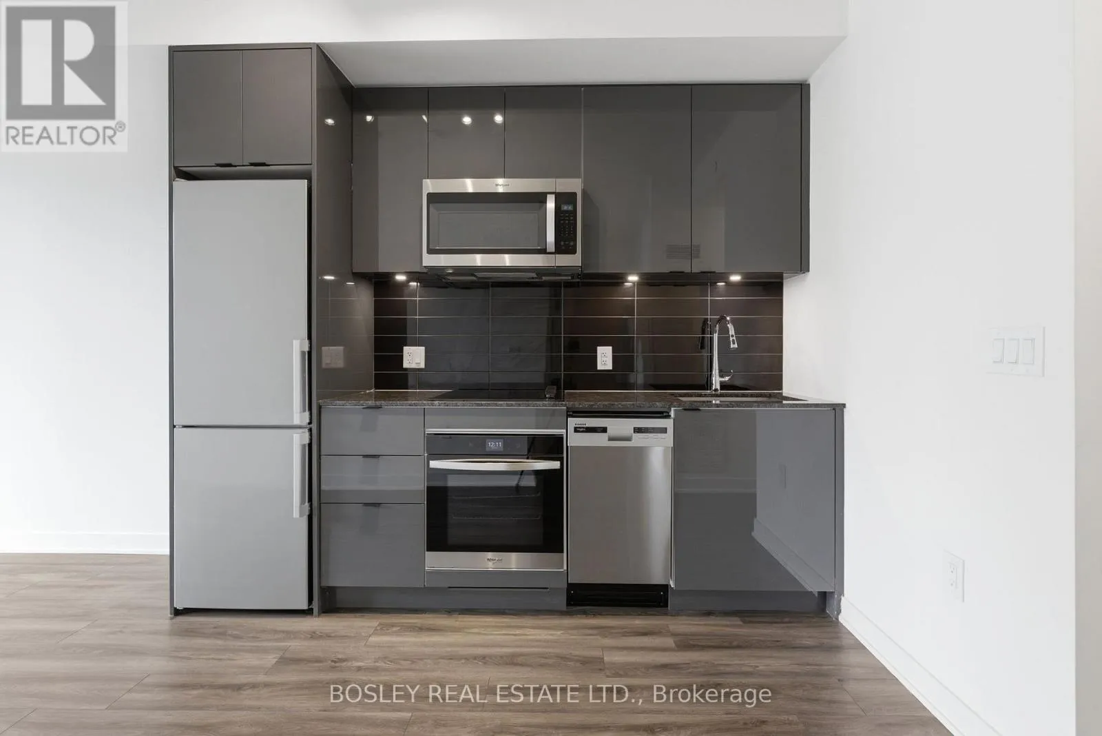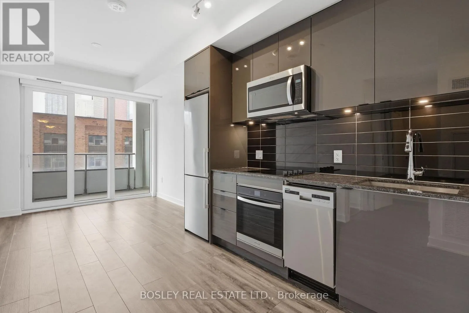 Lower Sherbourne St & Front St Welcome to this well-designed suite in one of Toronto's most sought after neighborhoods. Featuring 9-foot ceilings and laminate flooring throughout, the space feels bright, functional, and easy to live in. The layout offers a clear separation between the kitchen and living area, with the living room opening to a private balcony. The kitchen includes built-in appliances and a granite countertop, while the primary bedroom offers a large window and ample closet space. A separate den with a door provides flexibility for a home office or guest room, with no wasted space throughout the unit. Located steps to St Lawrence Market, No Frills, shops, restaurants, and the Distillery District. Easy access to the downtown core, DVP, and TTC. Move-in ready in a location that's hard to beat. (id:27476)